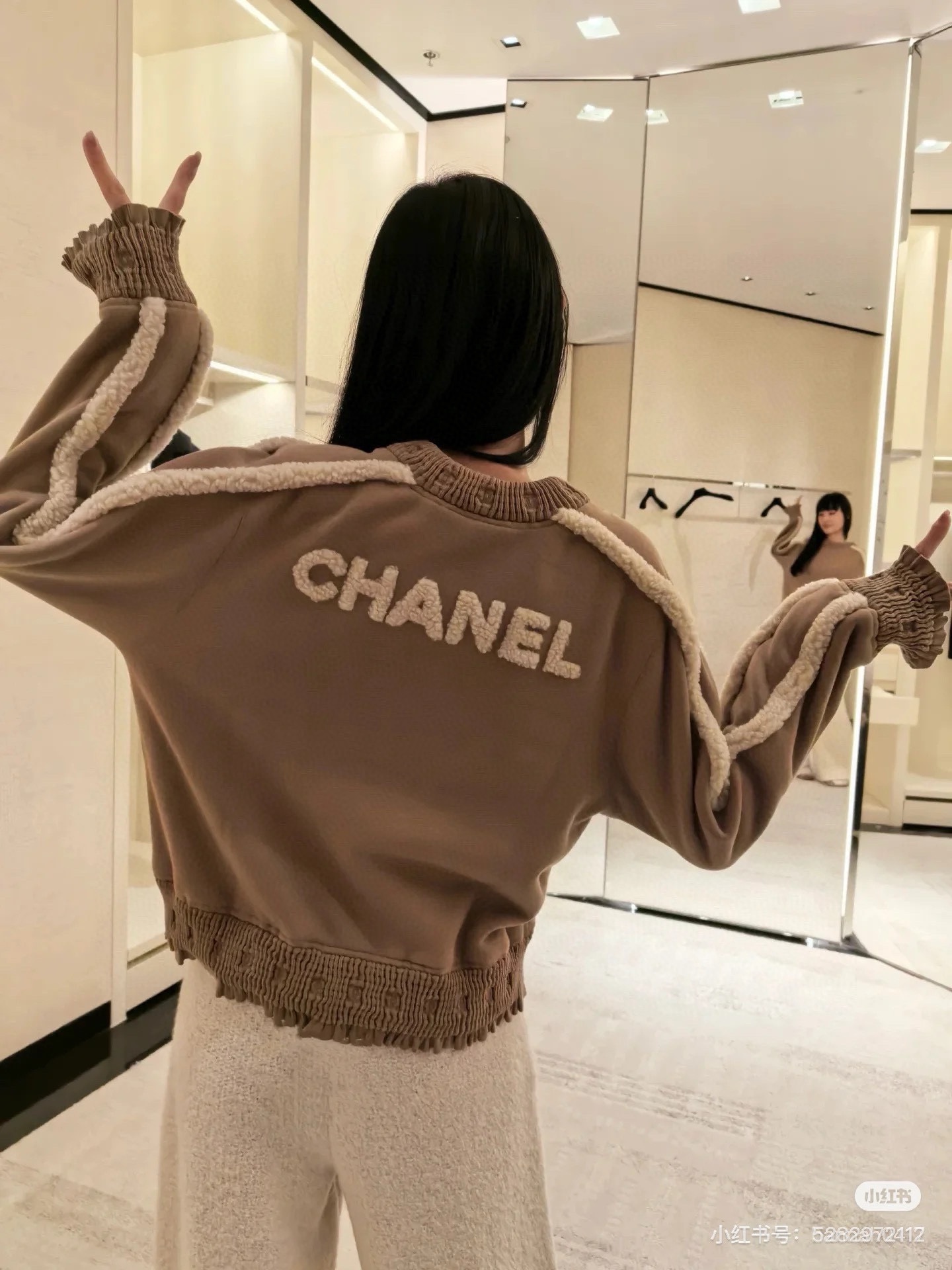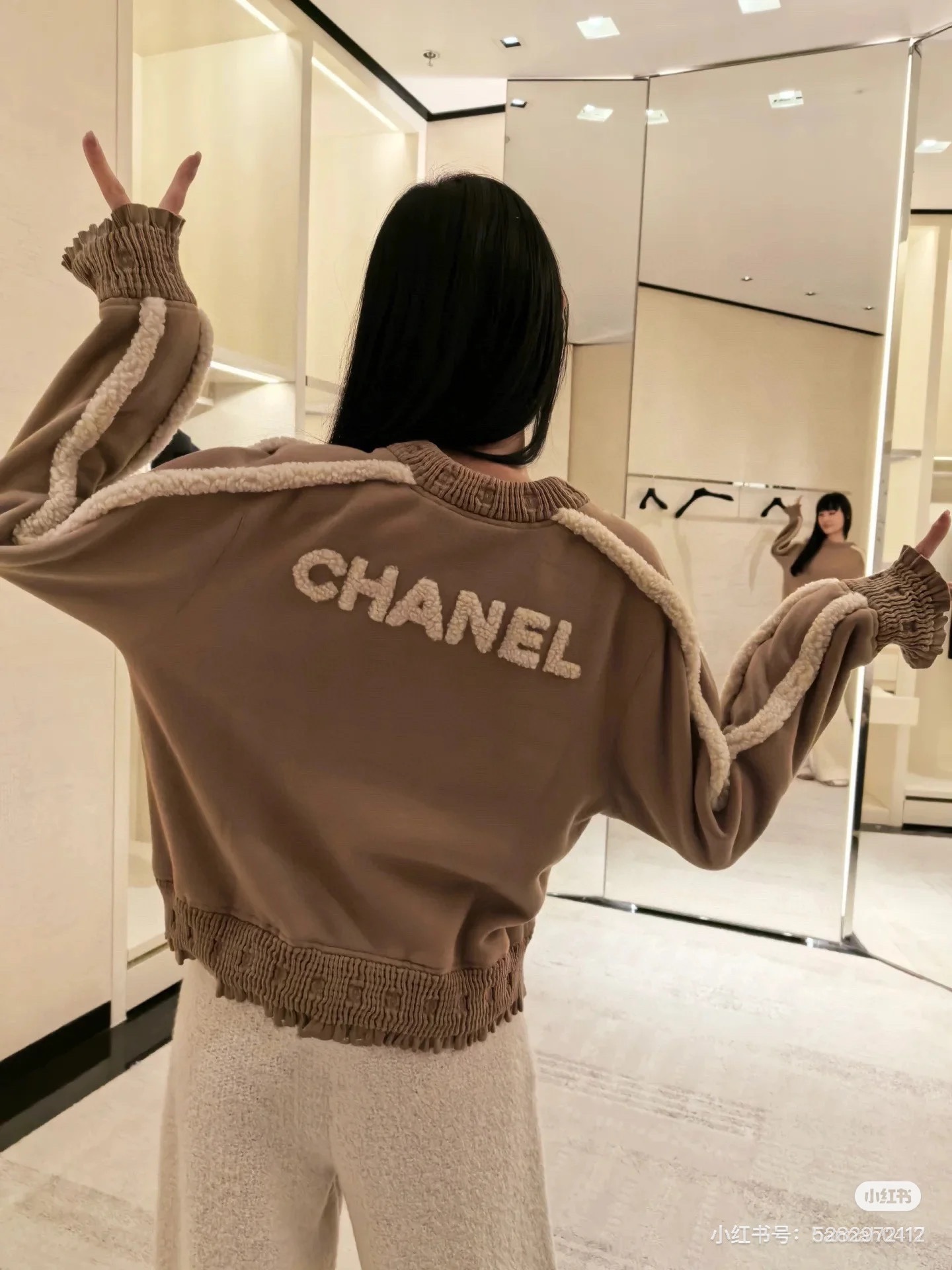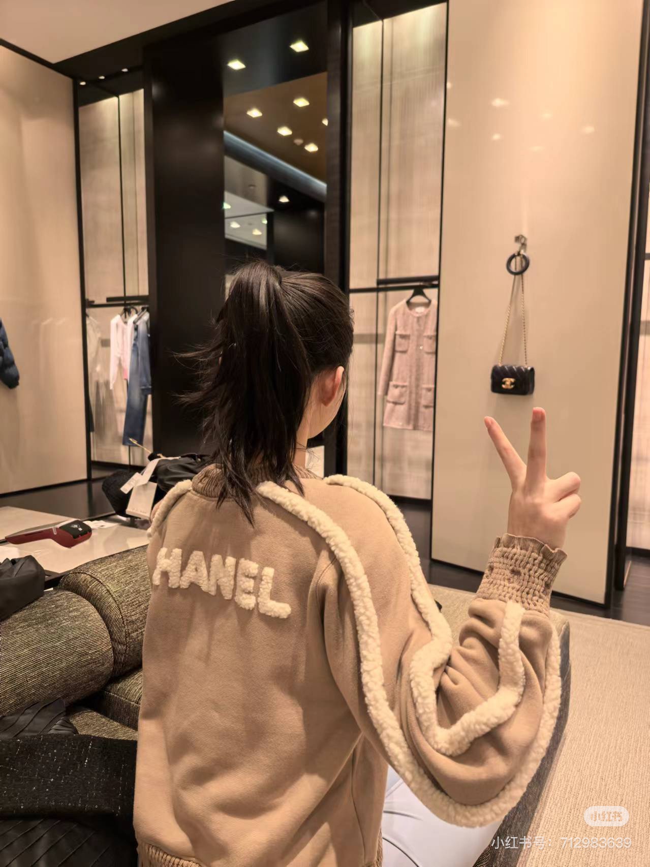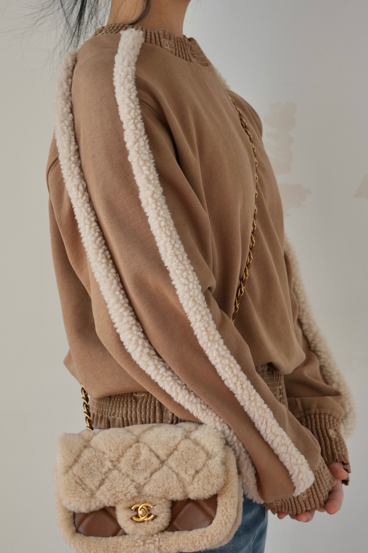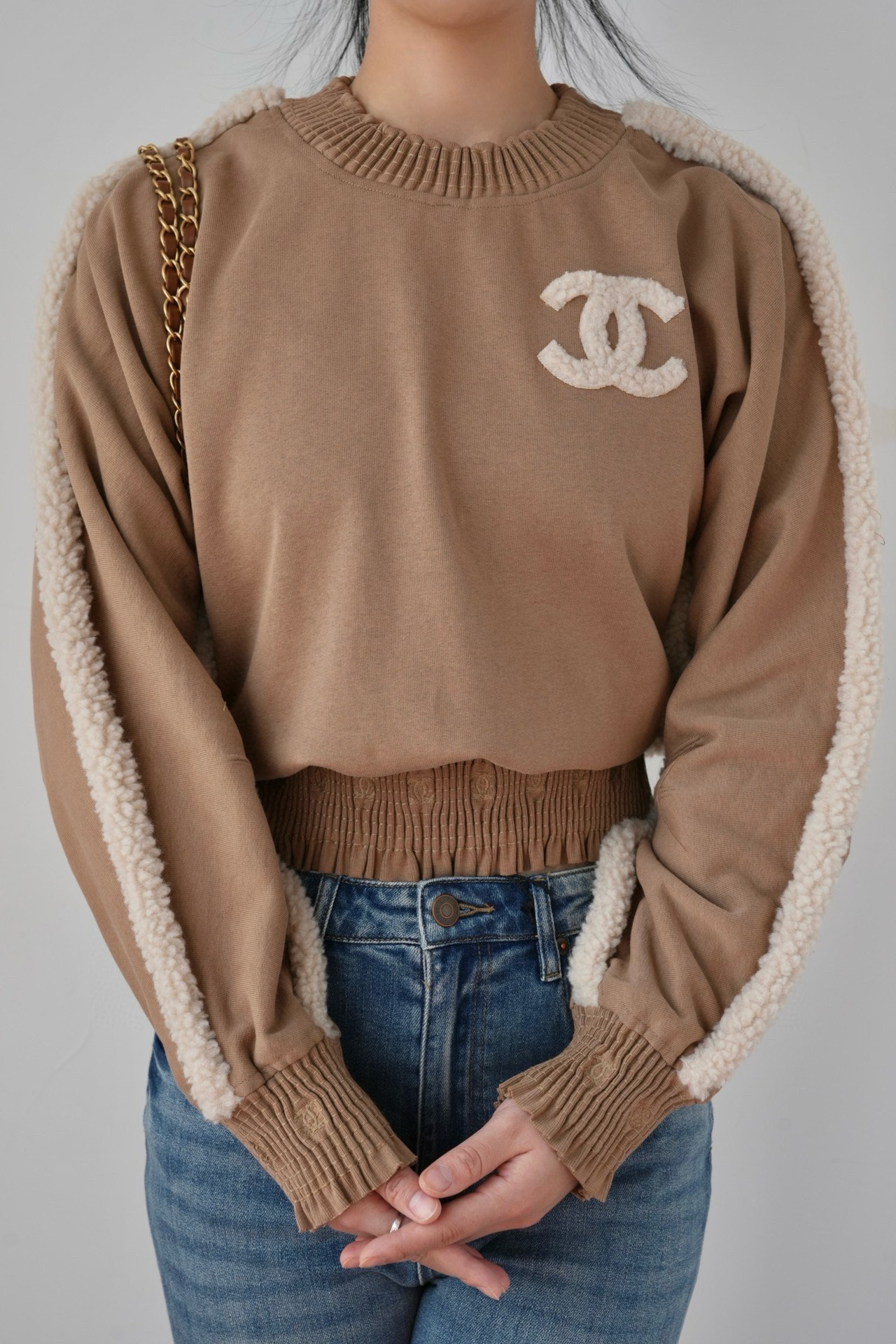 NIGO Chanel Women's Autumn and Winter Solid Color Lamb's Wool Patch Cotton Twill Round Neck Long Sleeve Pullover Sweatshirt #nigo73963