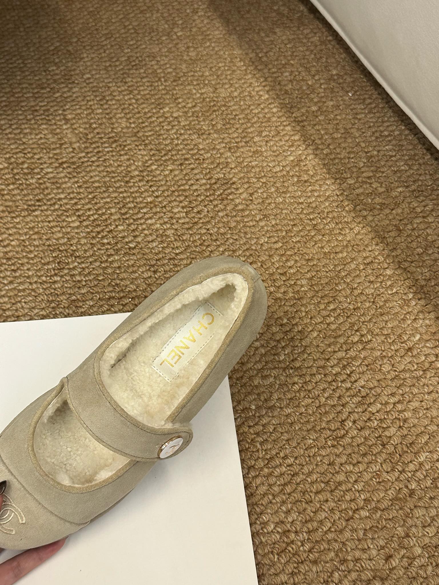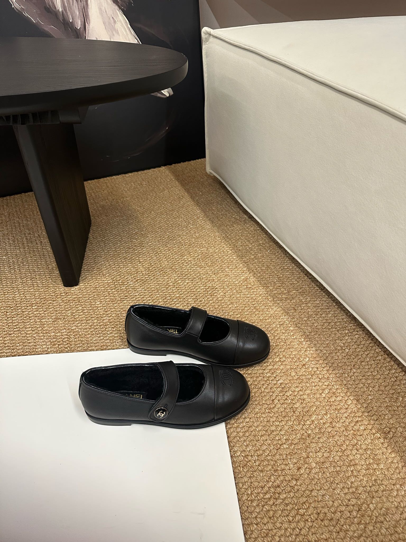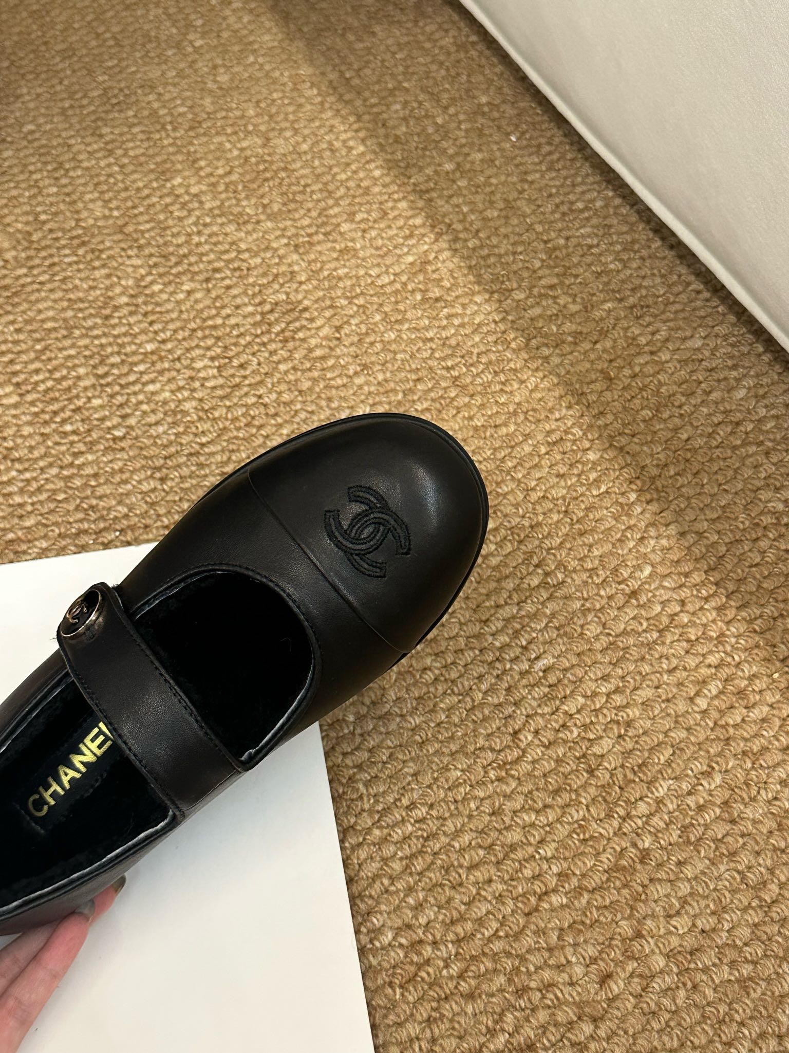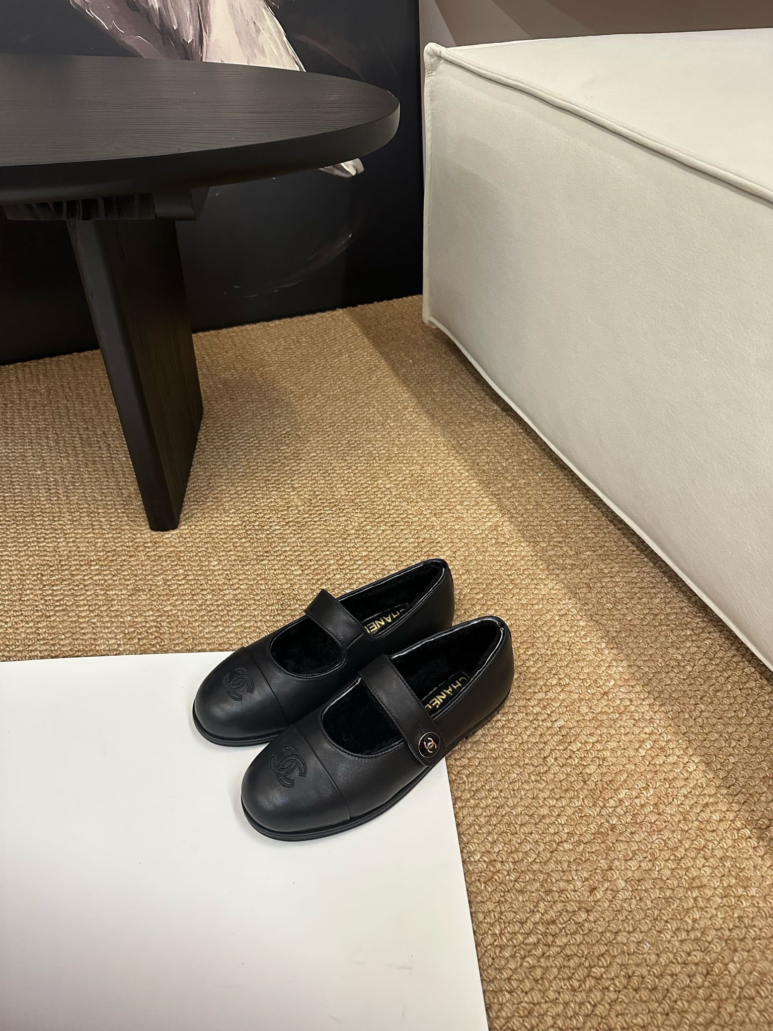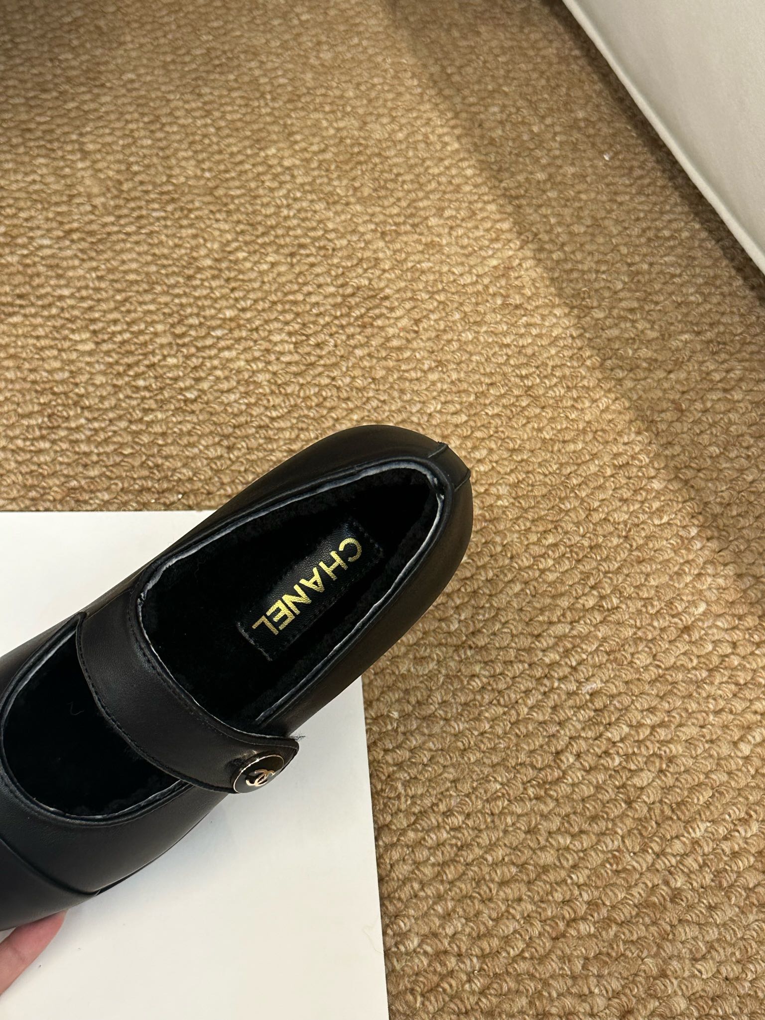 NIGO Chanel Women's Autumn/Winter Mary Jane Shoes Solid Color Leather Lamb Wool Single Shoes Round Head Buckle Flat Heel Casual Shoes #nigo81733