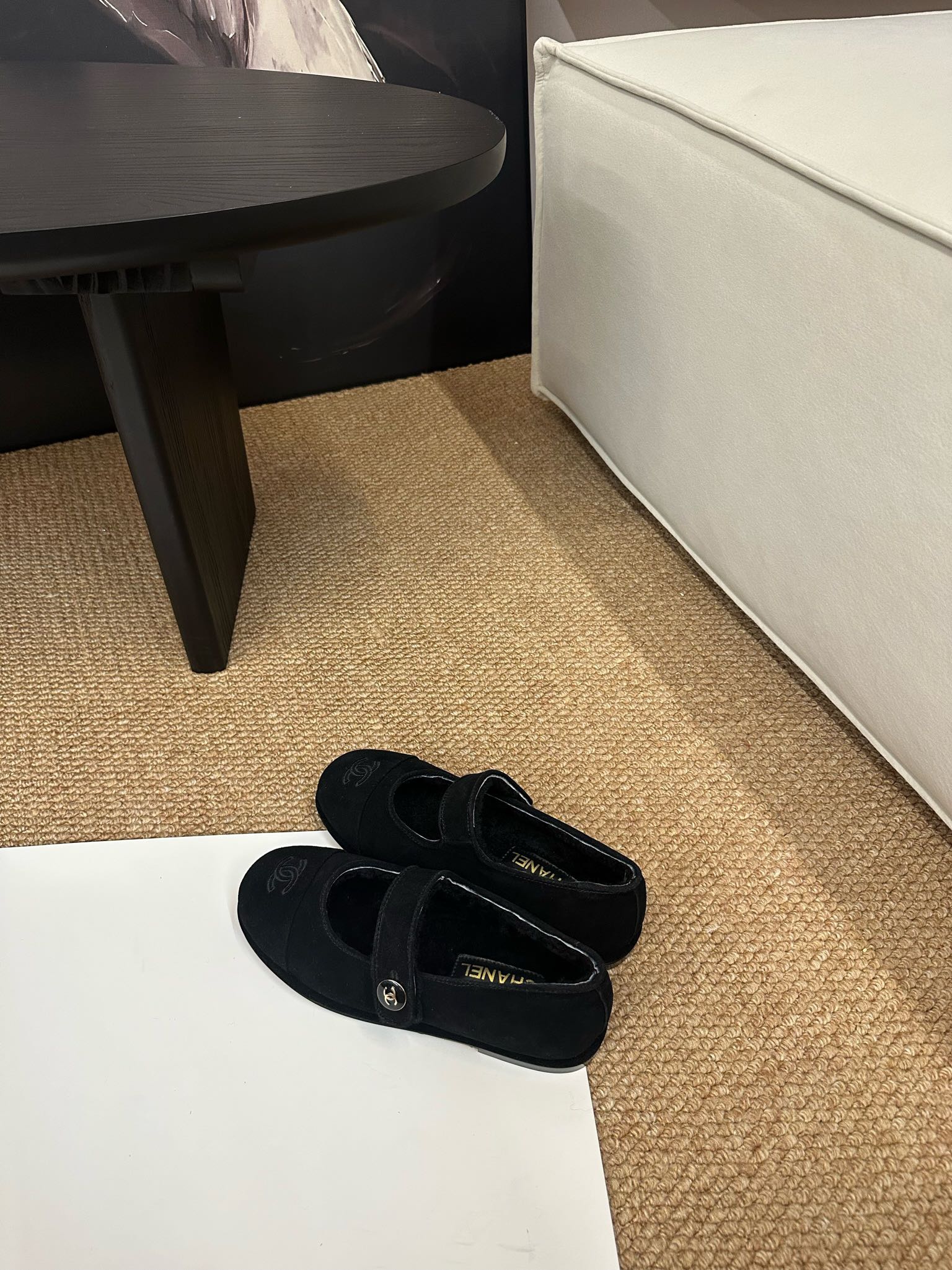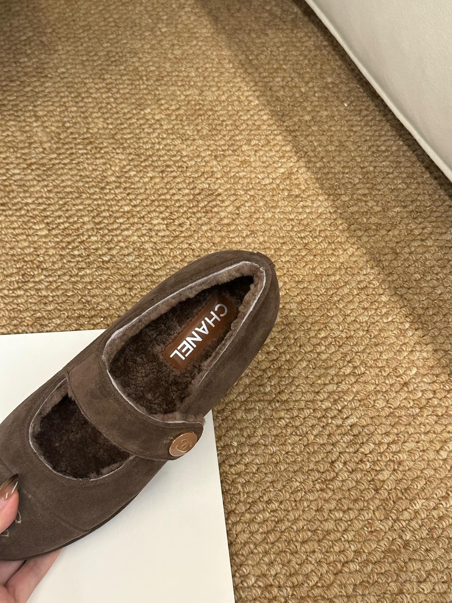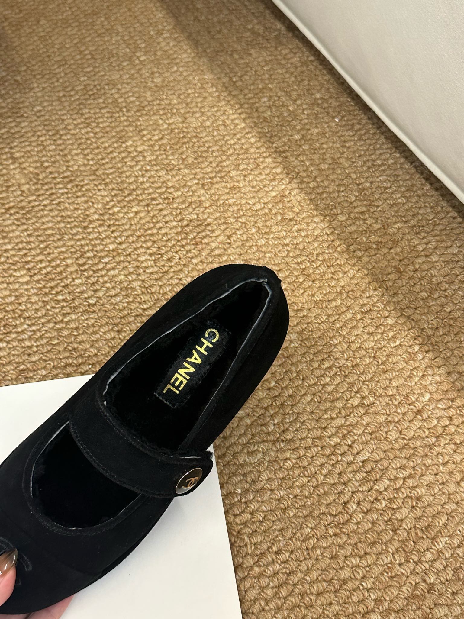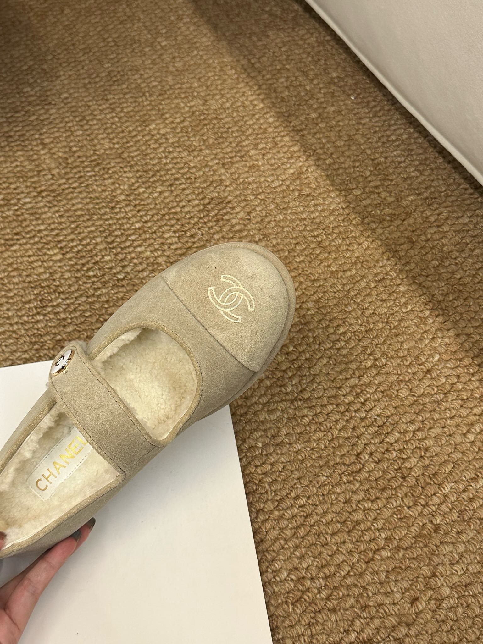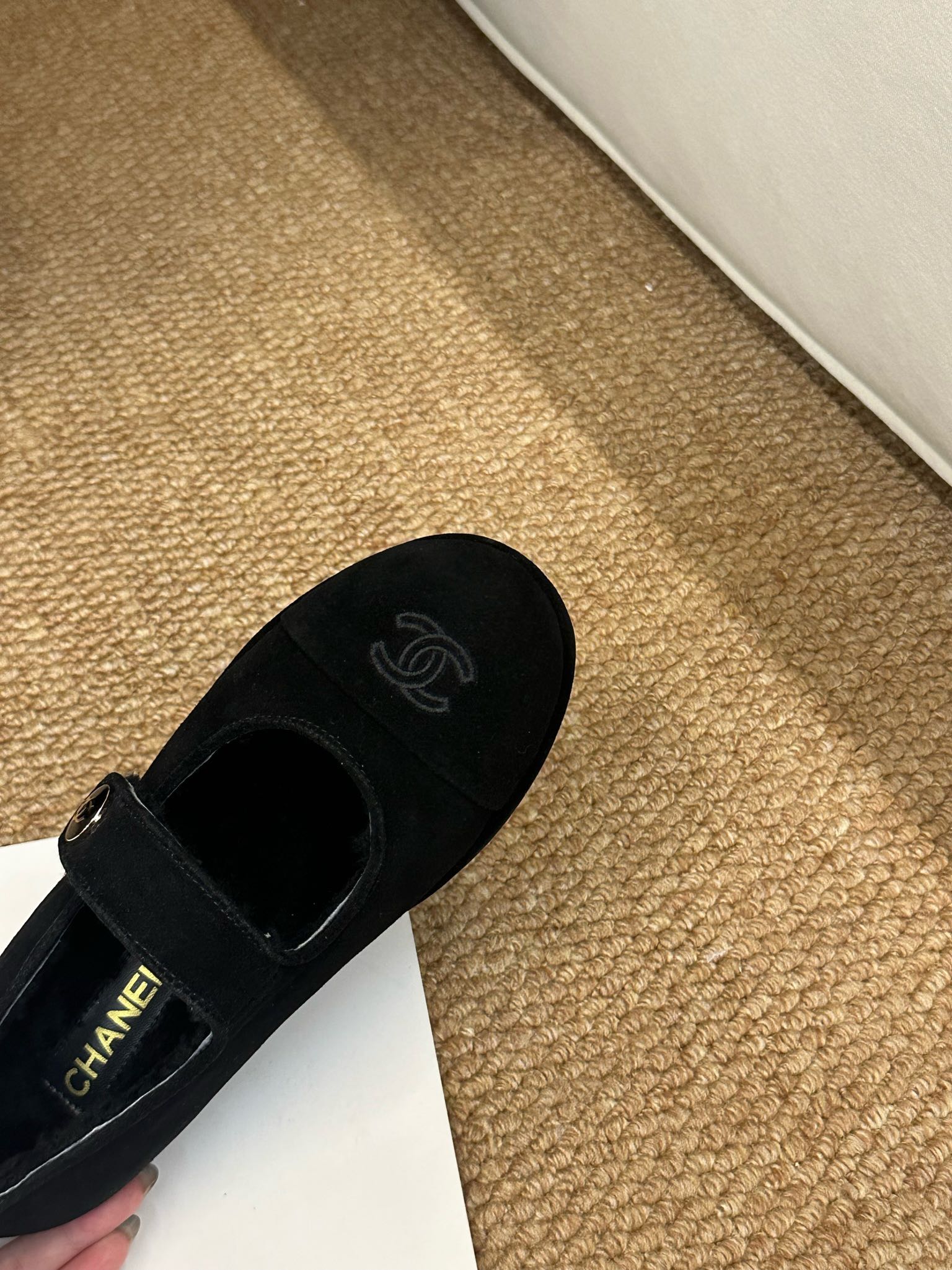 NIGO Chanel Women's Autumn/Winter Mary Jane Shoes Solid Color Leather Lamb Wool Single Shoes Round Head Buckle Flat Heel Casual Shoes #nigo81733