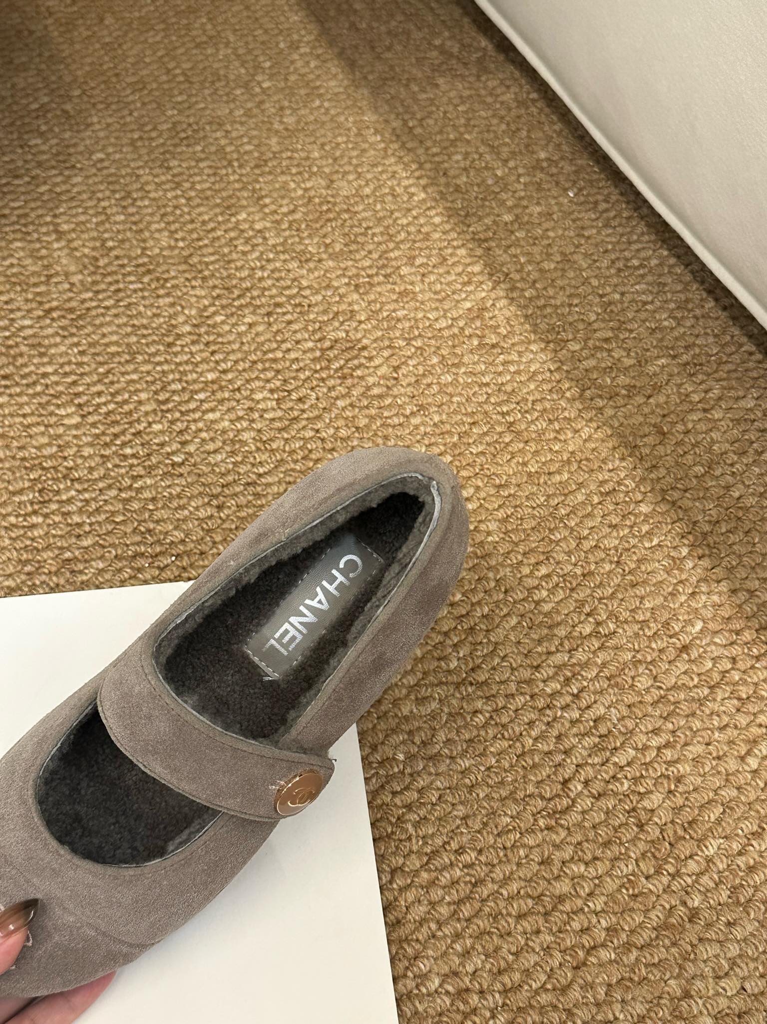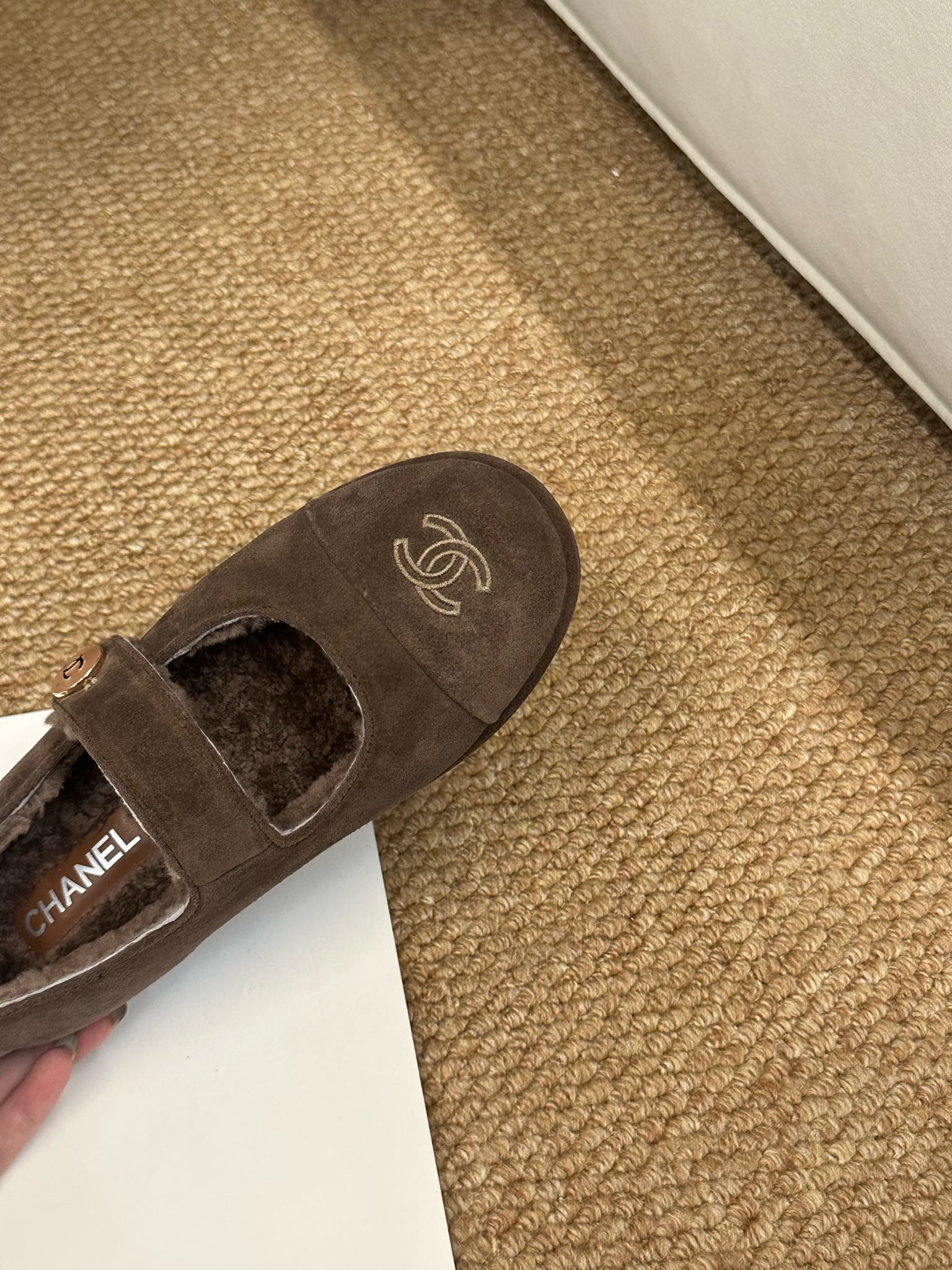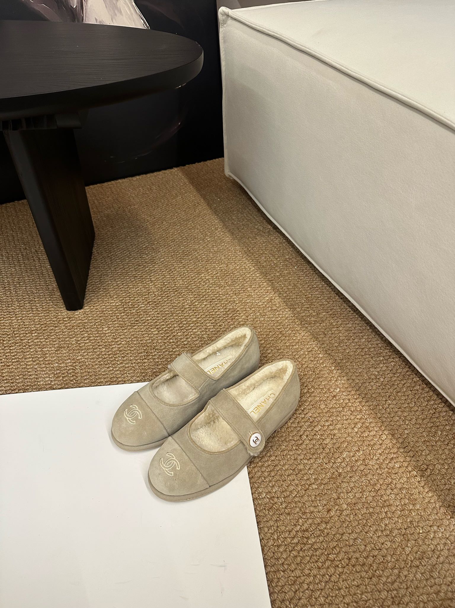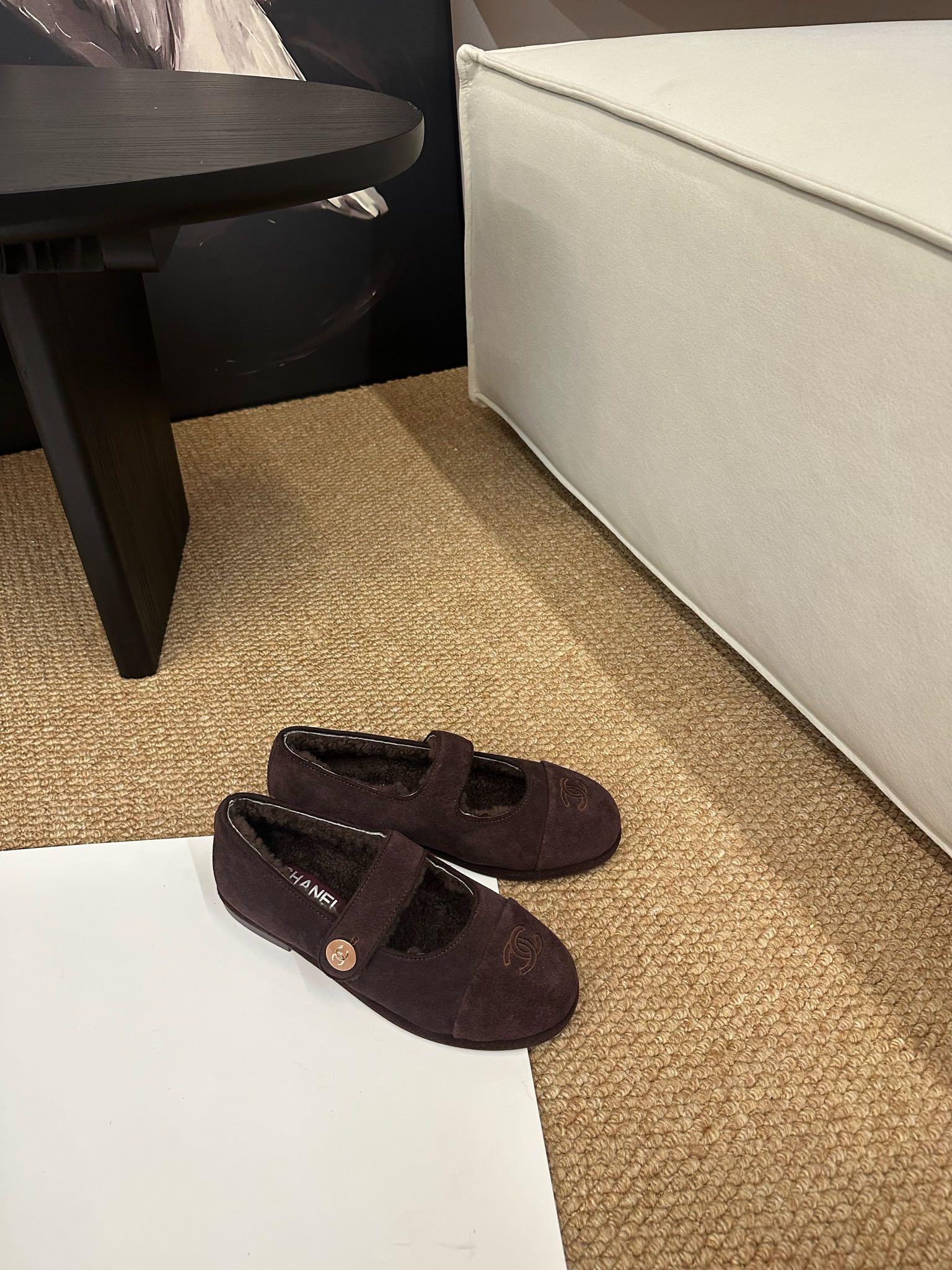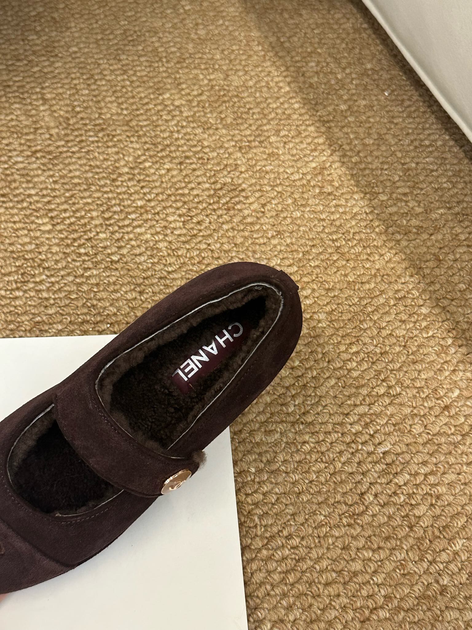 NIGO Chanel Women's Autumn/Winter Mary Jane Shoes Solid Color Leather Lamb Wool Single Shoes Round Head Buckle Flat Heel Casual Shoes #nigo81733