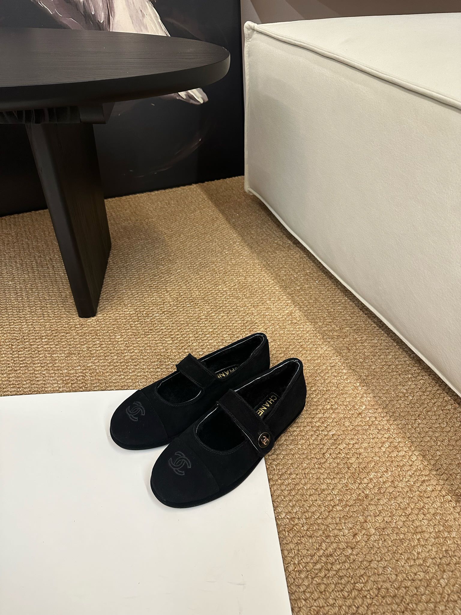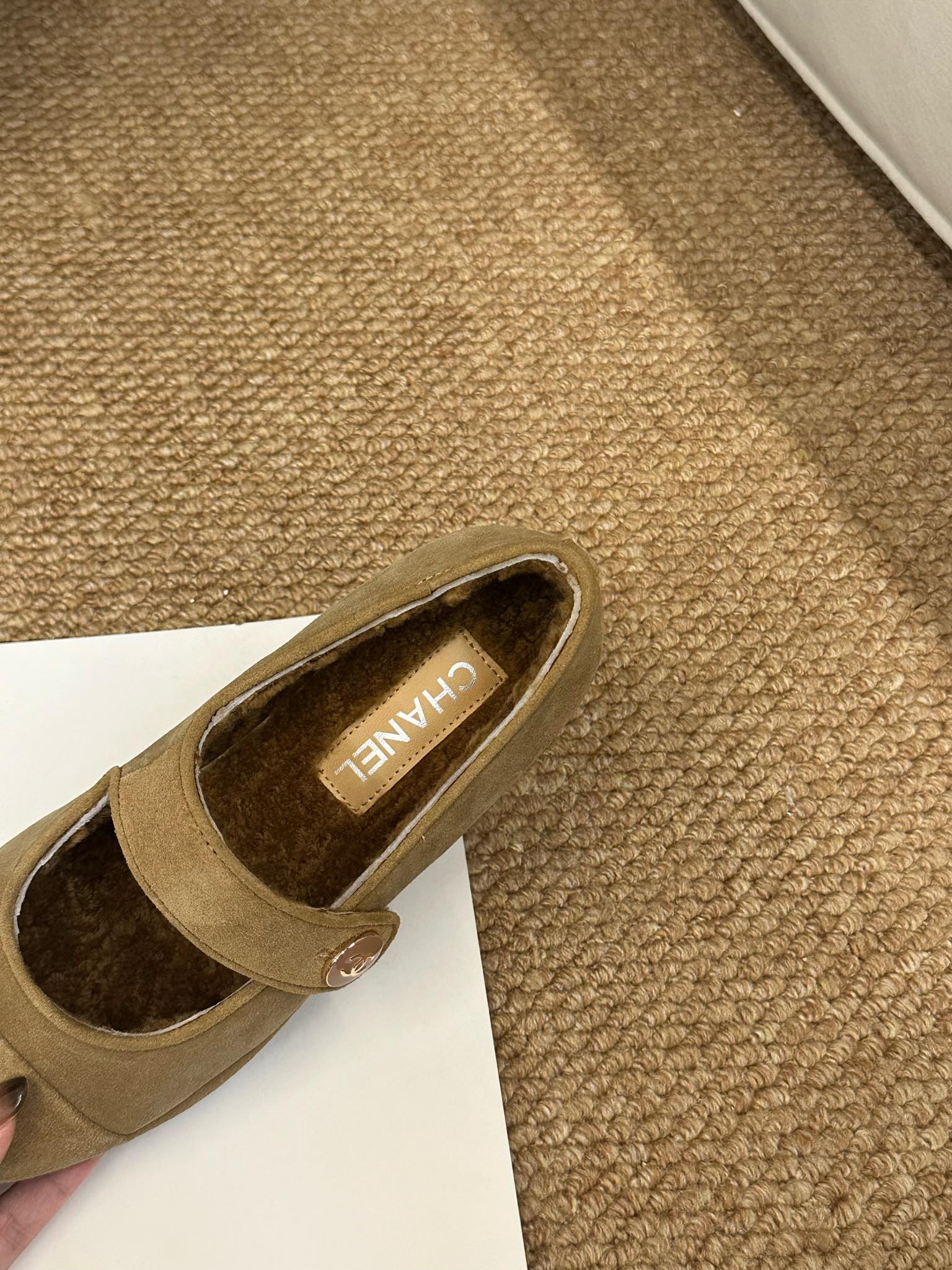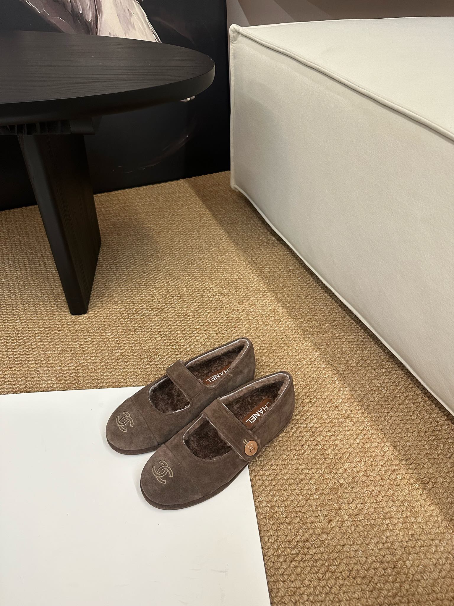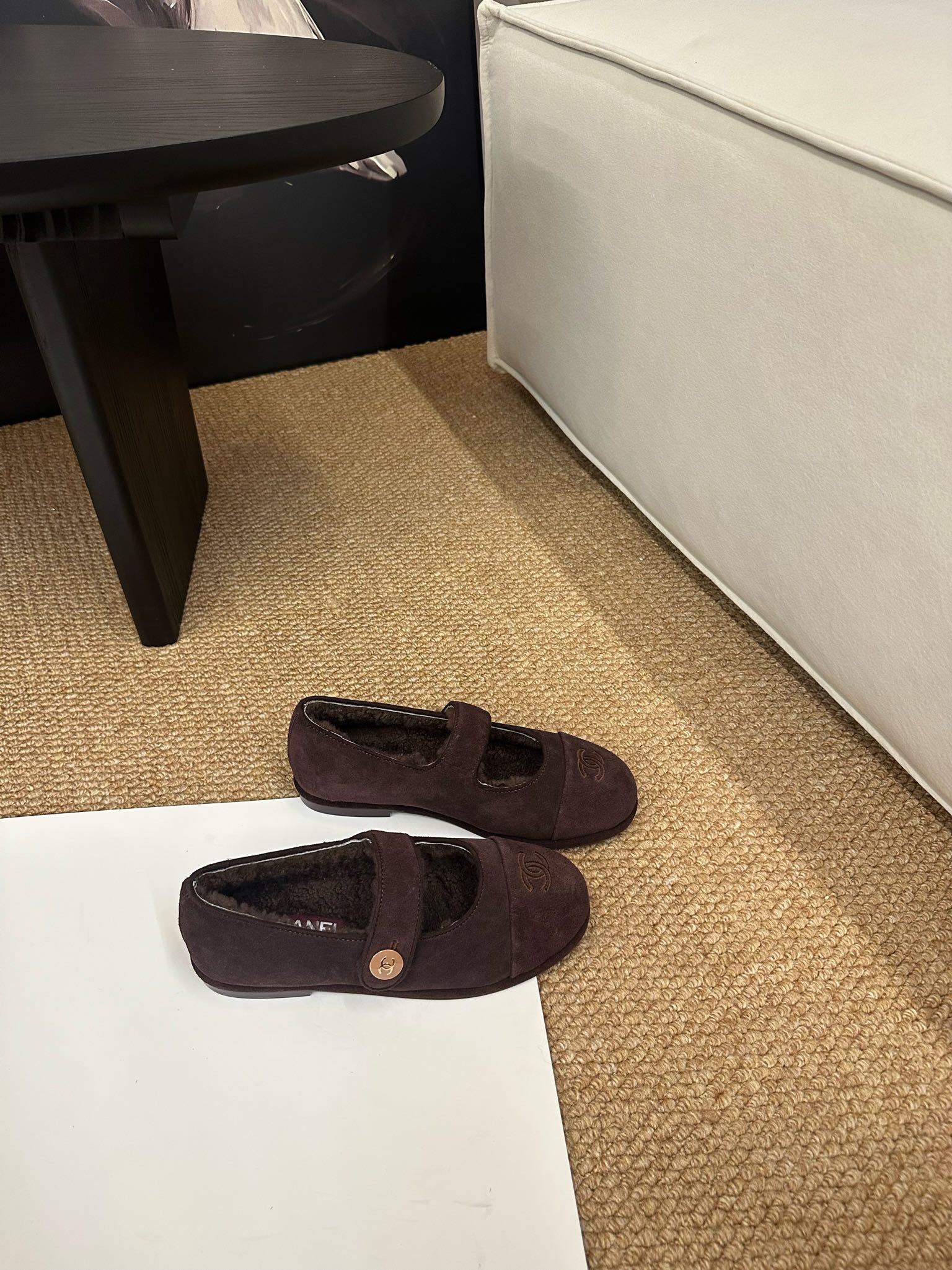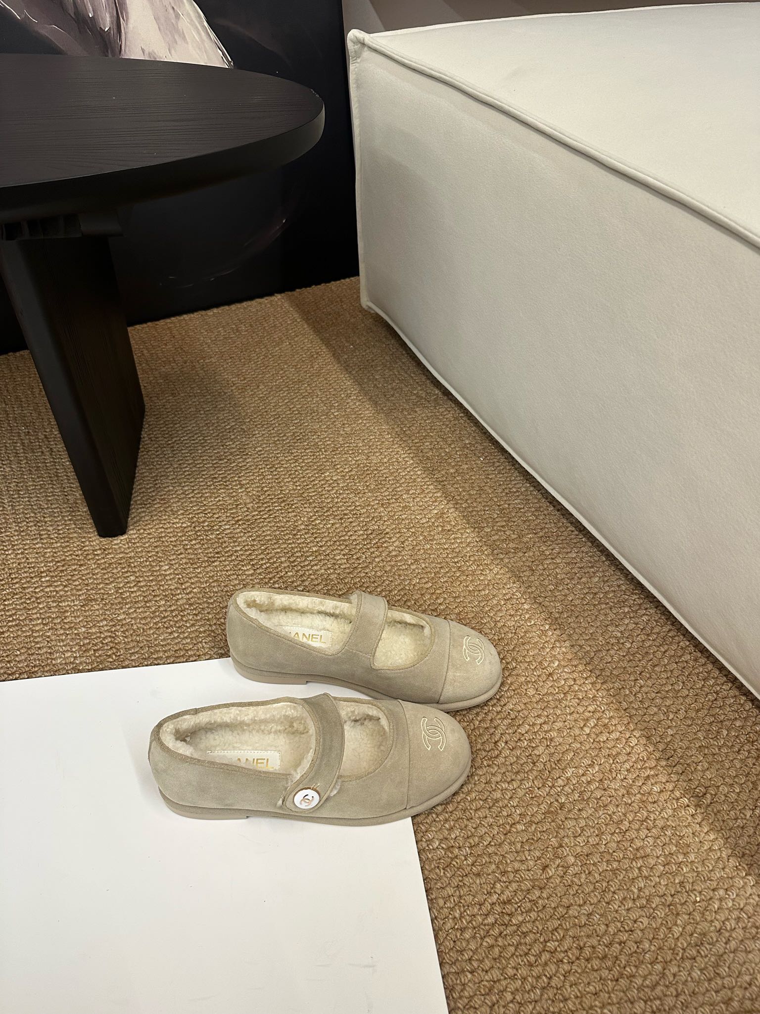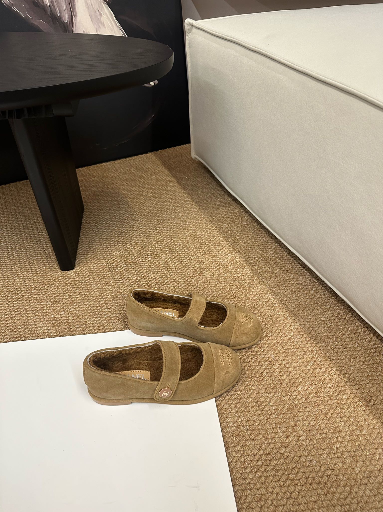 NIGO Chanel Women's Autumn/Winter Mary Jane Shoes Solid Color Leather Lamb Wool Single Shoes Round Head Buckle Flat Heel Casual Shoes #nigo81733