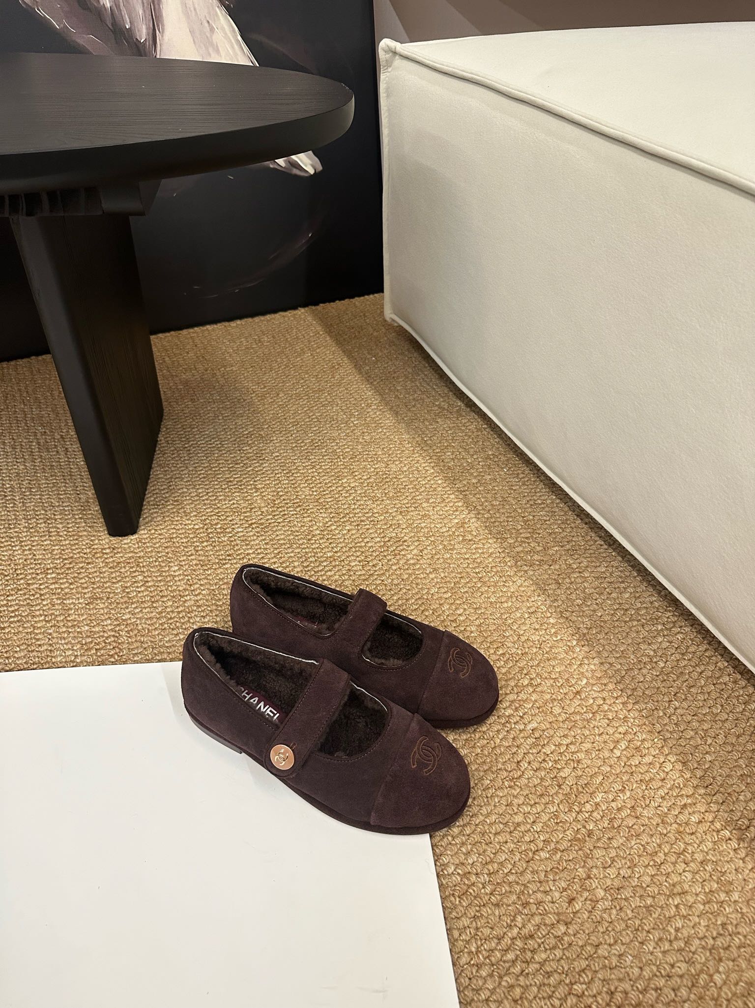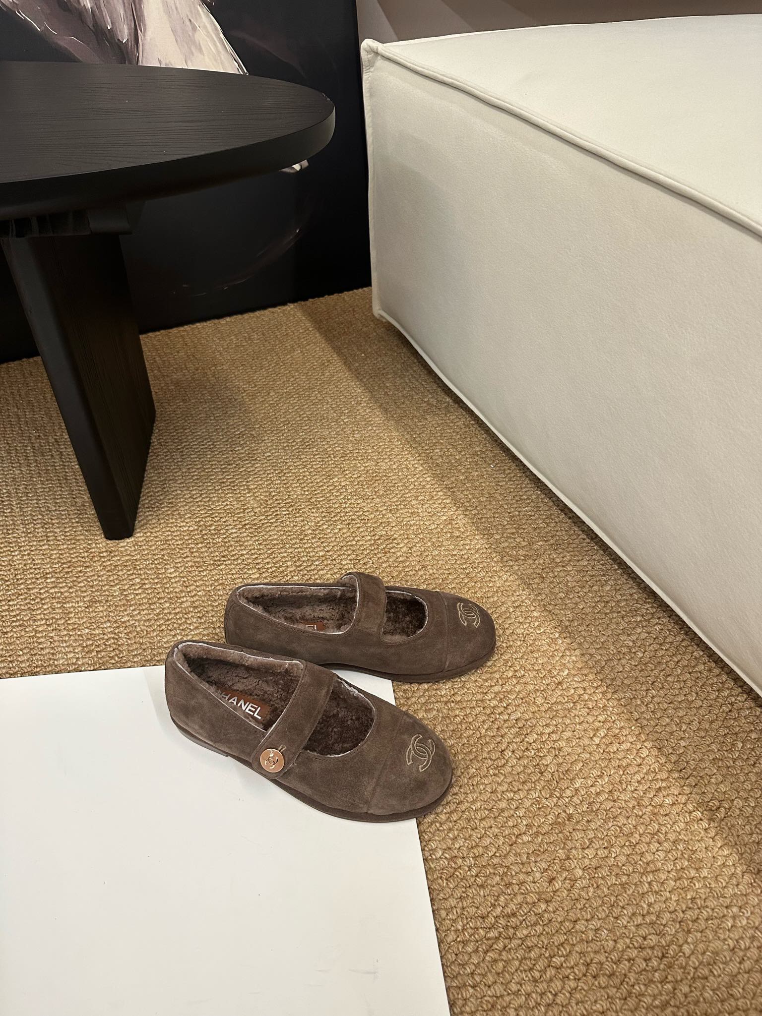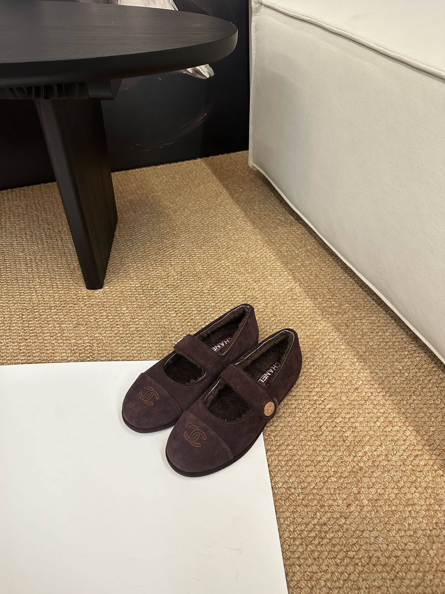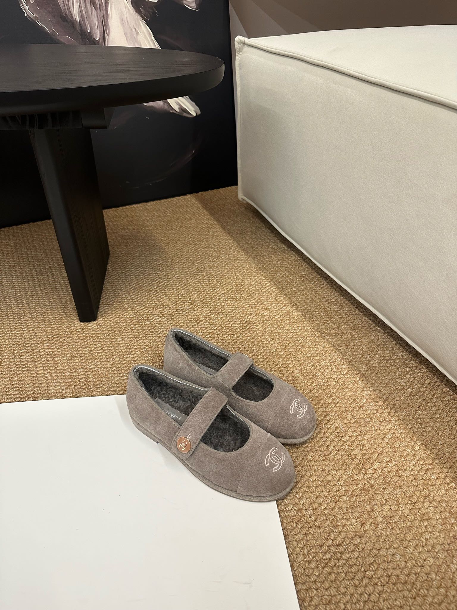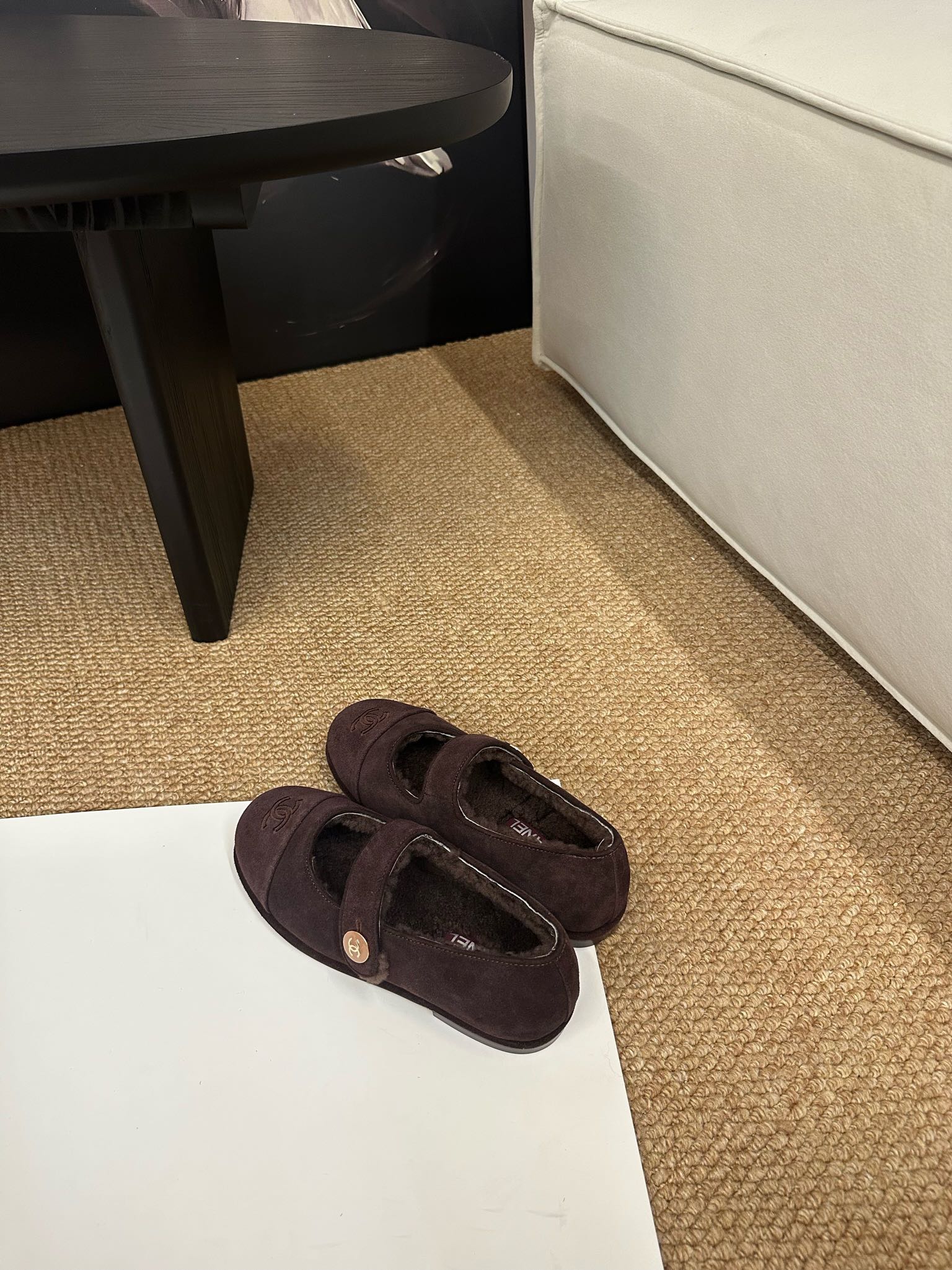 NIGO Chanel Women's Autumn/Winter Mary Jane Shoes Solid Color Leather Lamb Wool Single Shoes Round Head Buckle Flat Heel Casual Shoes #nigo81733