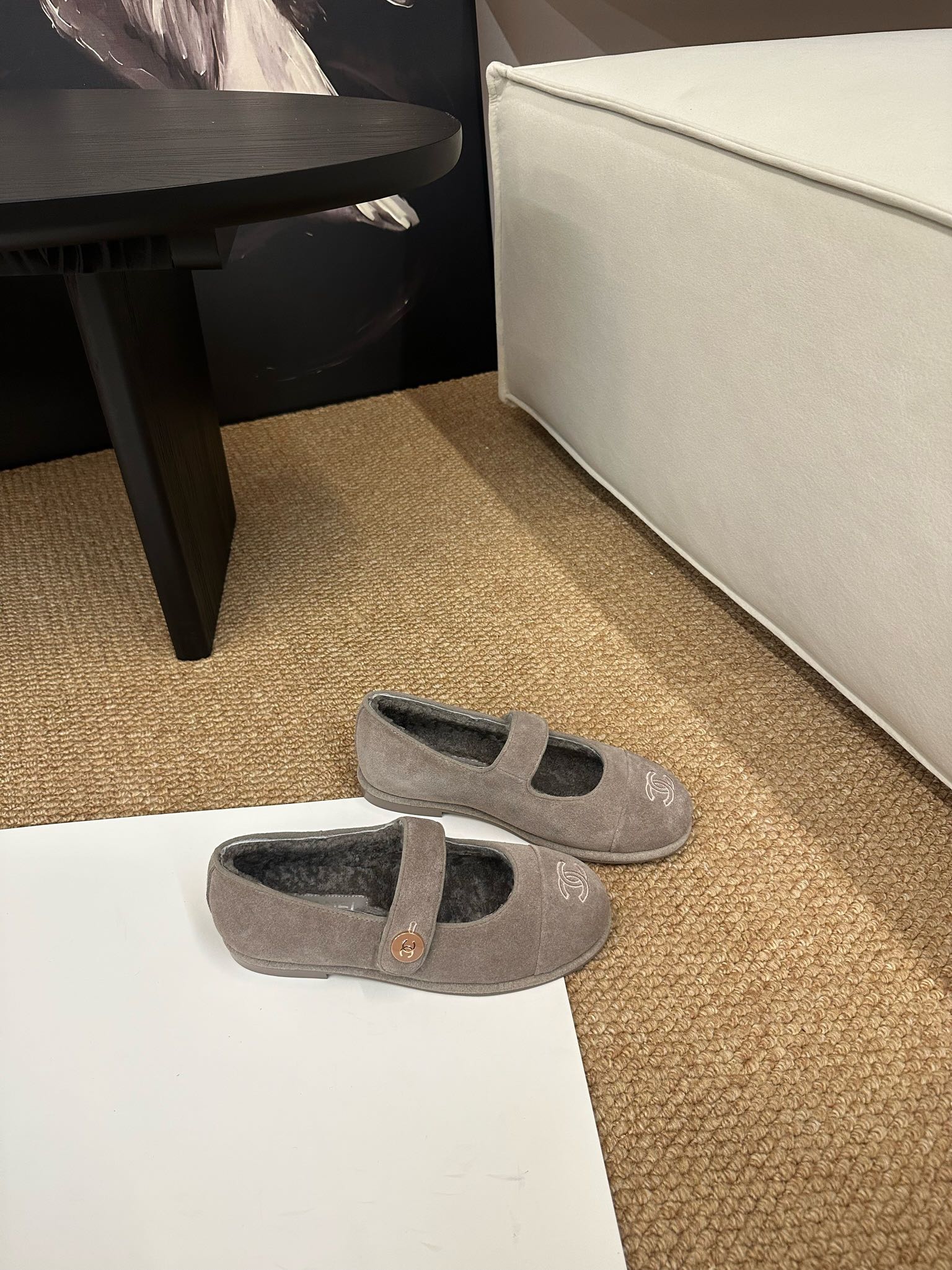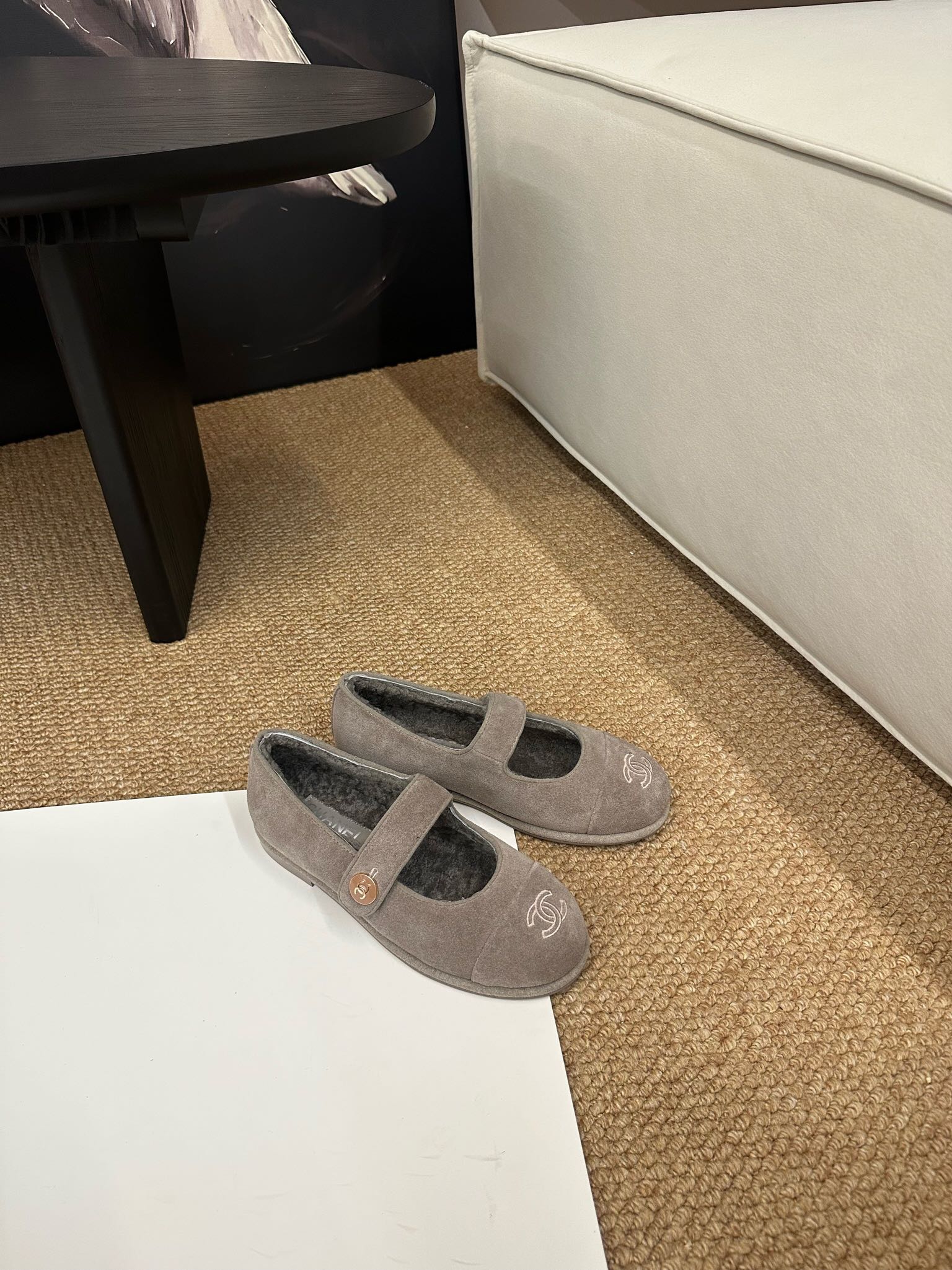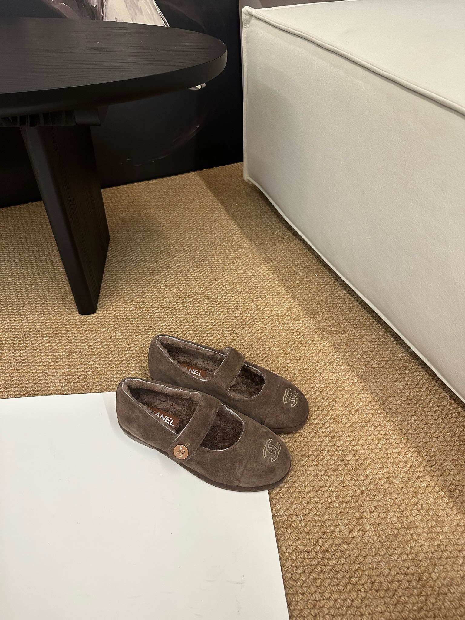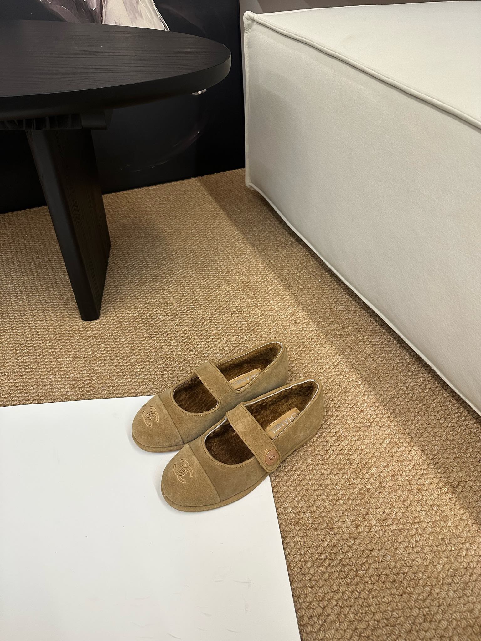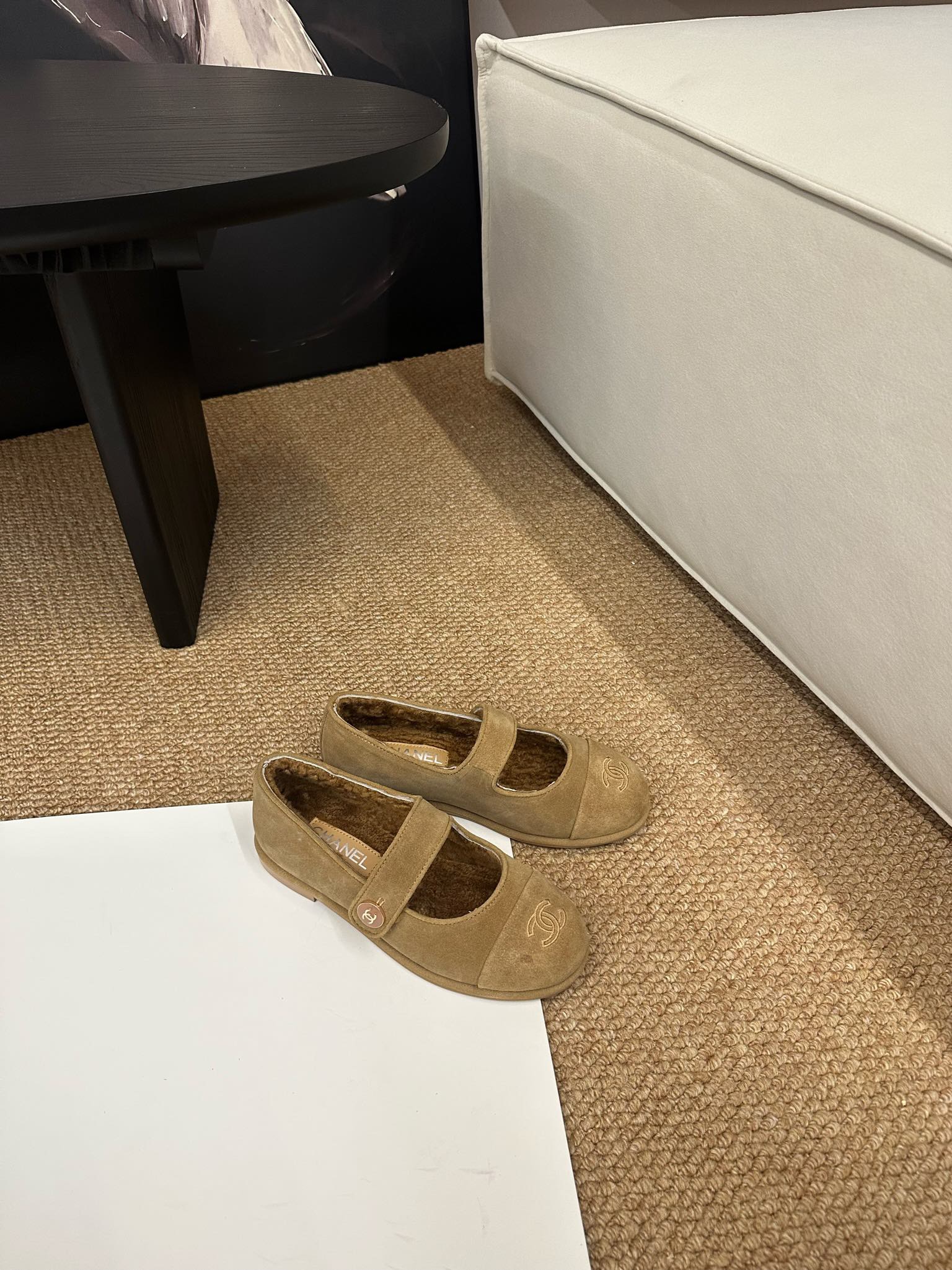 NIGO Chanel Women's Autumn/Winter Mary Jane Shoes Solid Color Leather Lamb Wool Single Shoes Round Head Buckle Flat Heel Casual Shoes #nigo81733