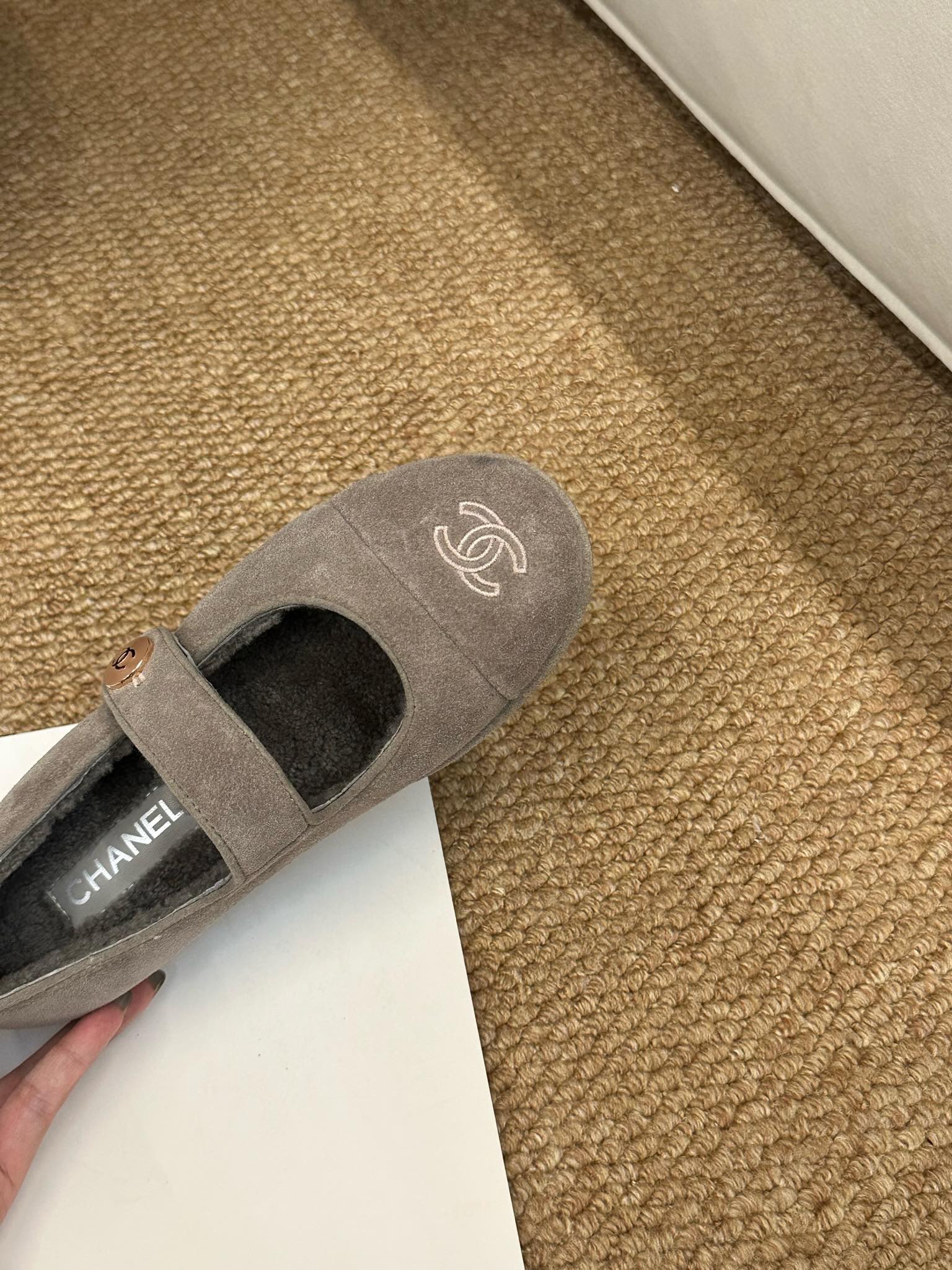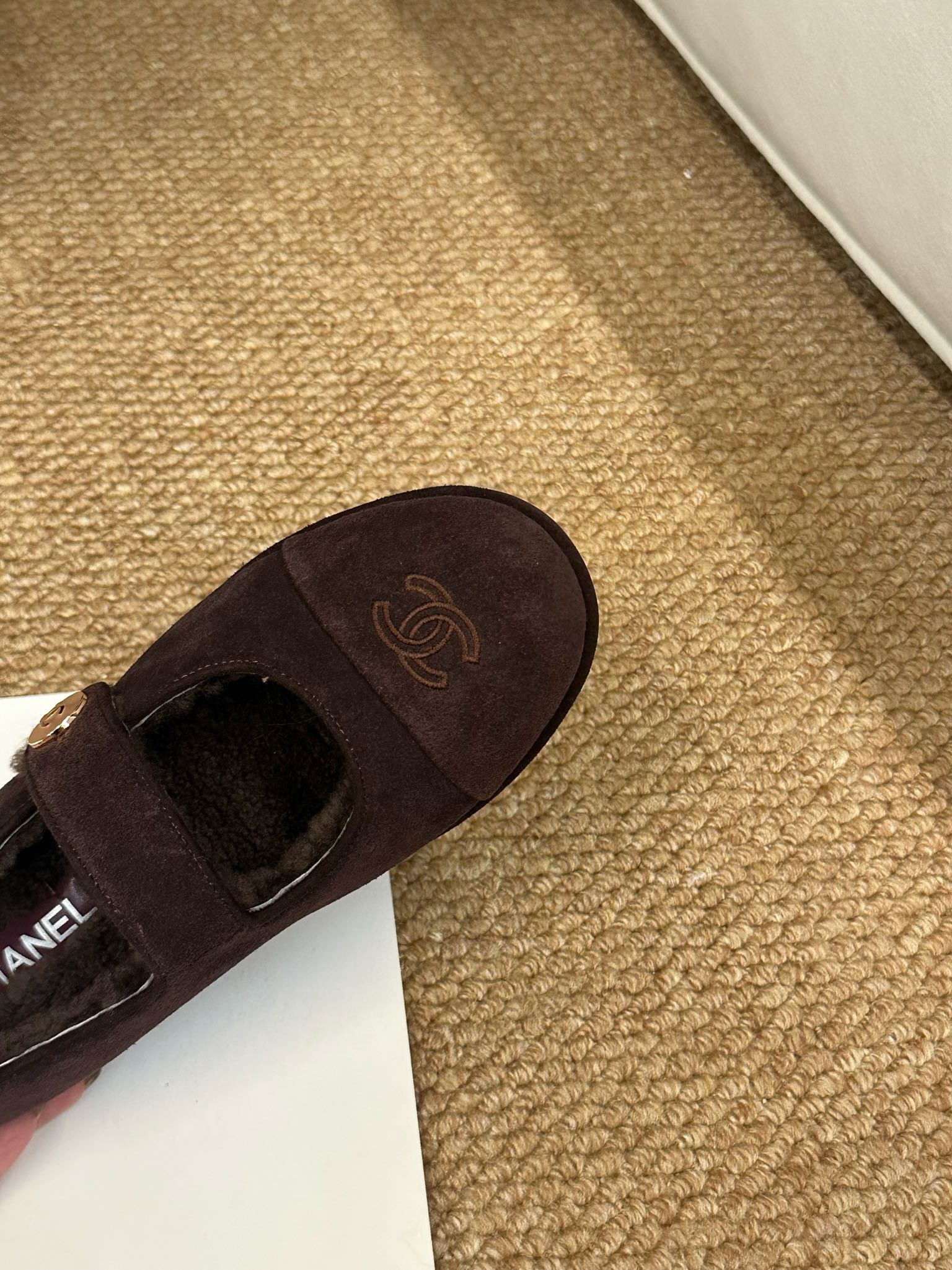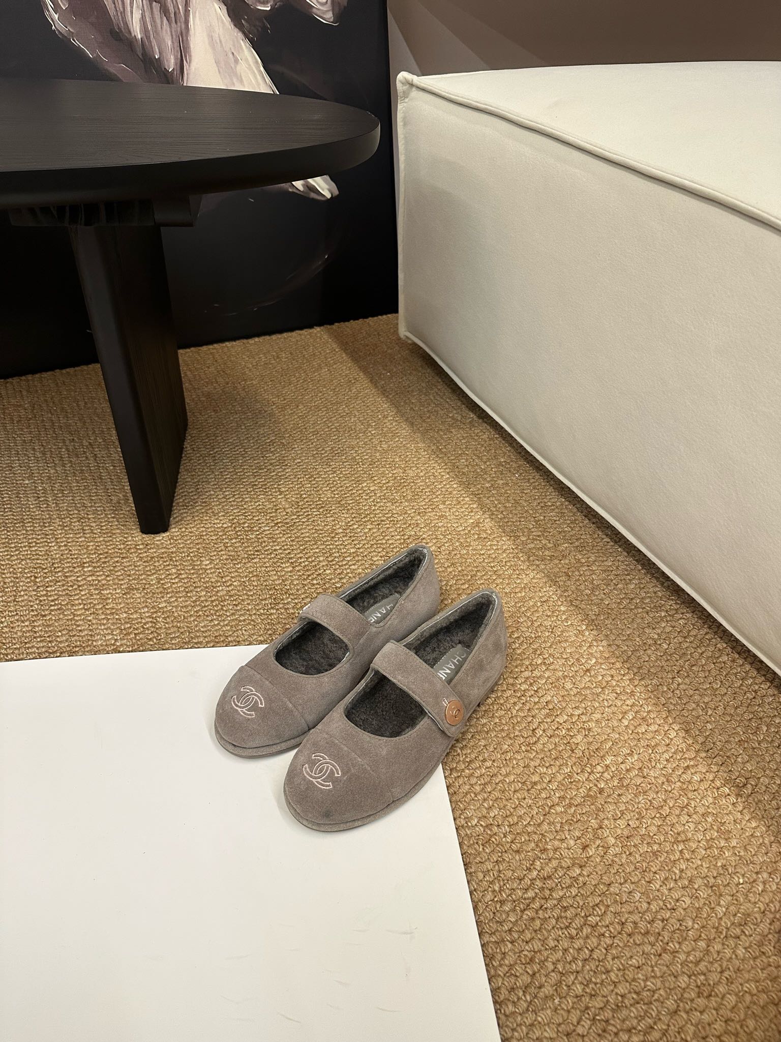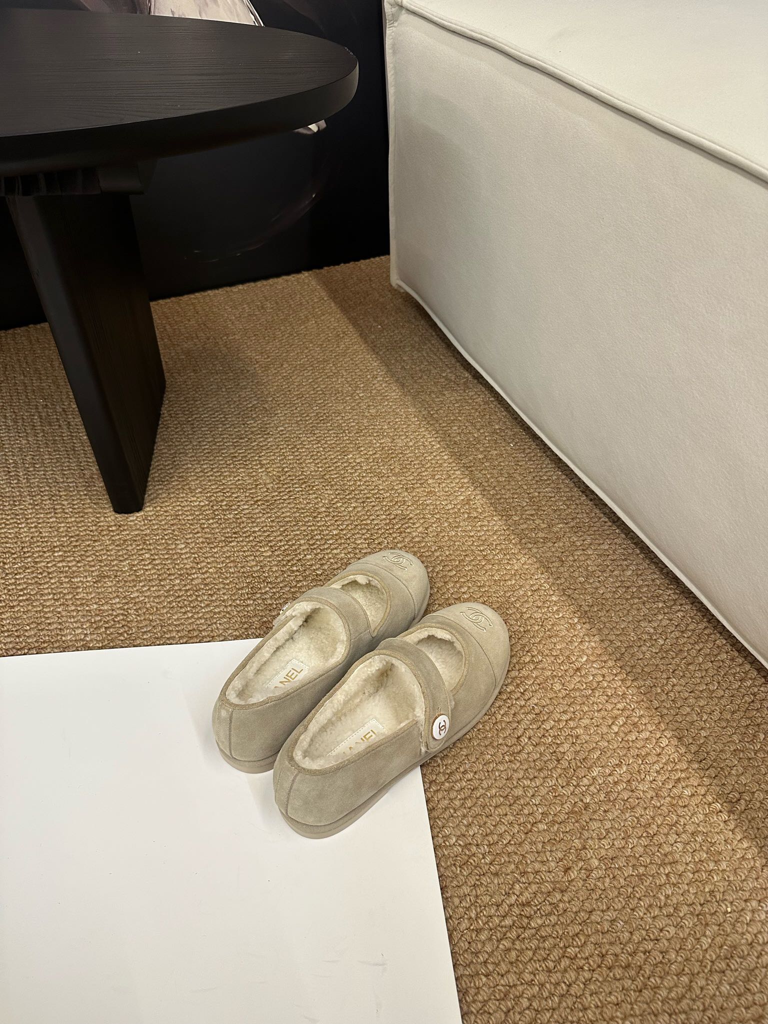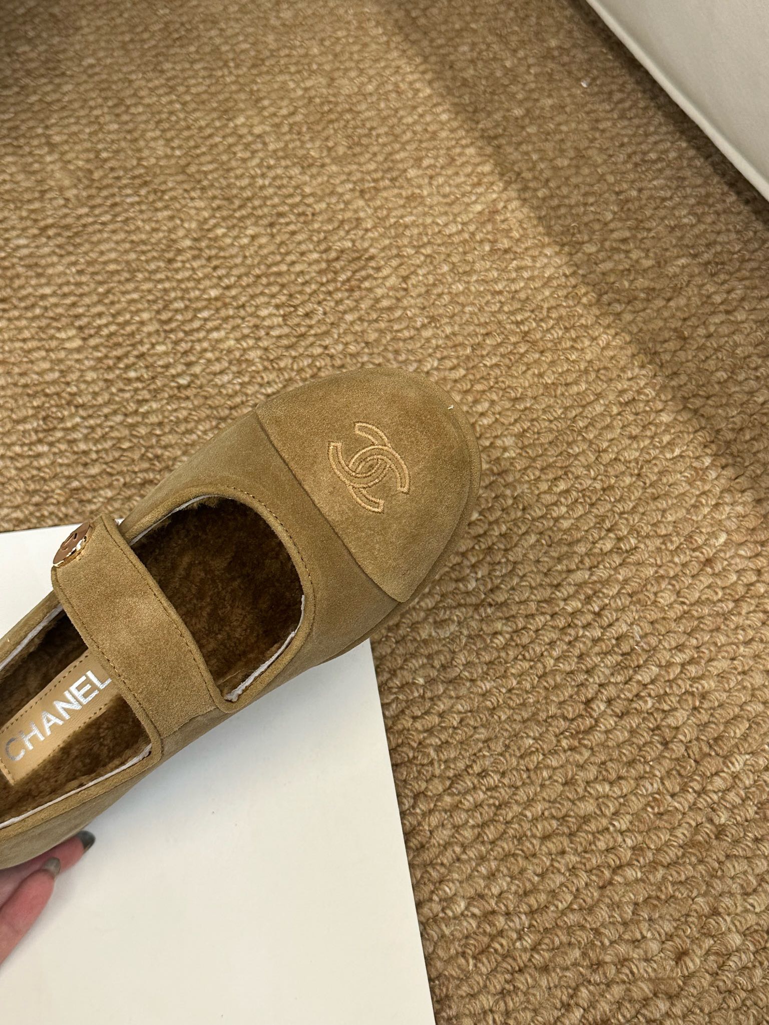 NIGO Chanel Women's Autumn/Winter Mary Jane Shoes Solid Color Leather Lamb Wool Single Shoes Round Head Buckle Flat Heel Casual Shoes #nigo81733