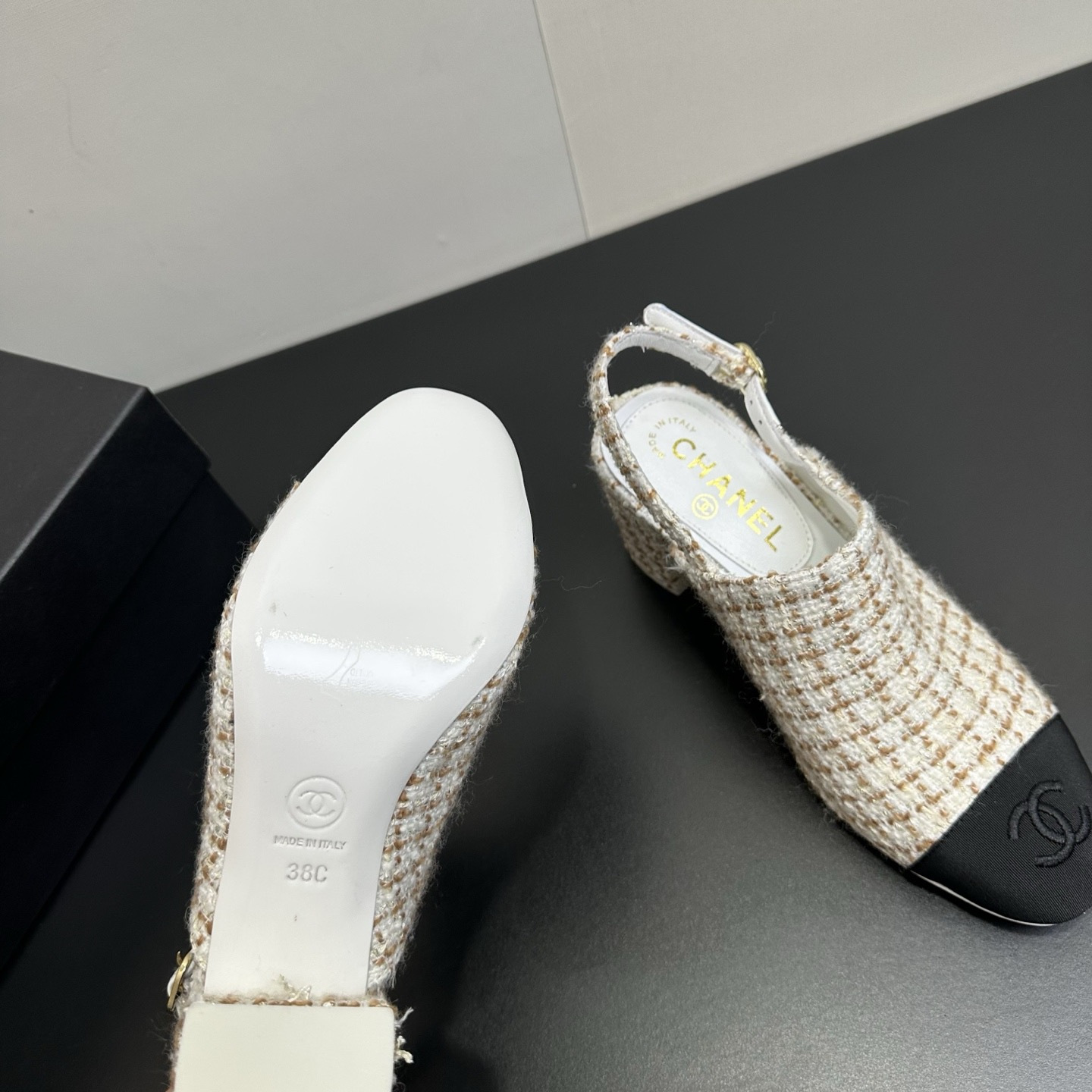 This Chanel shoes showcases the brand's exceptional craftsmanship and attention to detail. this piece combines timeless luxury with modern style.