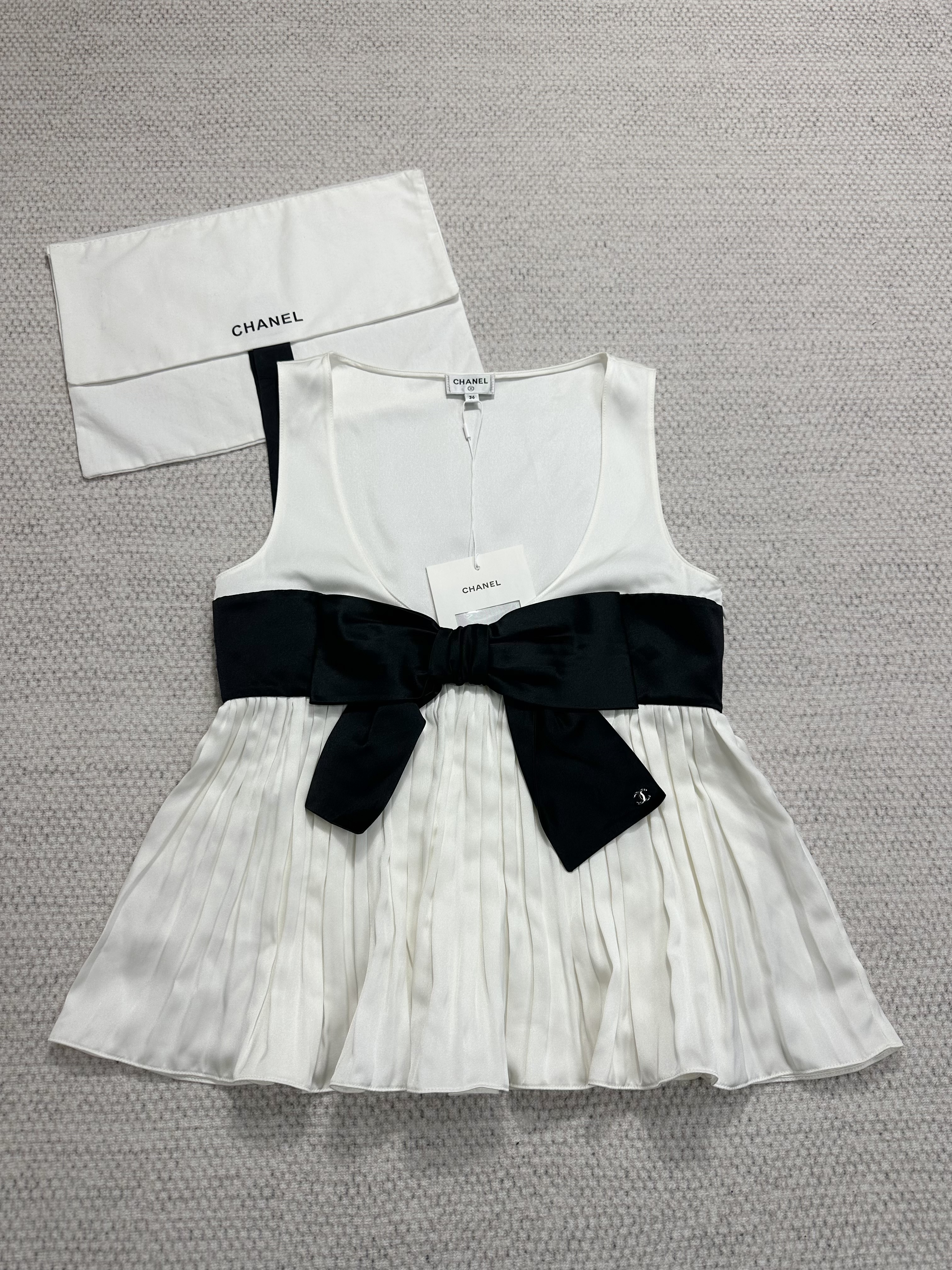 NIGO Chanel Women's Bow-Tie Low Round Neck Spring/Summer Solid Color Silk Sleeveless Tank Top Vest Ngvp #nigo2588