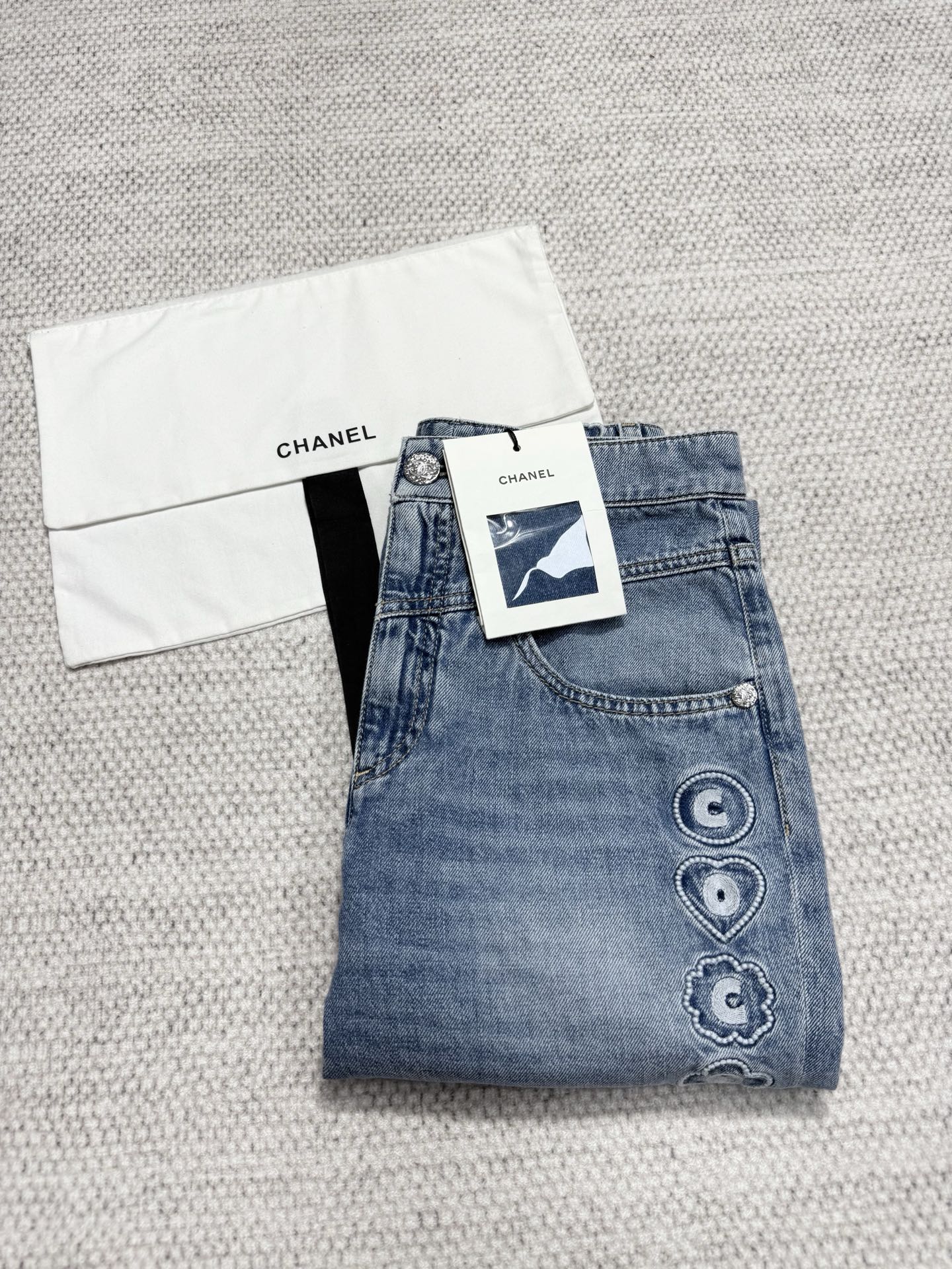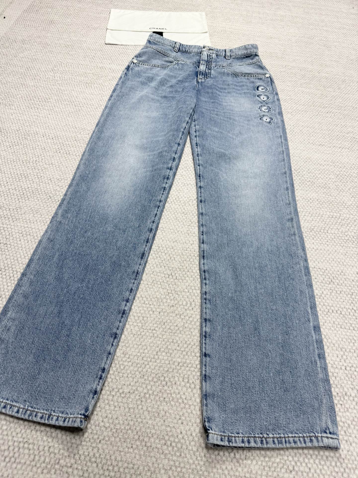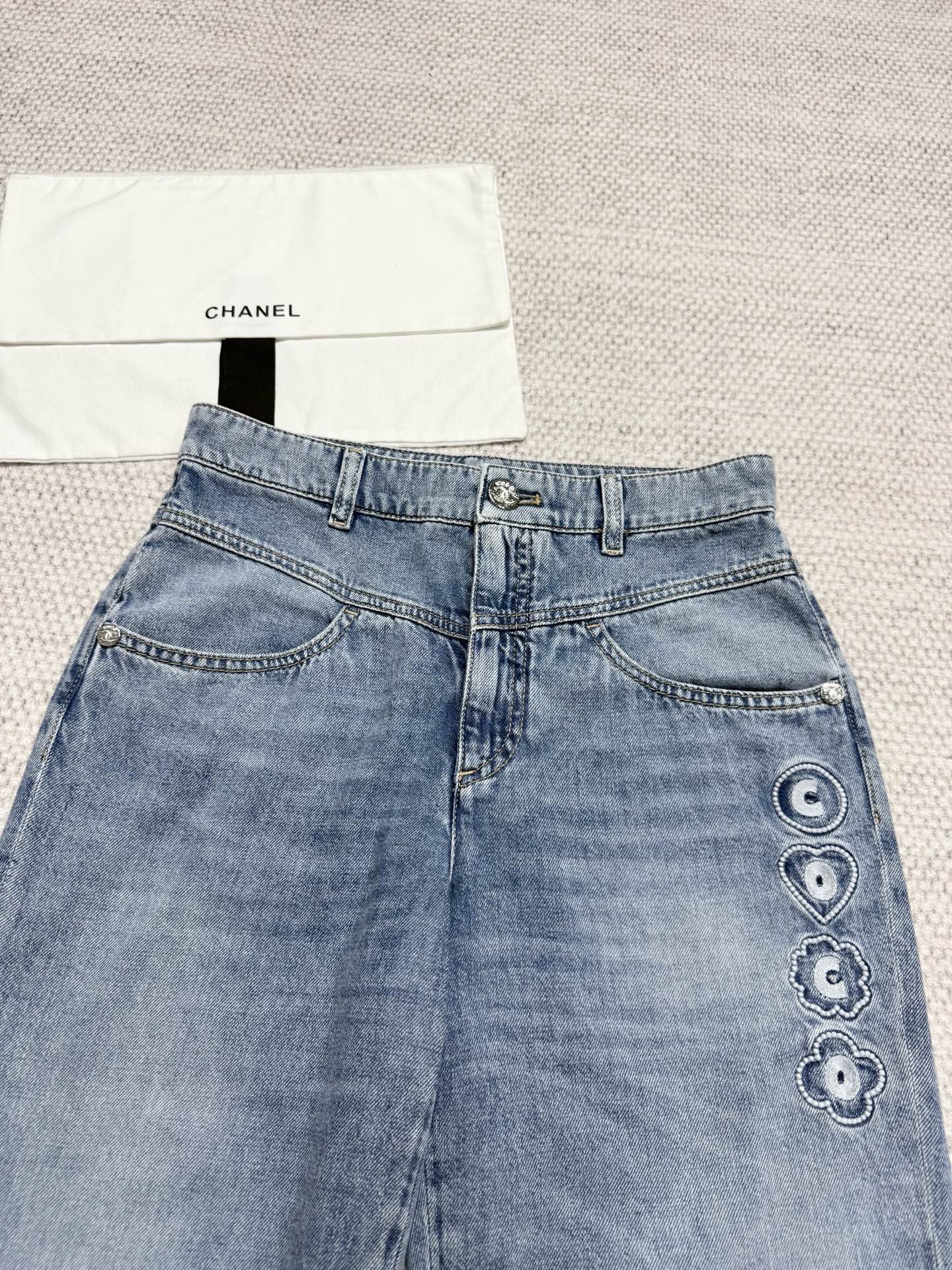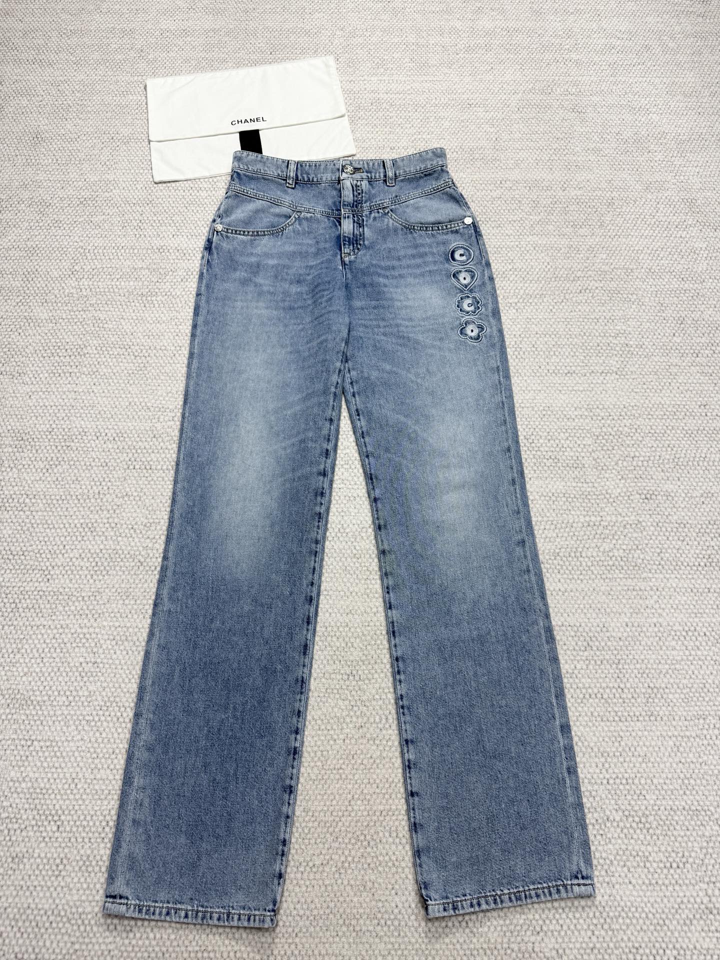 NIGO Chanel Women's CoCo Beach Four Seasons Solid Color Embroidered Straight Leg Denim Trousers Pants Ngvp #nigo1699