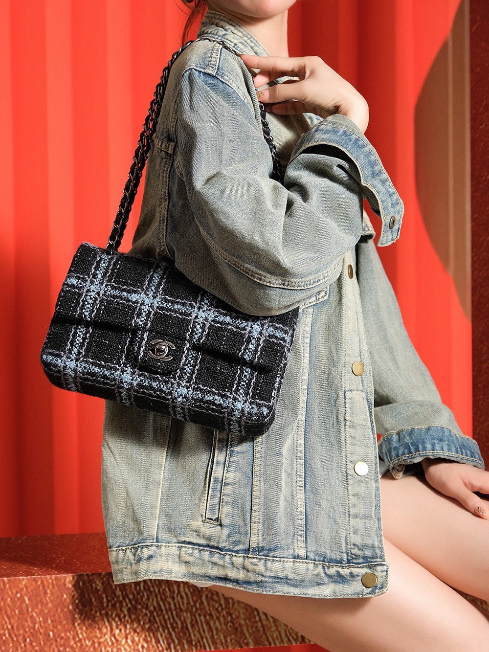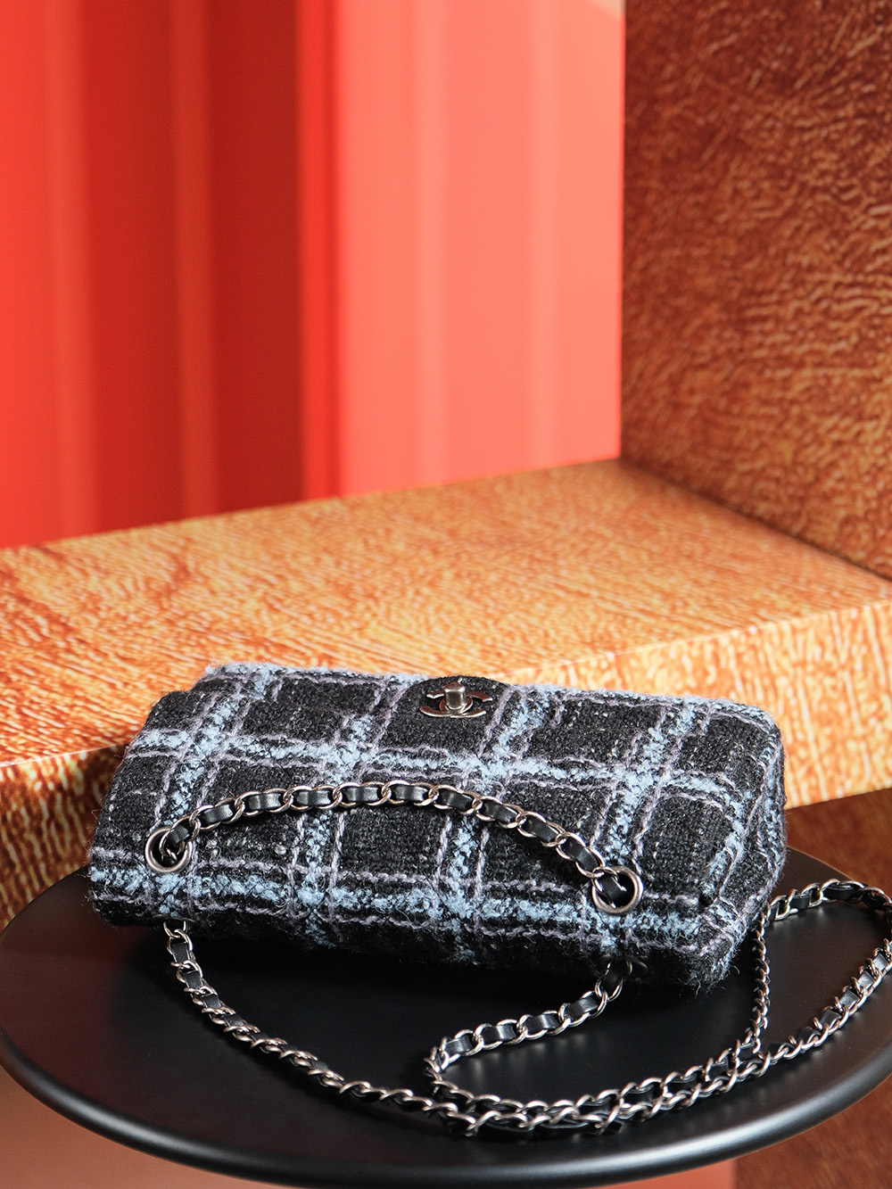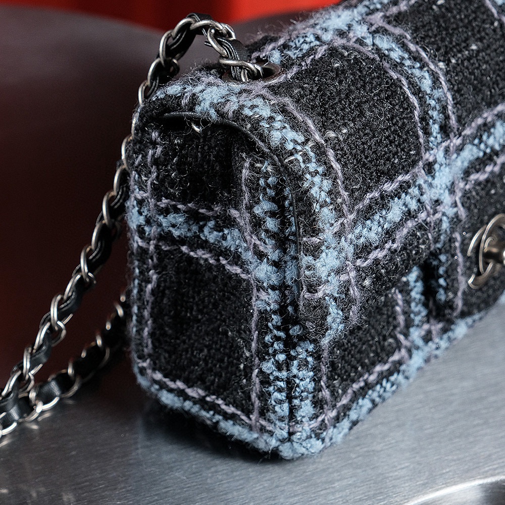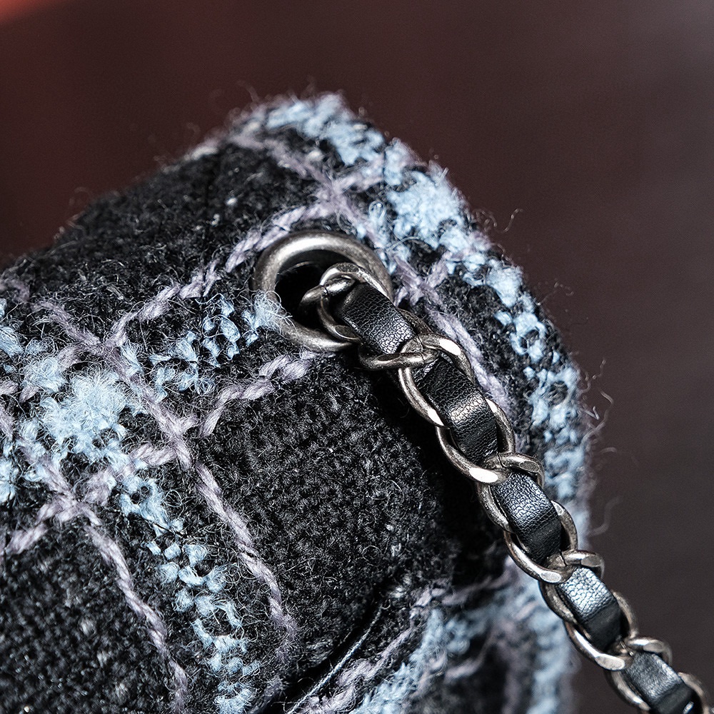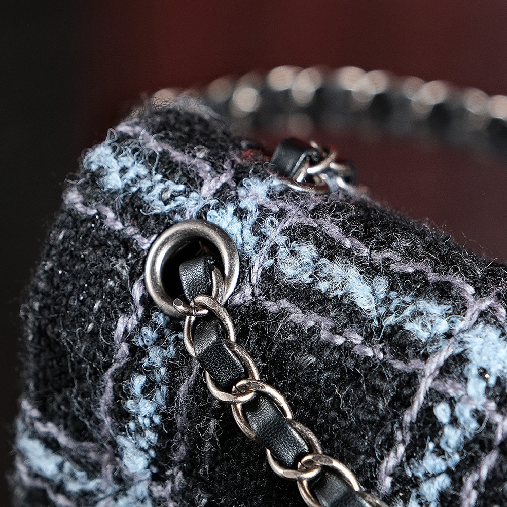 NIGO Chanel Women's Colorblocked Plush Metal Chain Shoulder Strap Wool Tweed Shoulder Crossbody Bag Bags #nigo73959
