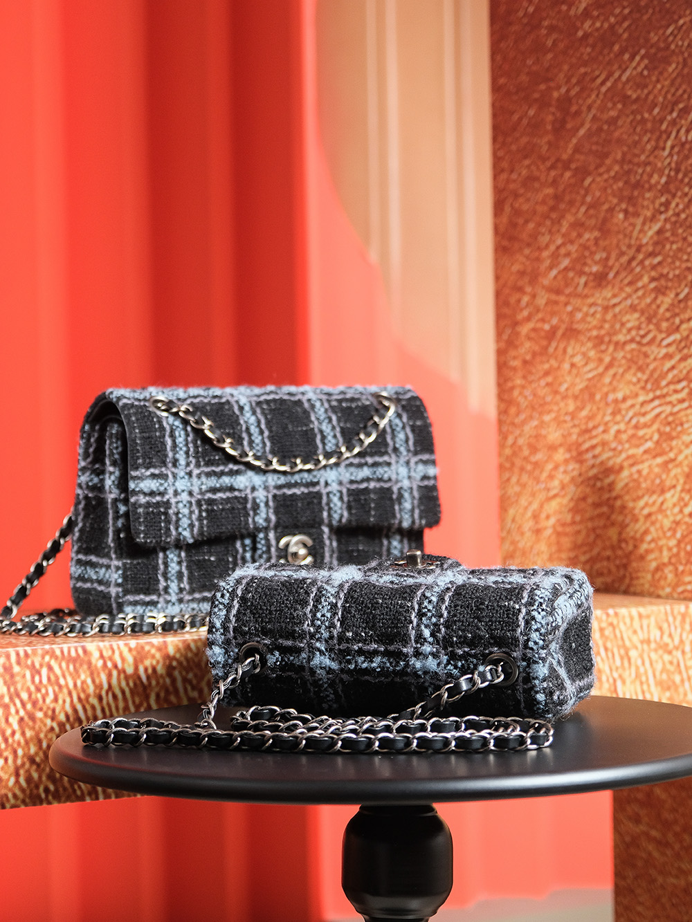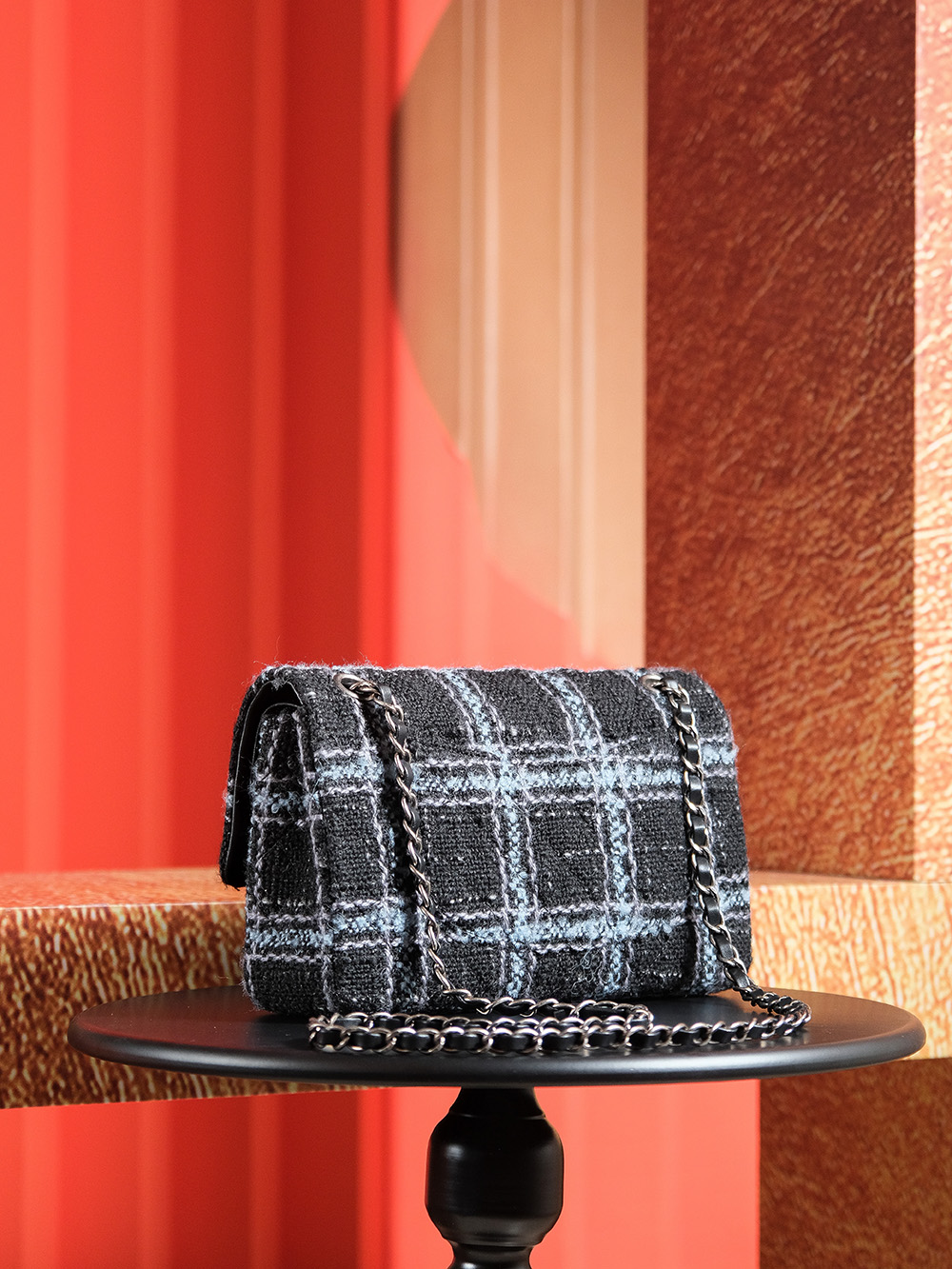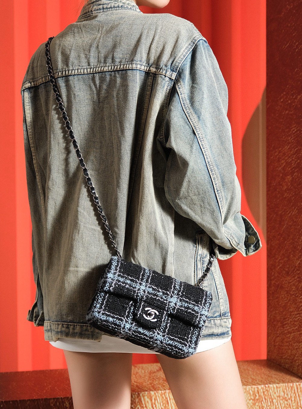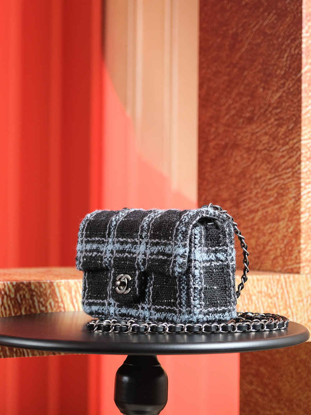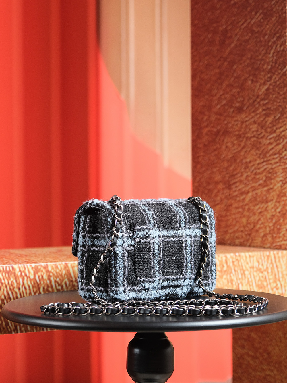 NIGO Chanel Women's Colorblocked Plush Metal Chain Shoulder Strap Wool Tweed Shoulder Crossbody Bag Bags #nigo73959