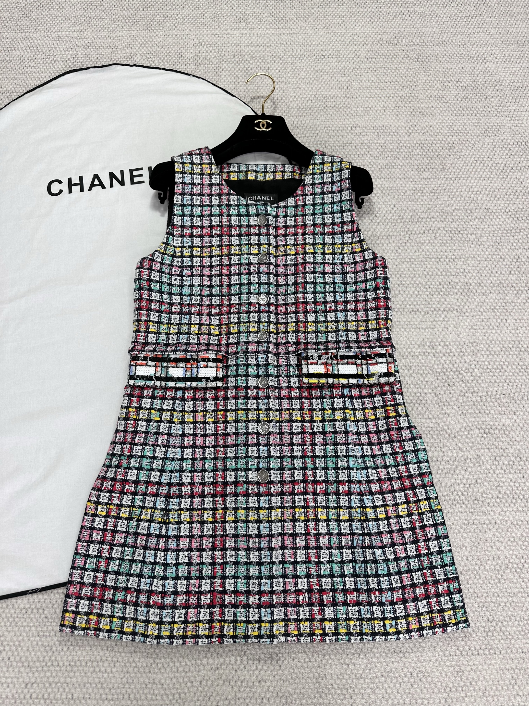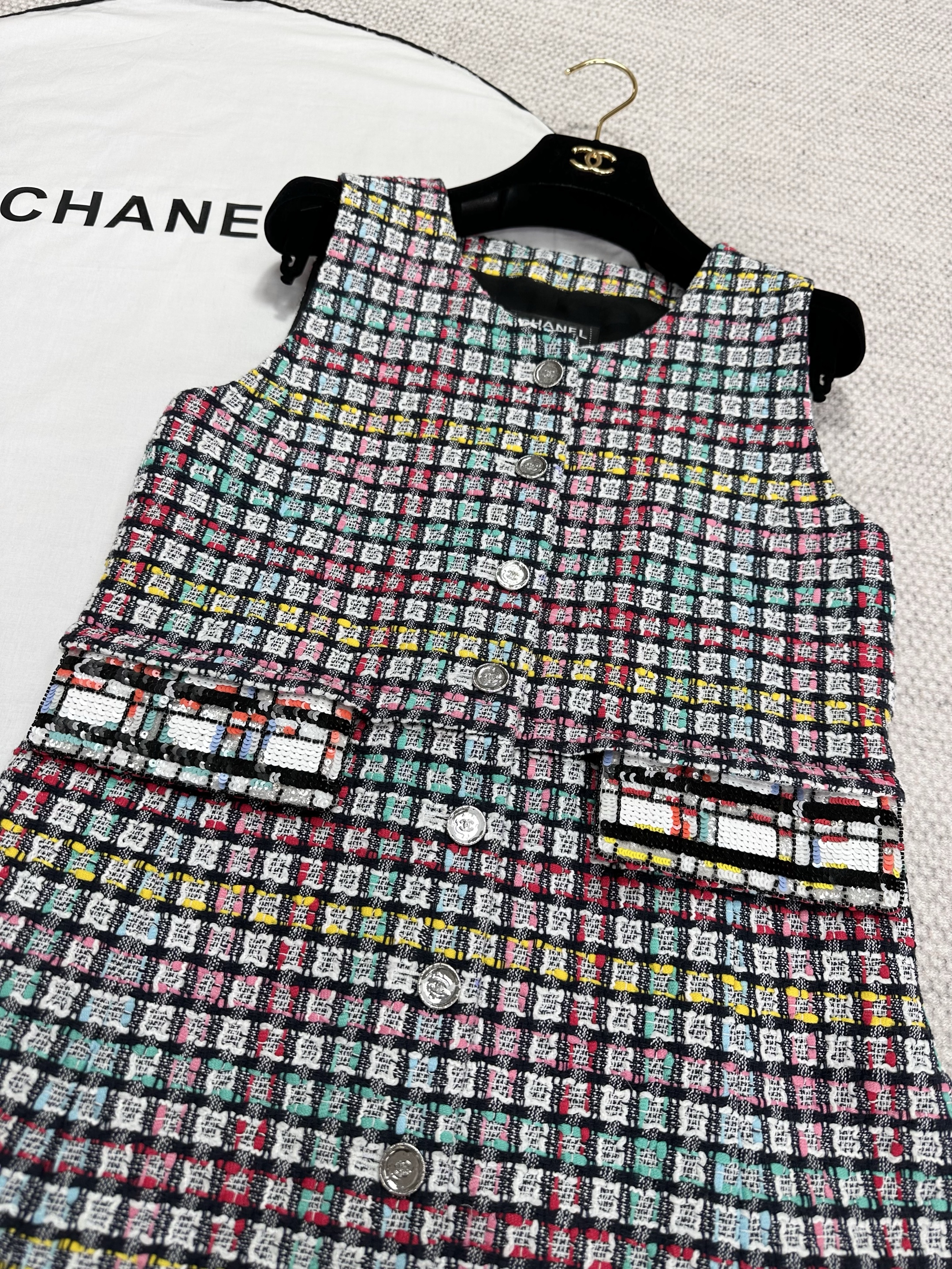 NIGO Chanel Women's Colorful Plaid Dress Spring And Summer Sleeveless Tweed Skirt Top Lined 100% Silk Fashion Temperament Dresses Ngvp #nigo9992