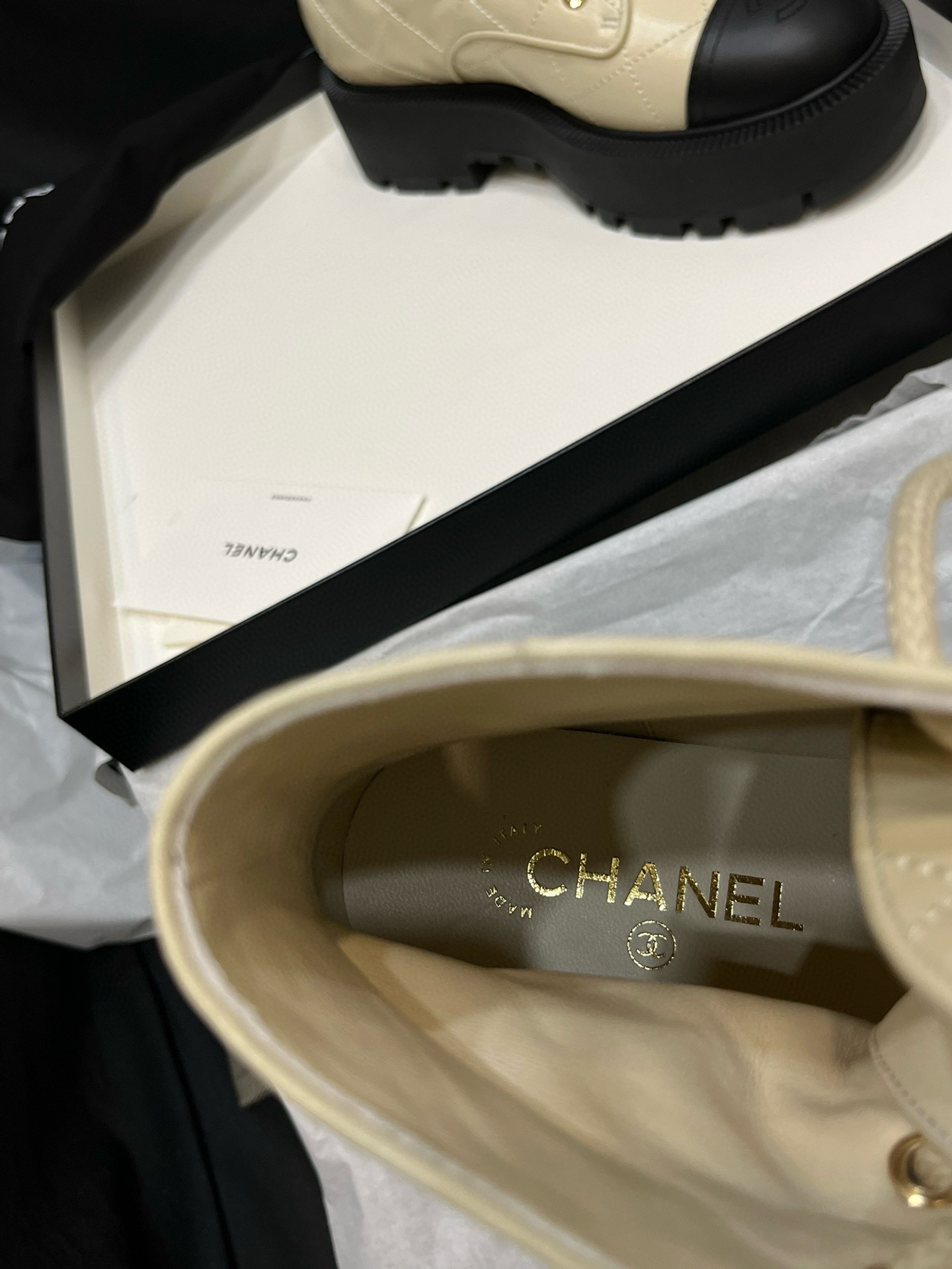 This Chanel shoes showcases the brand's exceptional craftsmanship and attention to detail. this piece combines timeless luxury with modern style.