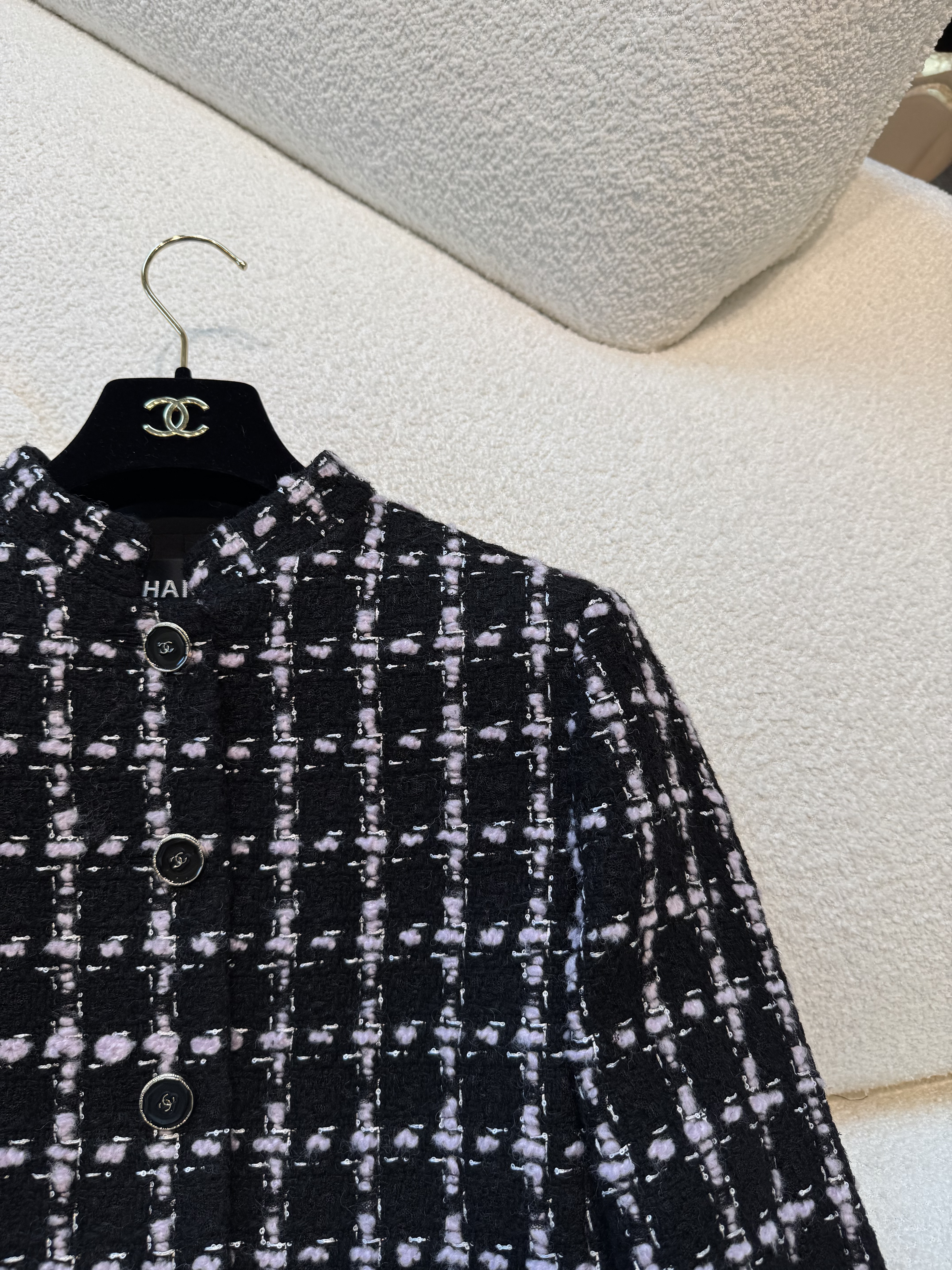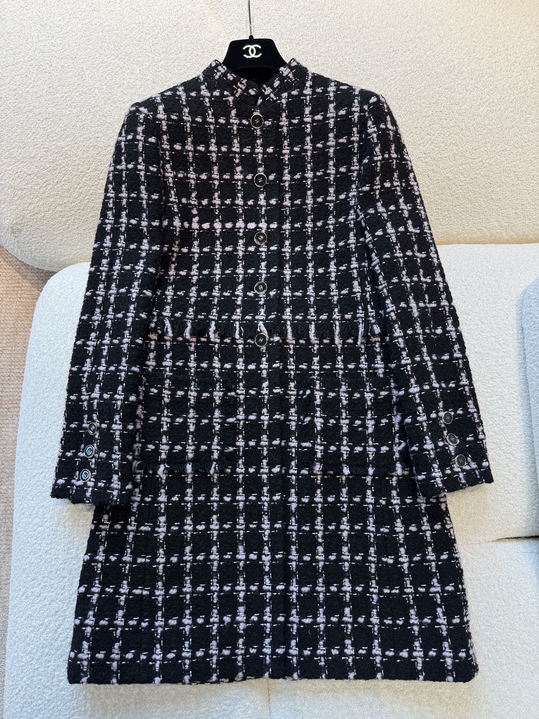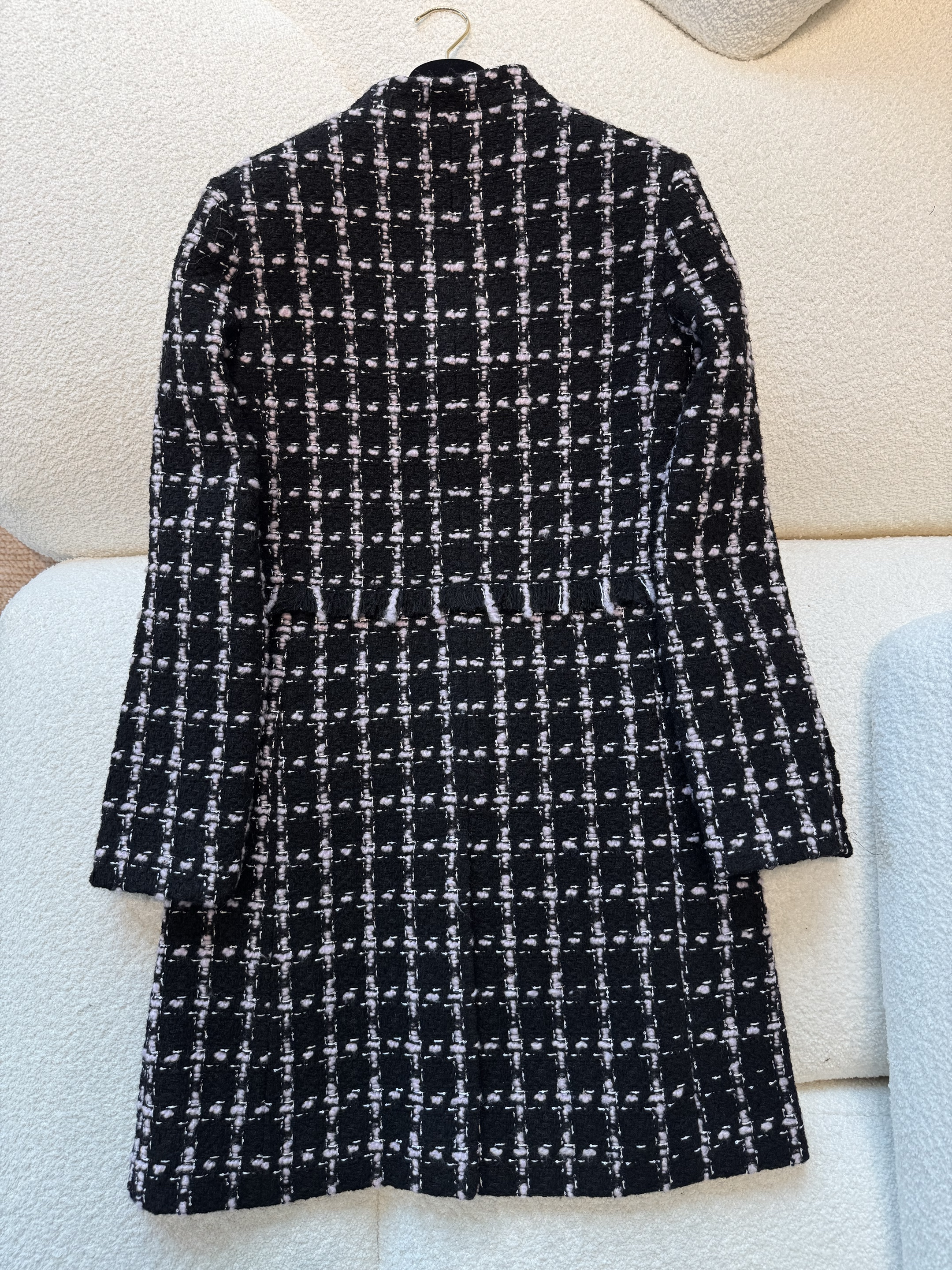 NIGO Chanel Women's Fall/Winter Checkered Stand Collar Wool Blend Button-Up Multi-Color Long Coat Jacket Ngvp #nigo2559