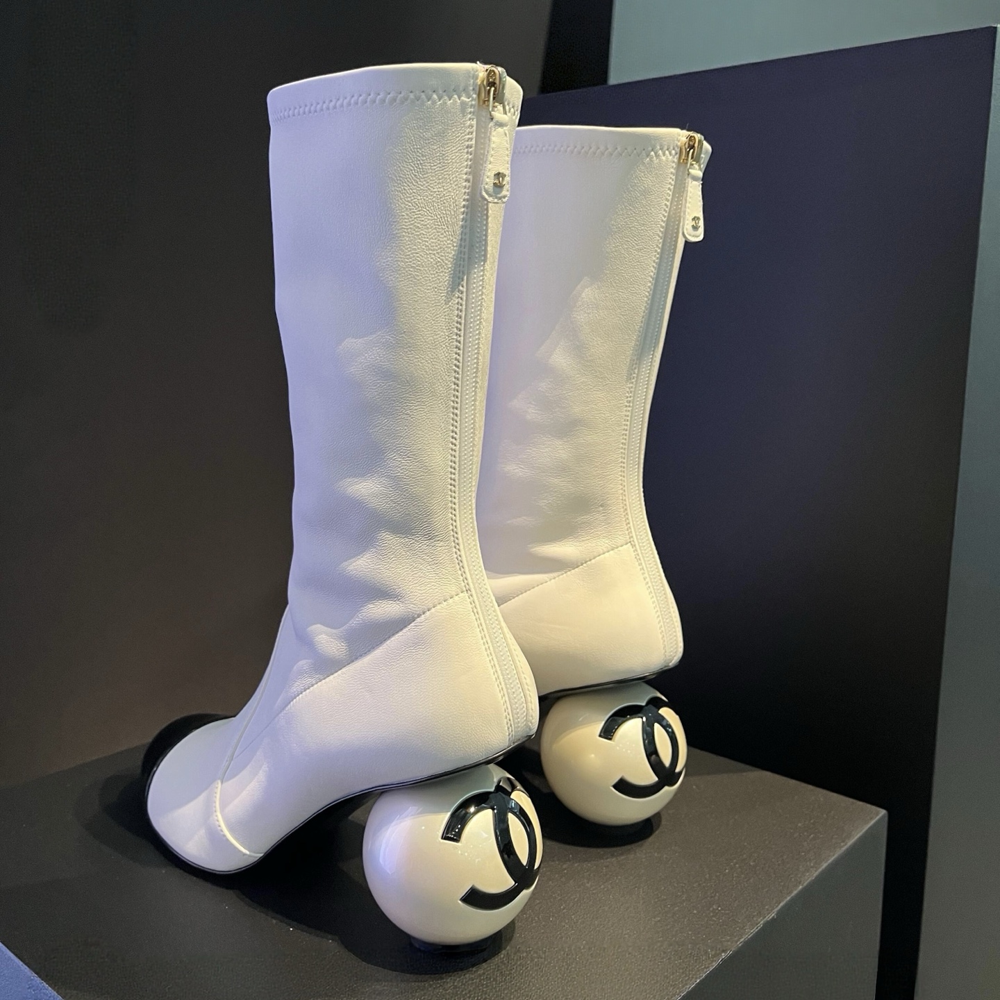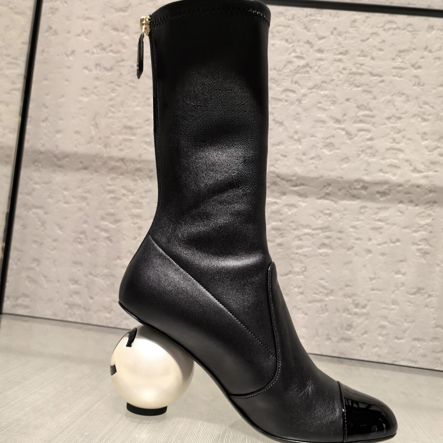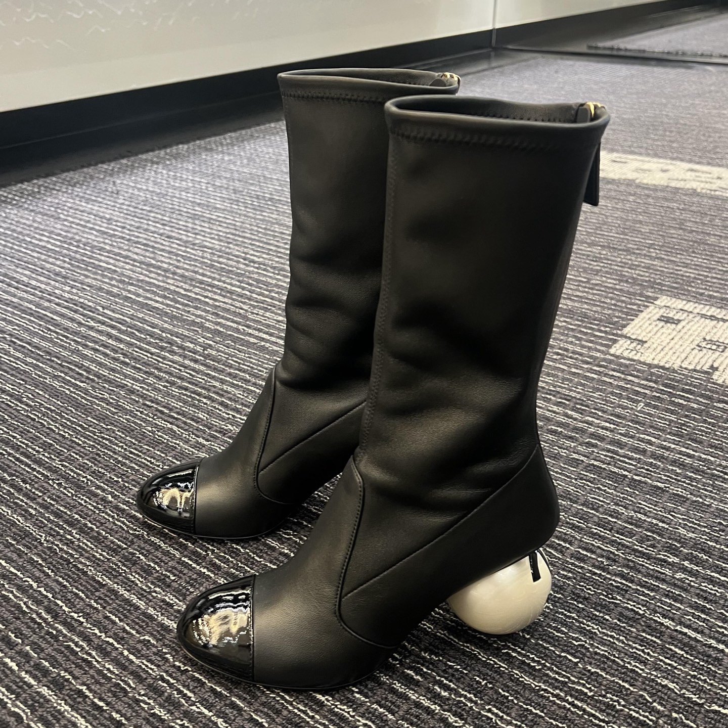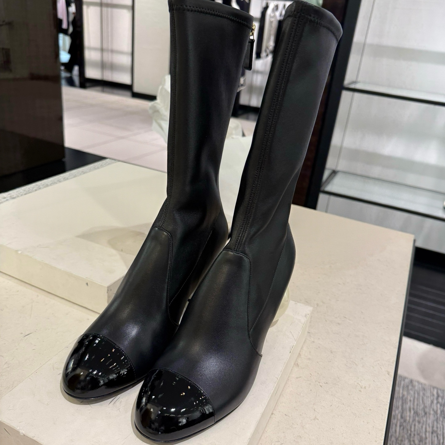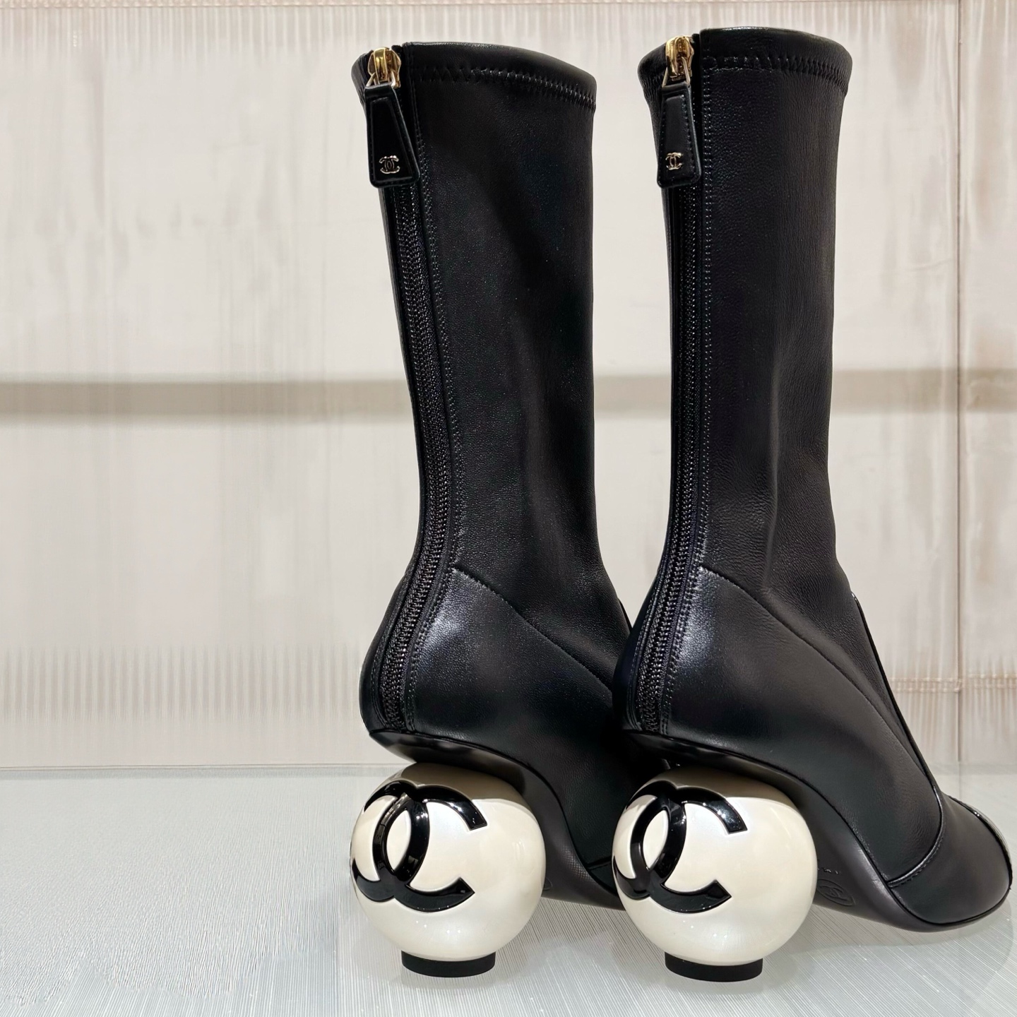NIGO Chanel Women's Fall/Winter Fashion Classic Color Block Leather Round Toe Slip On Zipper Pearl Heel High Boots Pearl Boots Shoes #nigo330870