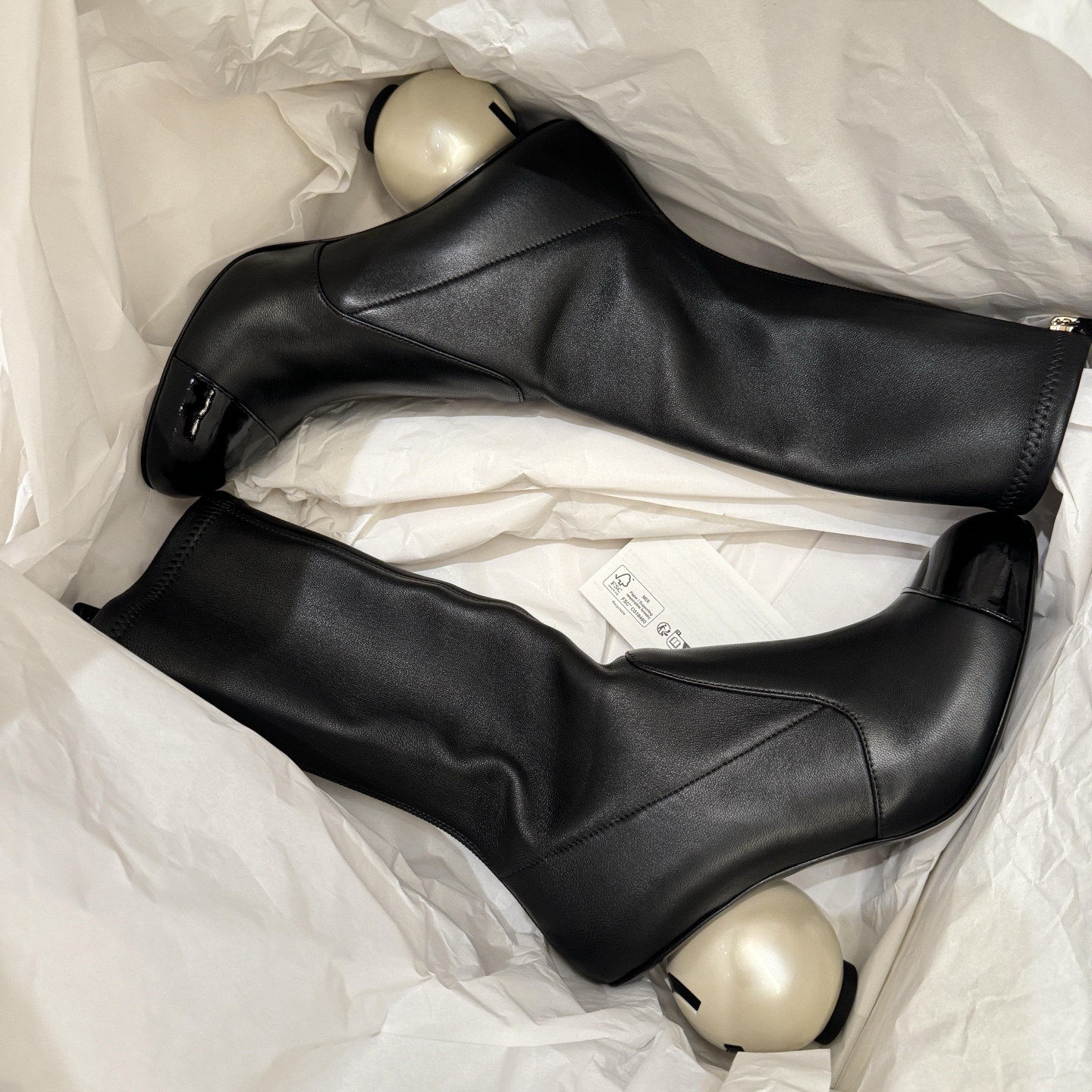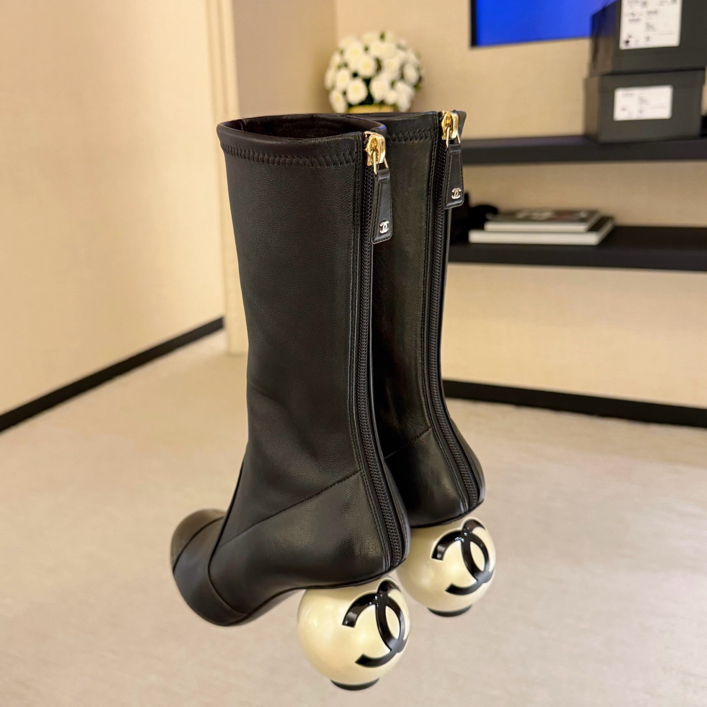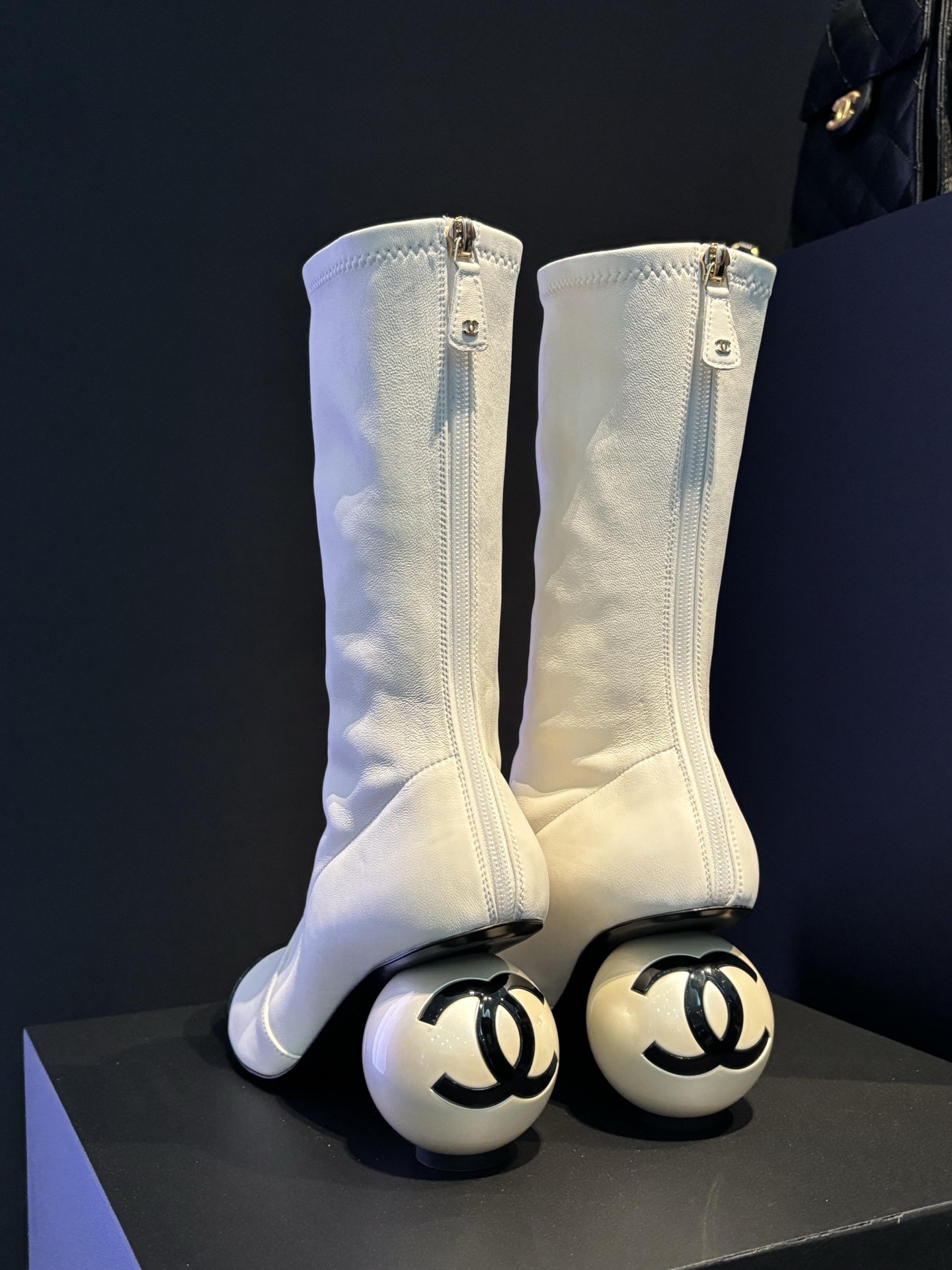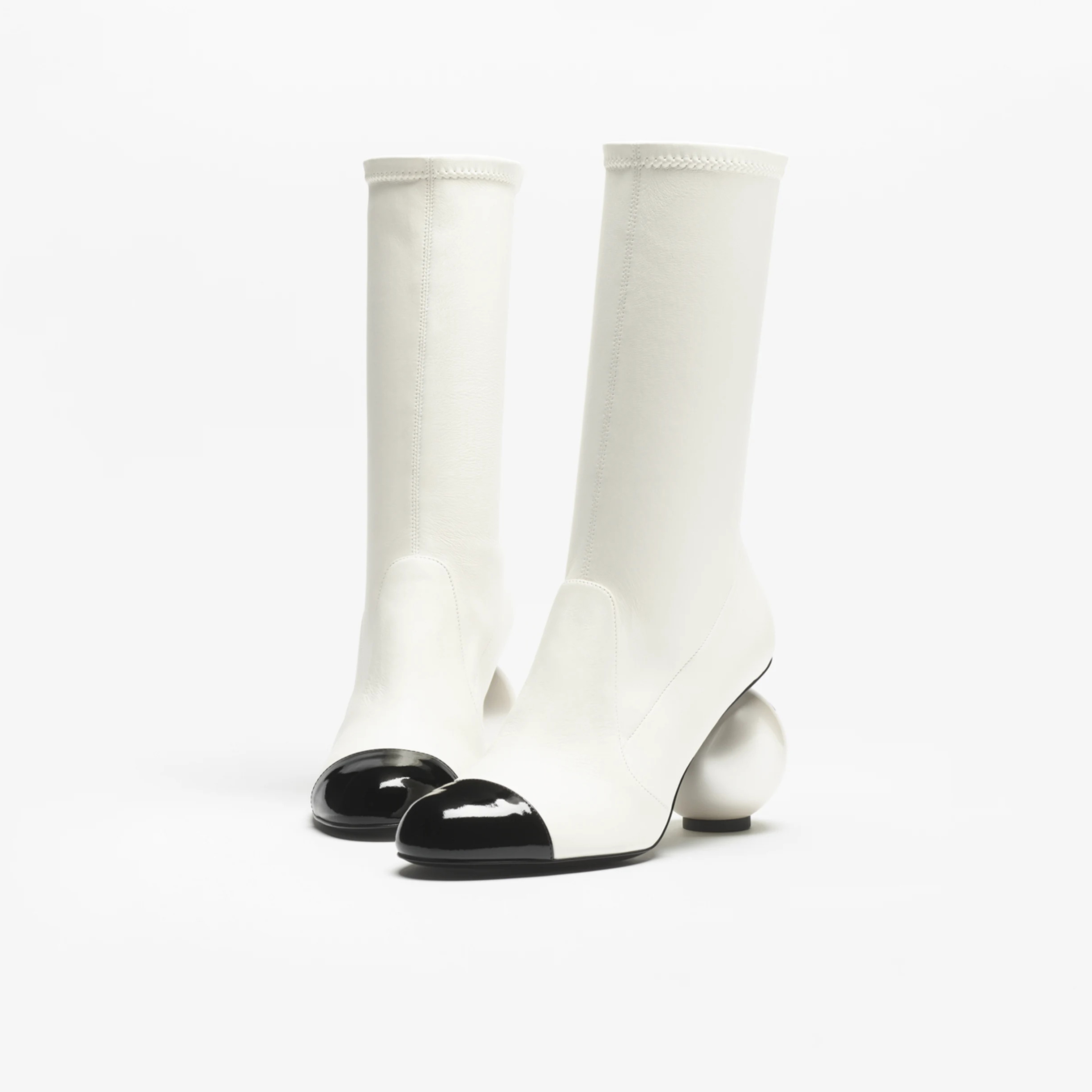 NIGO Chanel Women's Fall/Winter Fashion Classic Color Block Leather Round Toe Slip On Zipper Pearl Heel High Boots Pearl Boots Shoes #nigo330870