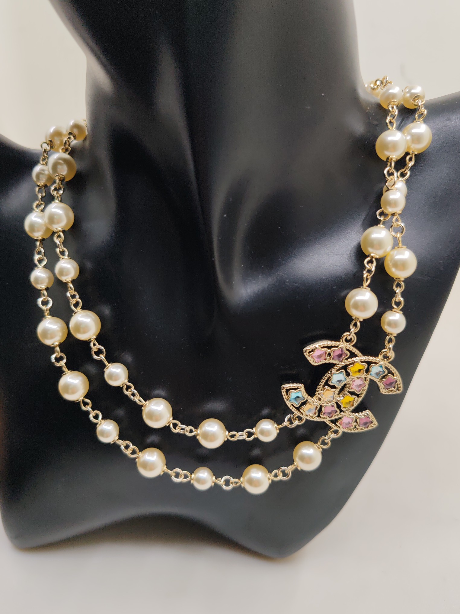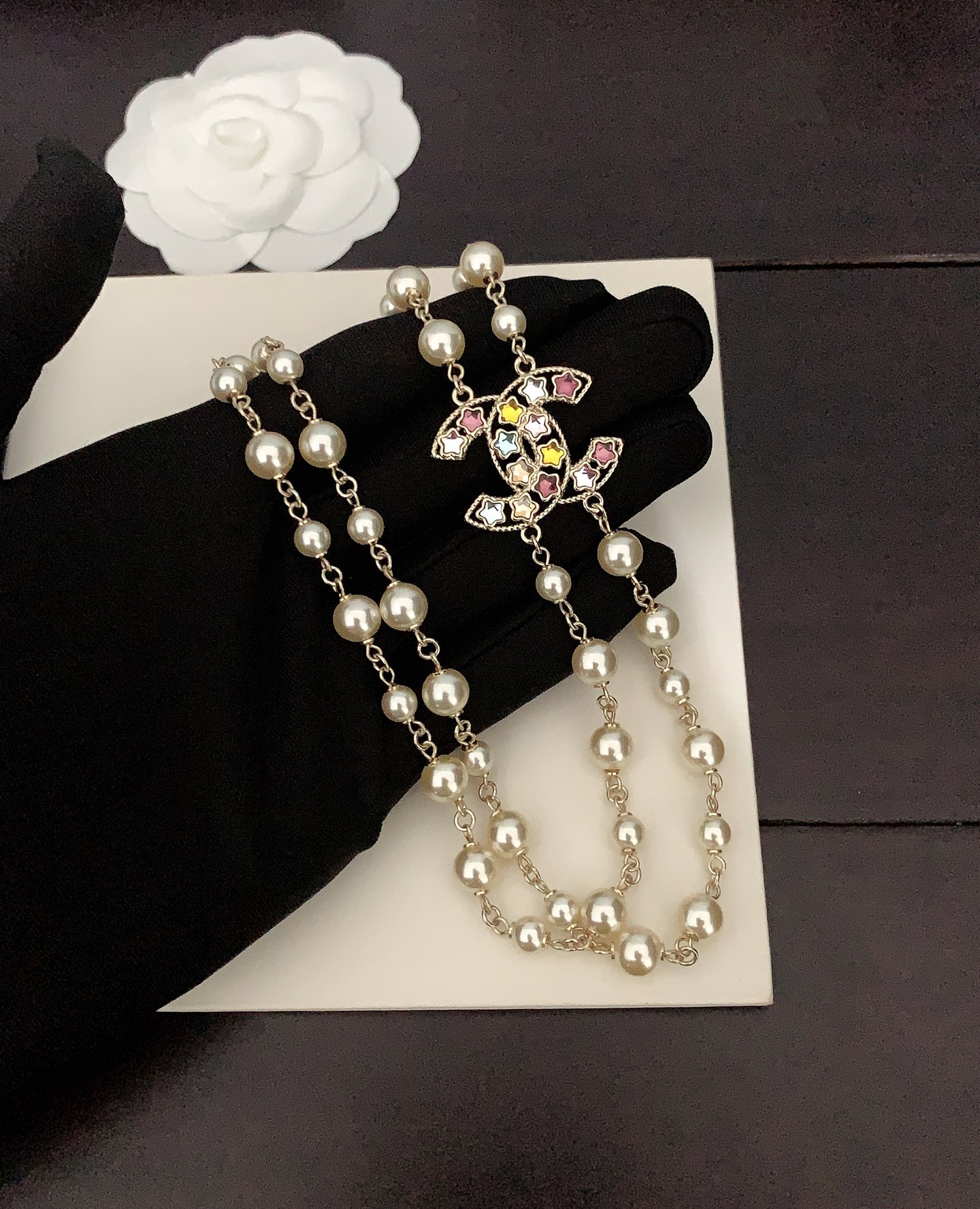 NIGO Chanel Women's Fashion Classic Colored Diamond Five Pointed Star Pearl Double Layer Necklace Brass Material Necklace Jewelry Accessories #nigo78556