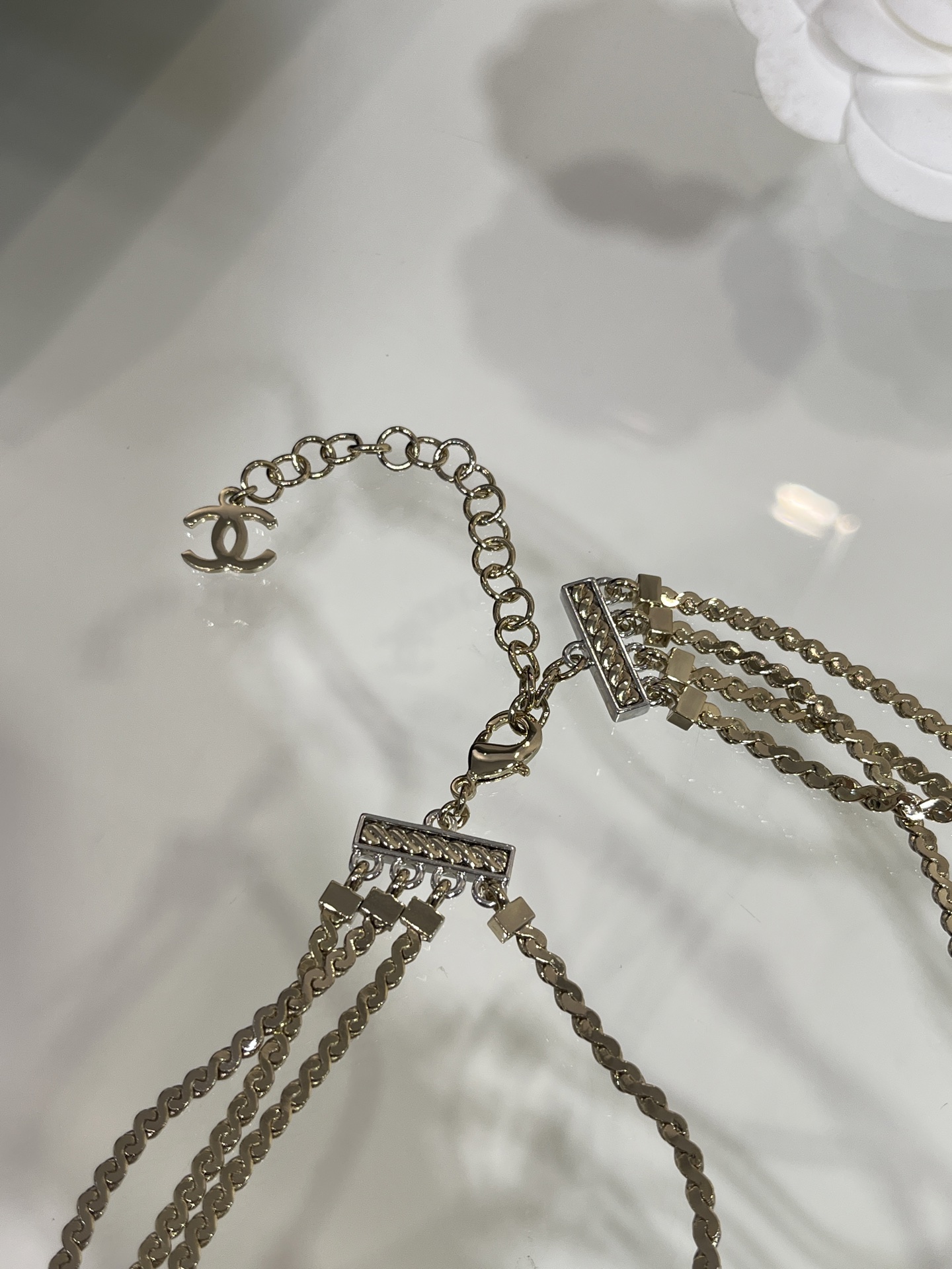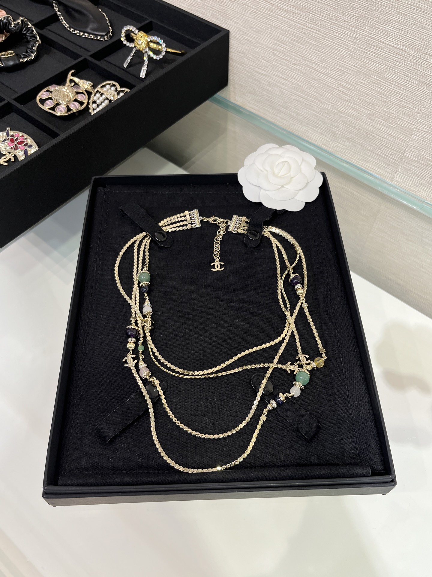 This Chanel jewelry showcases the brand's exceptional craftsmanship and attention to detail. this piece combines timeless luxury with modern style.