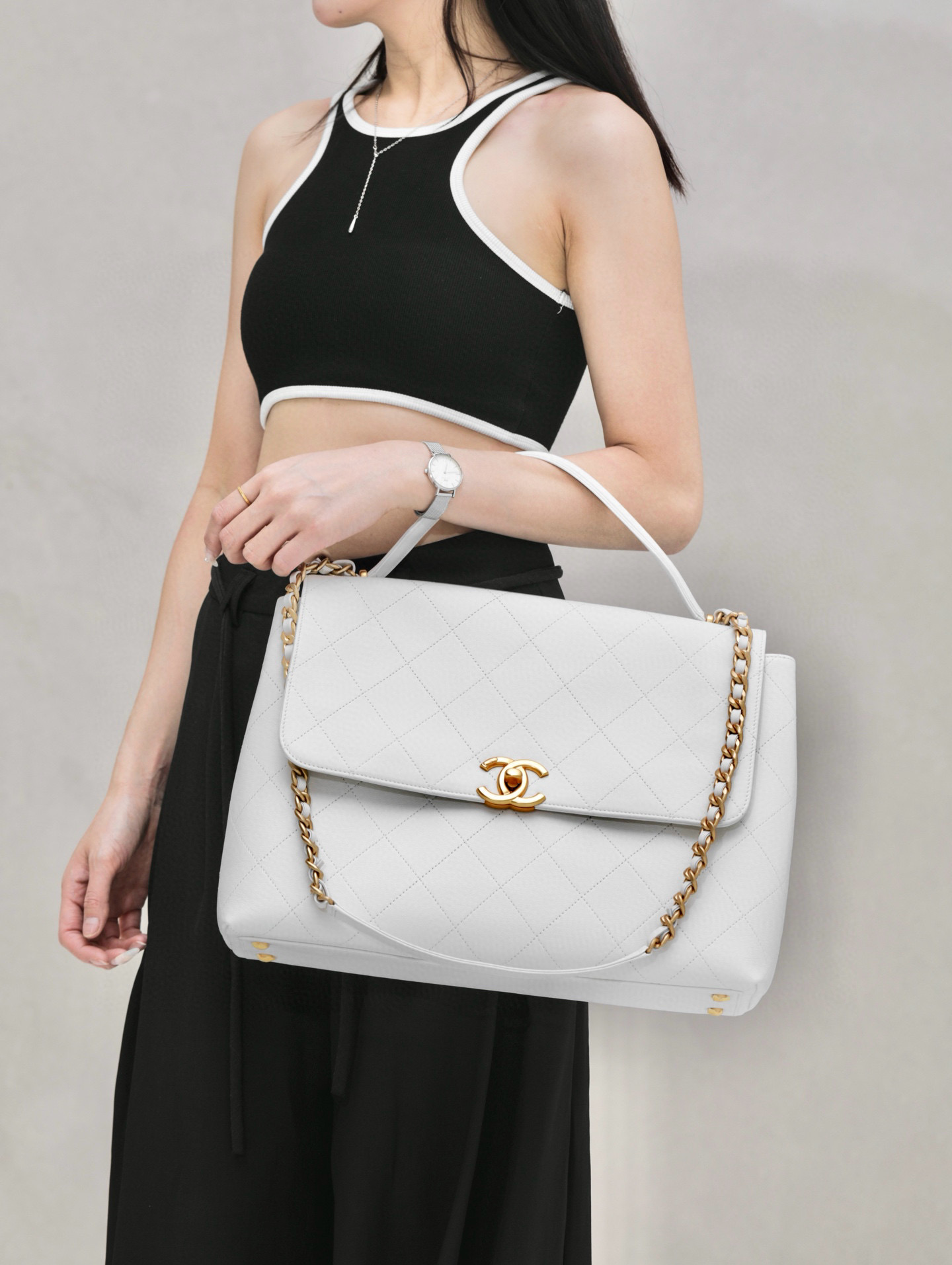 NIGO Chanel Women's Fashion Classic Solid Color Diamond Quilted Handle Top Closure Briefcase Chain Bag Bags #nigo78965