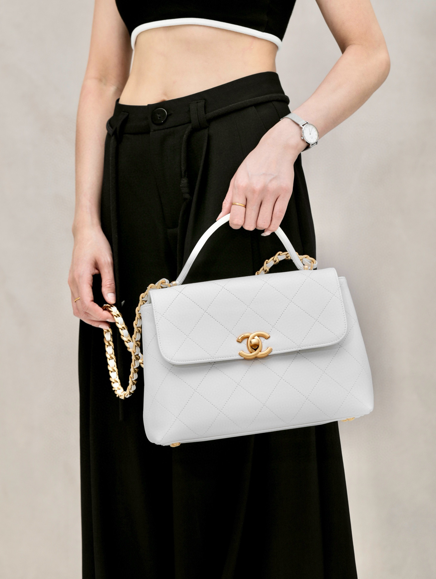 This Chanel handbag showcases the brand's exceptional craftsmanship and attention to detail. this piece combines timeless luxury with modern style.