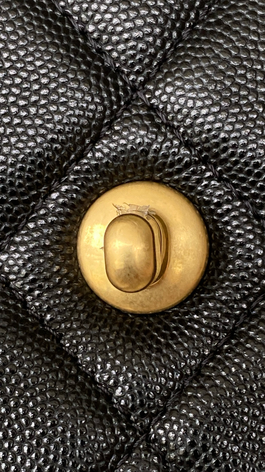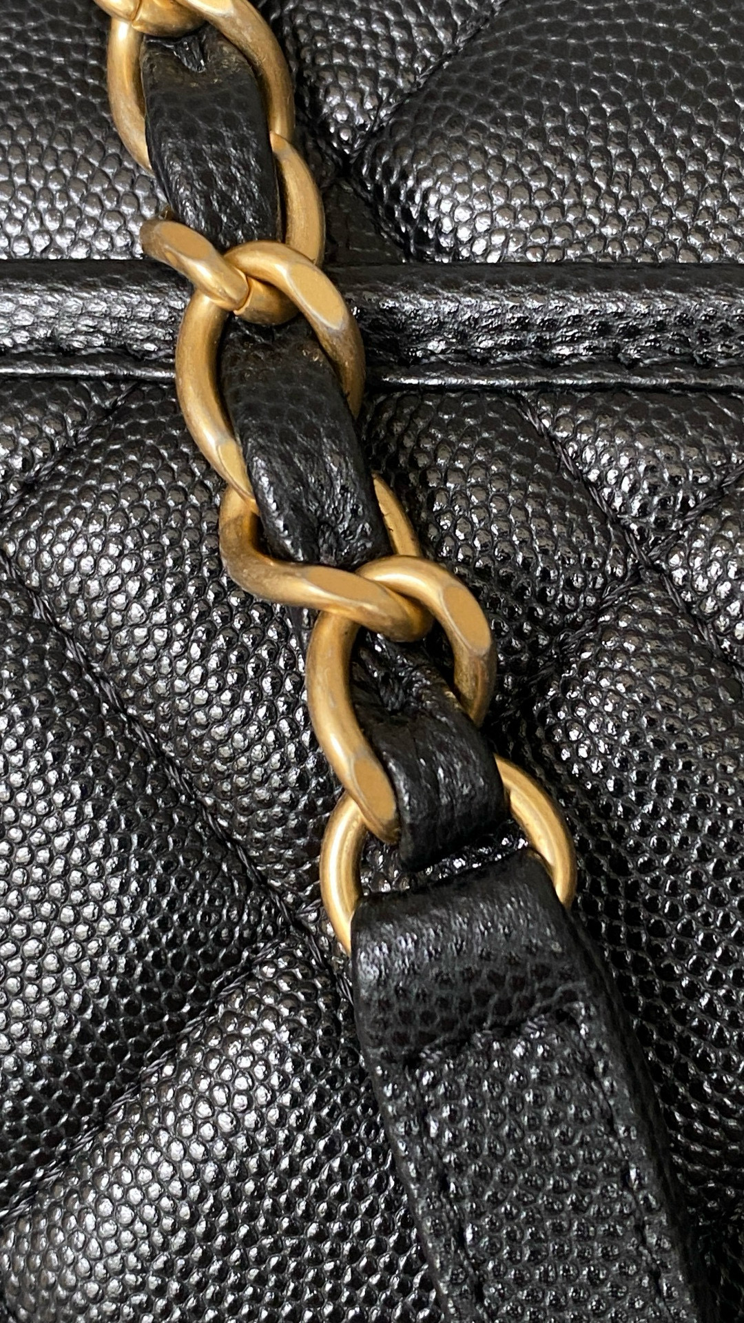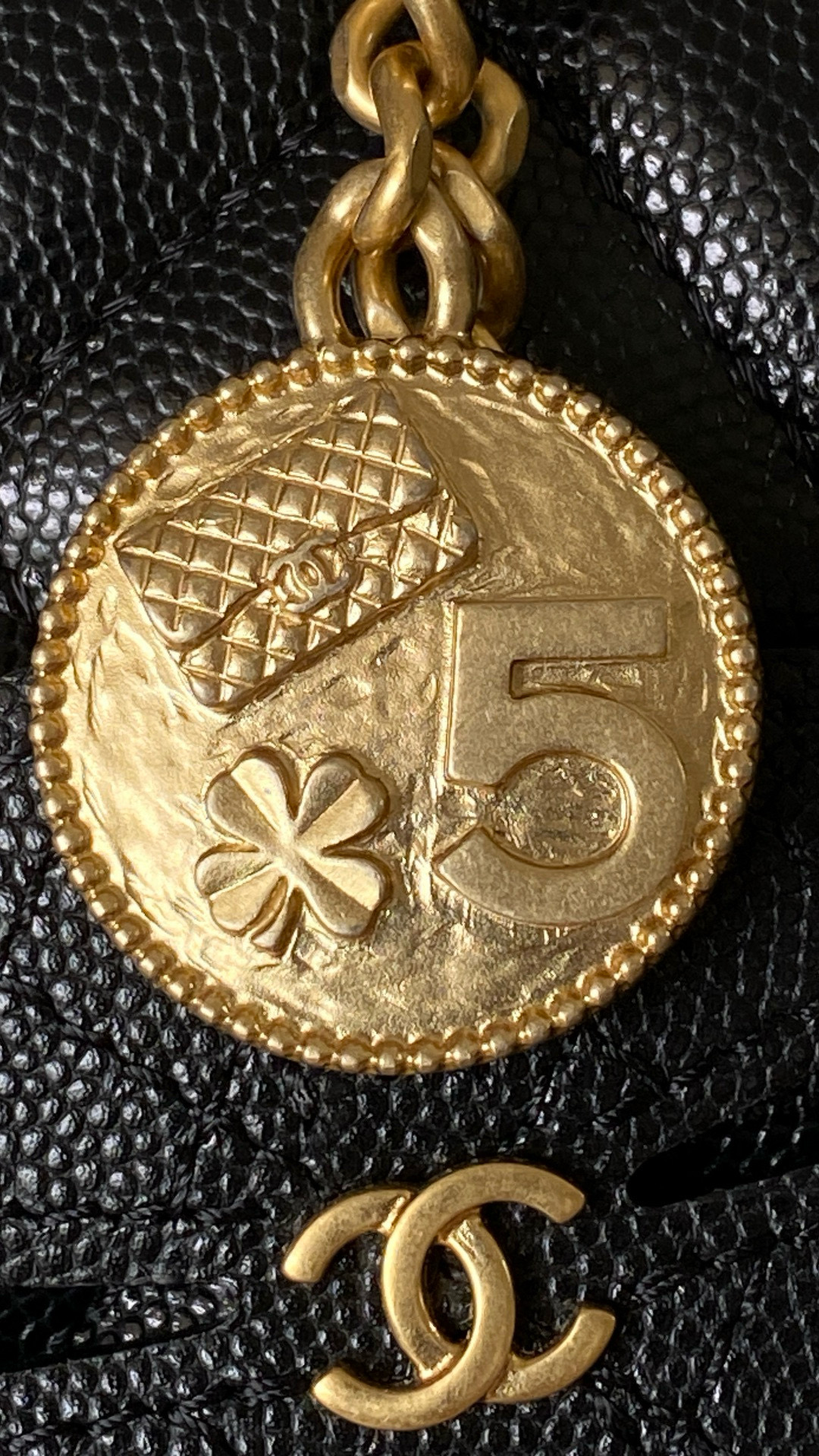 This Chanel handbag showcases the brand's exceptional craftsmanship and attention to detail. Crafted from premium leather, gold, in a stunning gold colorway, this piece combines timeless luxury with modern style.
