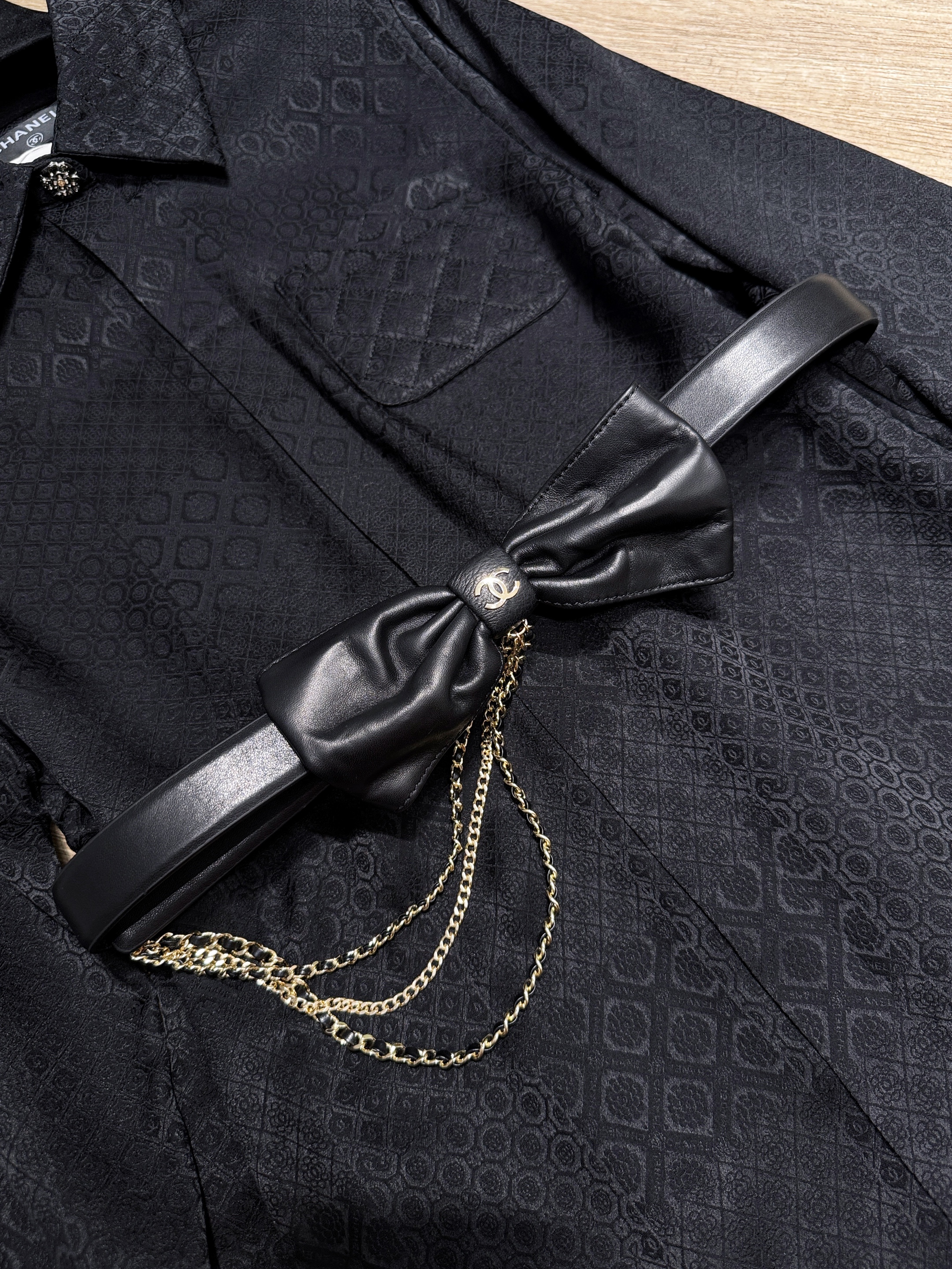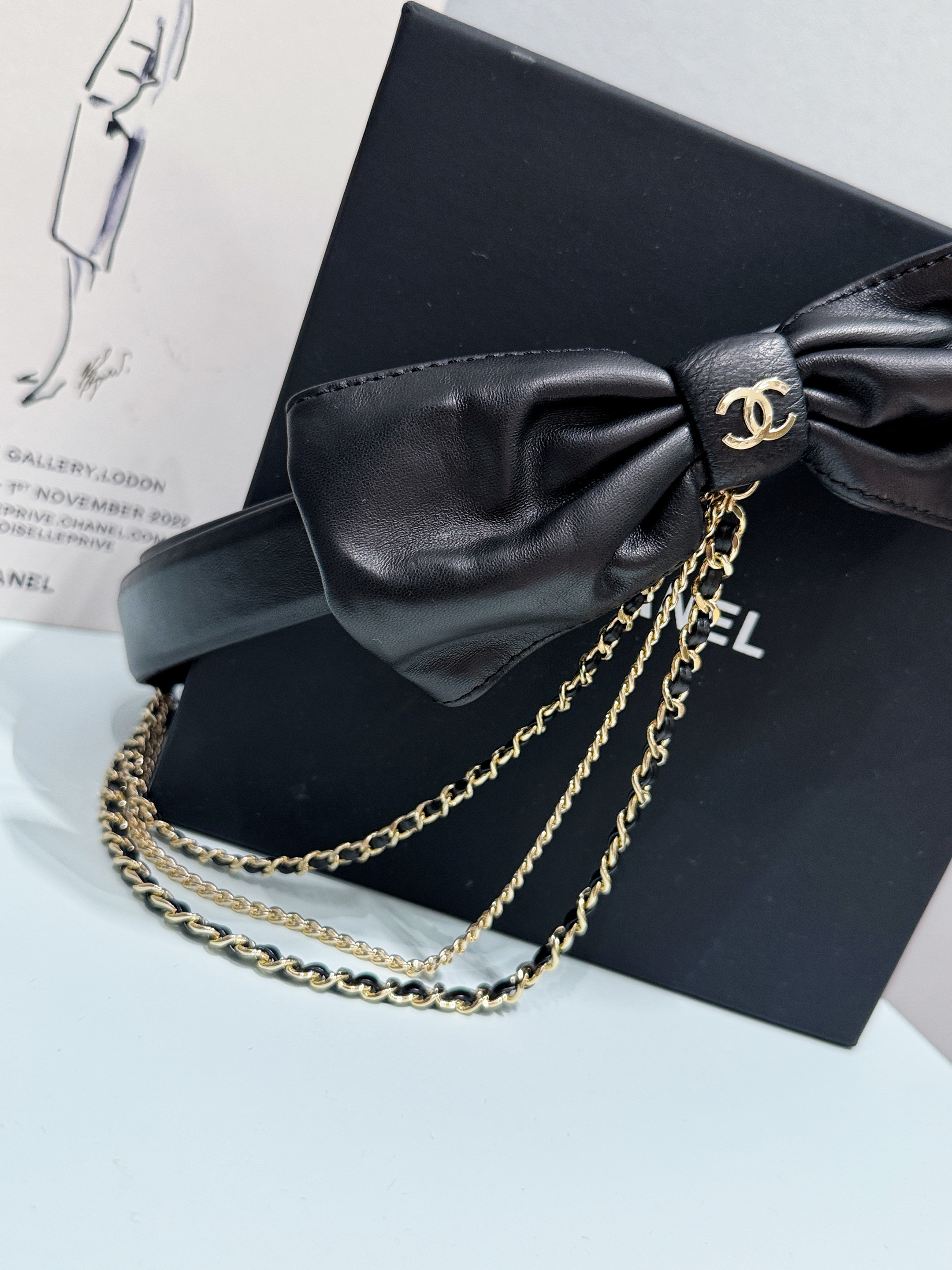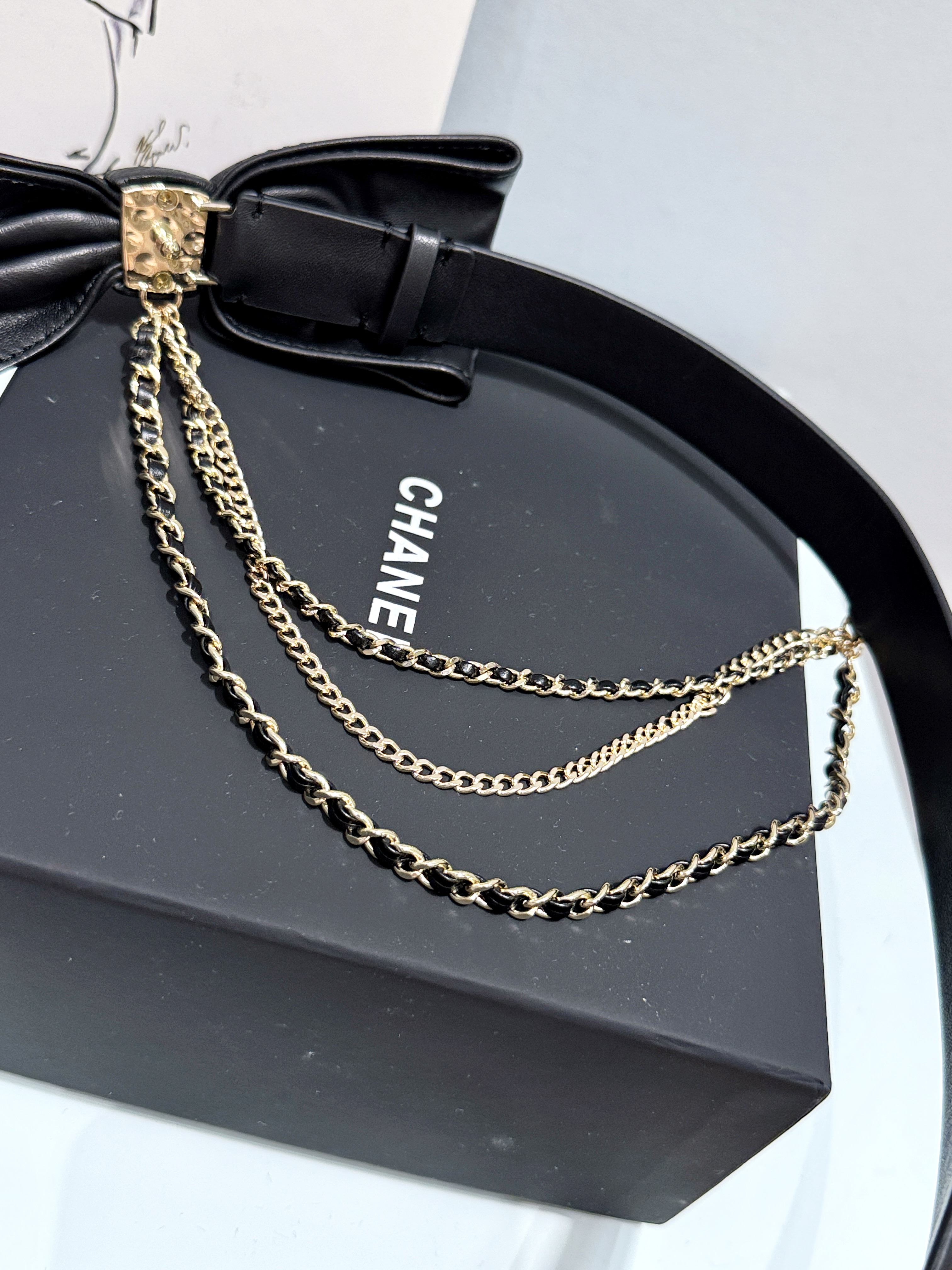 NIGO Chanel Women's Fashion Classic Solid Color Leather Bow Hand Woven Metal Chain Belt Accessories #nigo78923