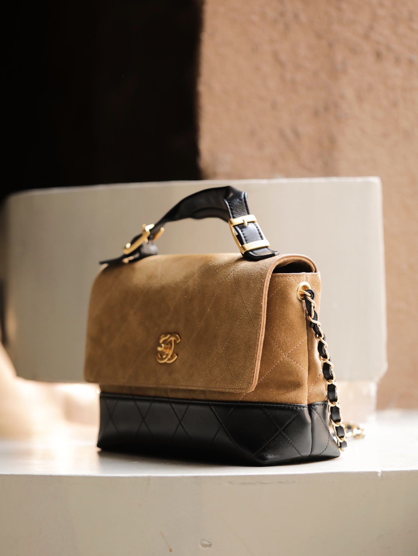 This Chanel handbag showcases the brand's exceptional craftsmanship and attention to detail. Crafted from premium suede, this piece combines timeless luxury with modern style.