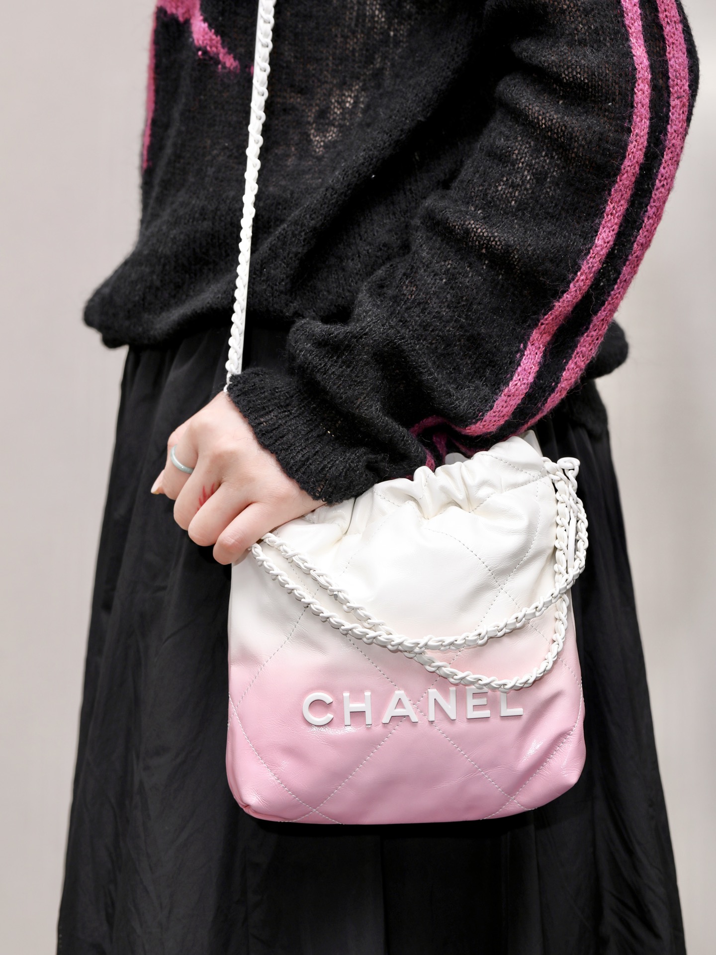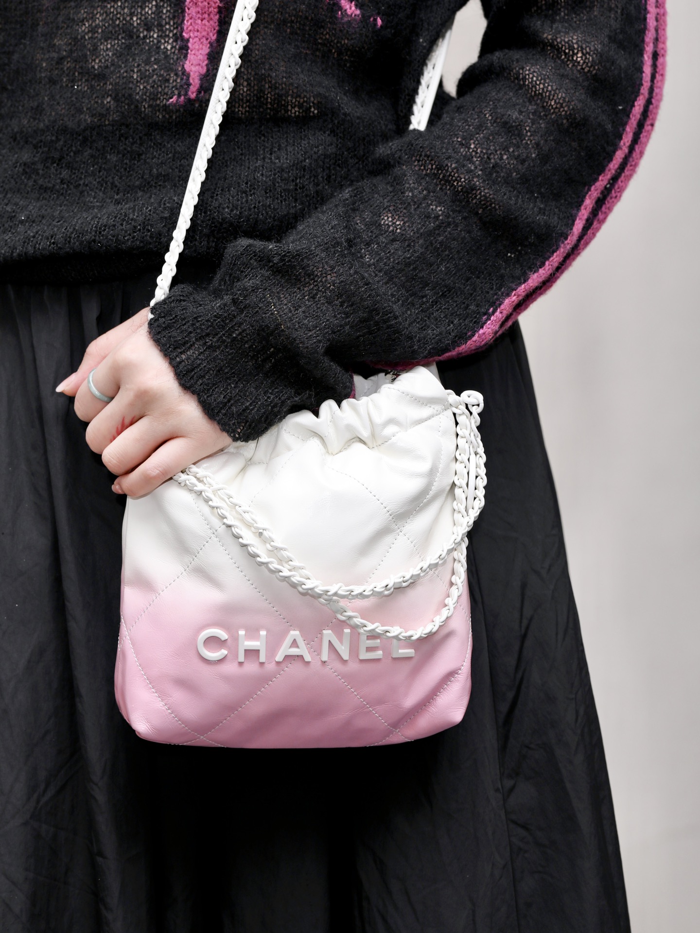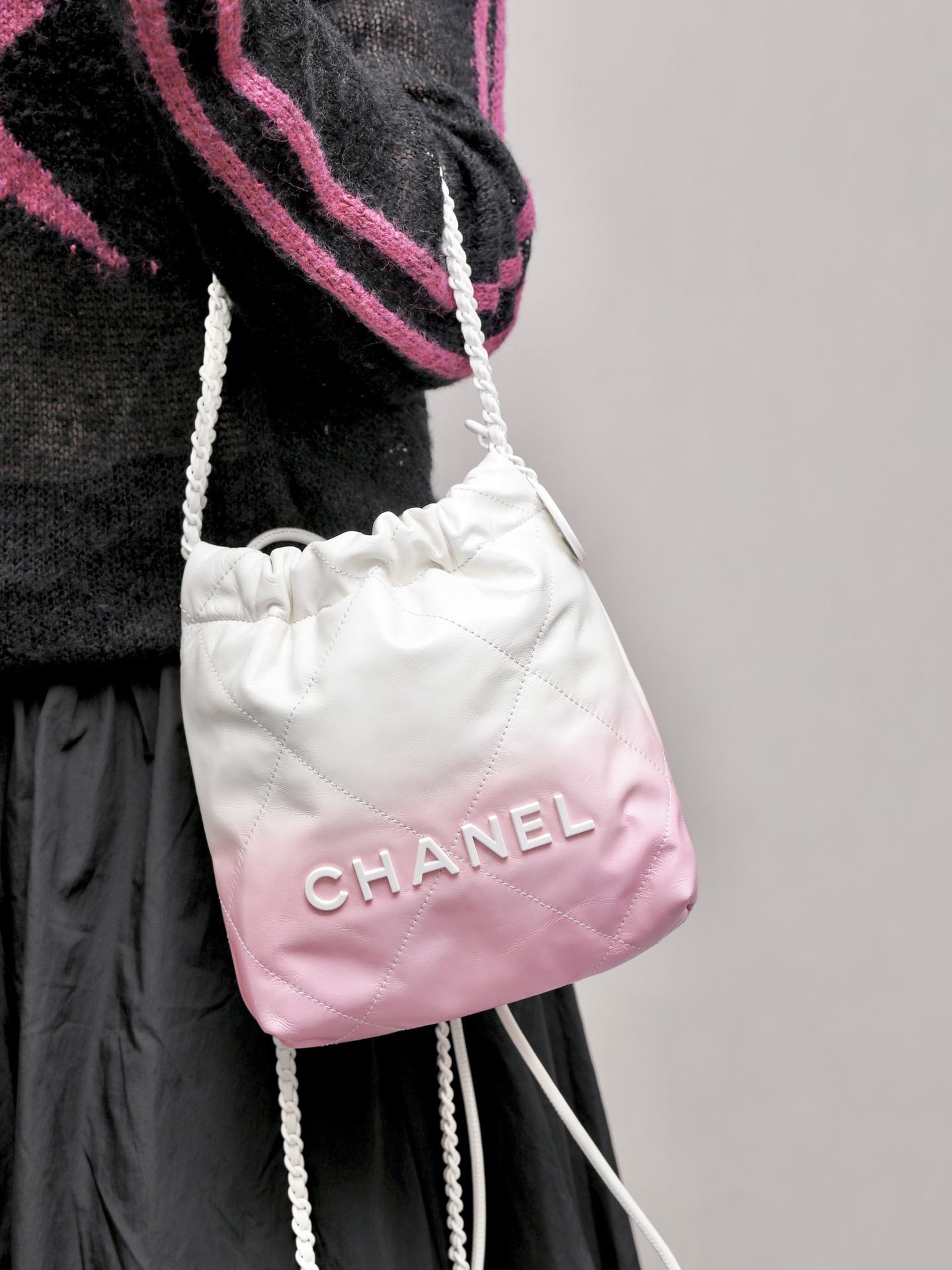 NIGO Chanel Women's Gradient Color Logo Drawstring Closure Calfskin Crossbody Shoulder Bag Bags #nigo99663