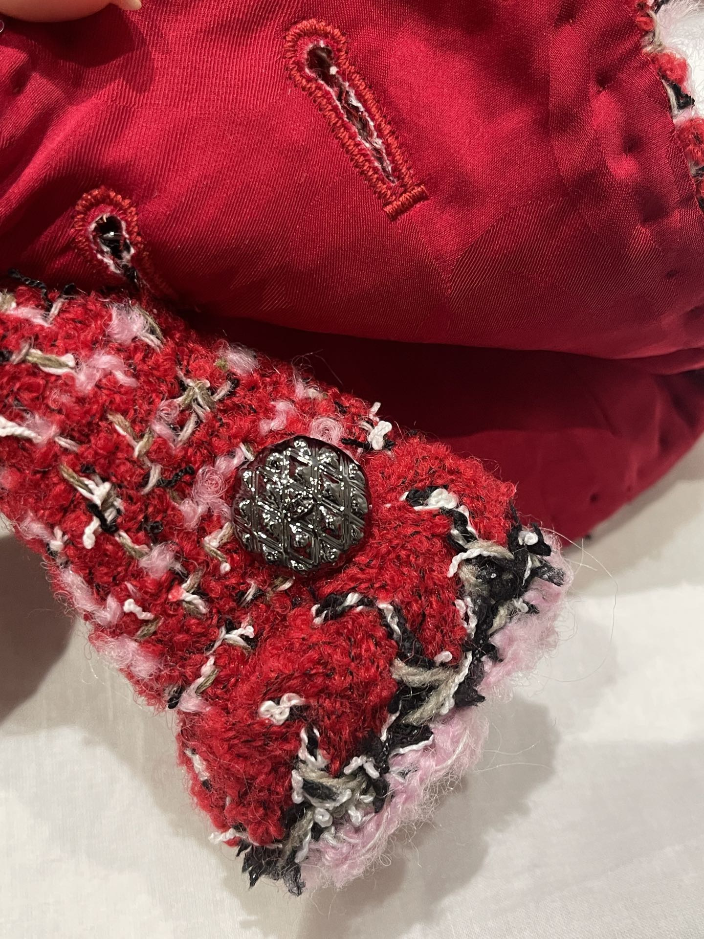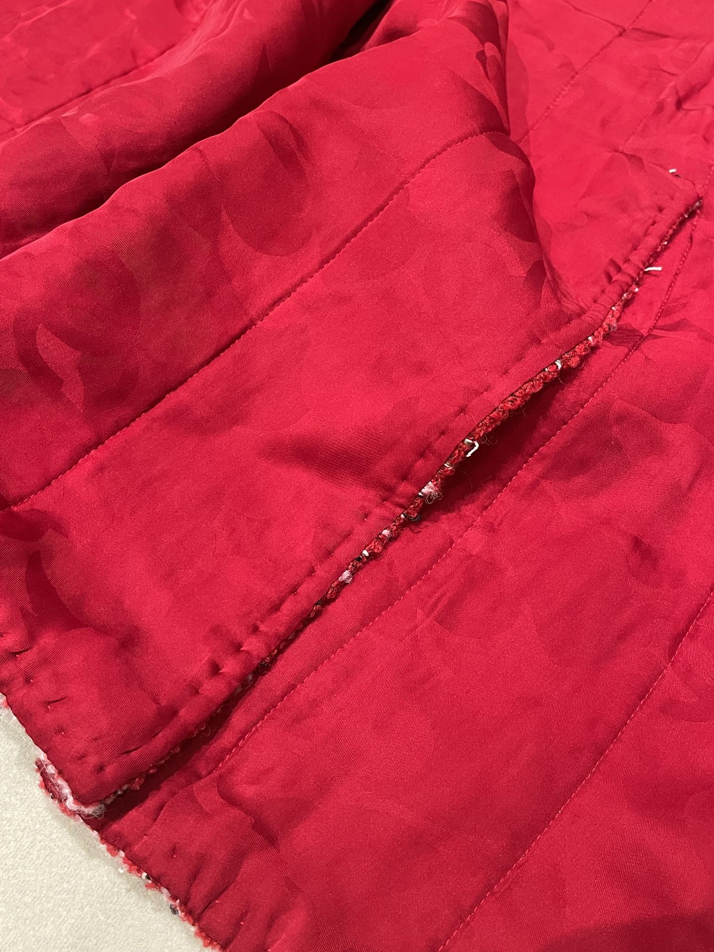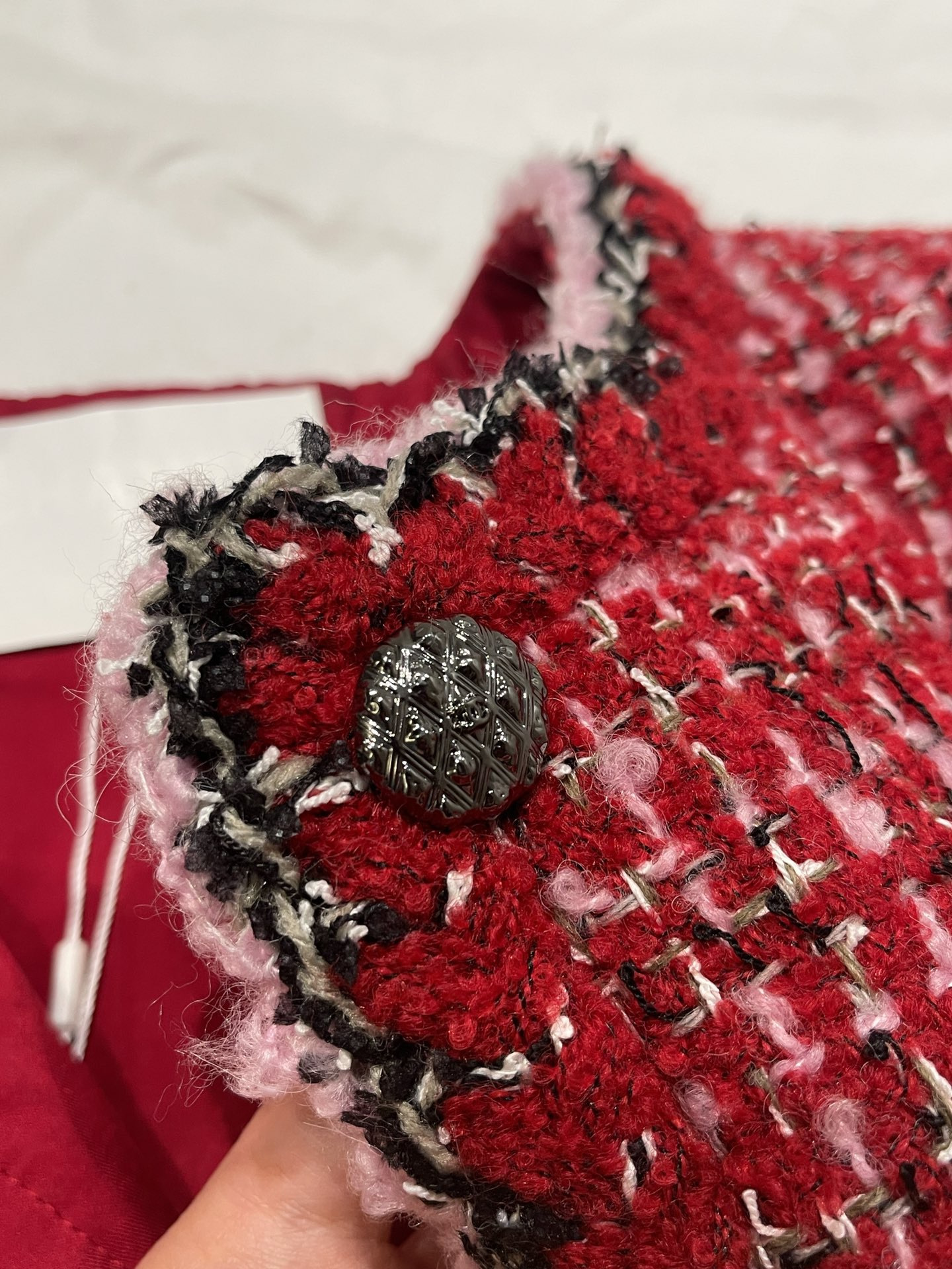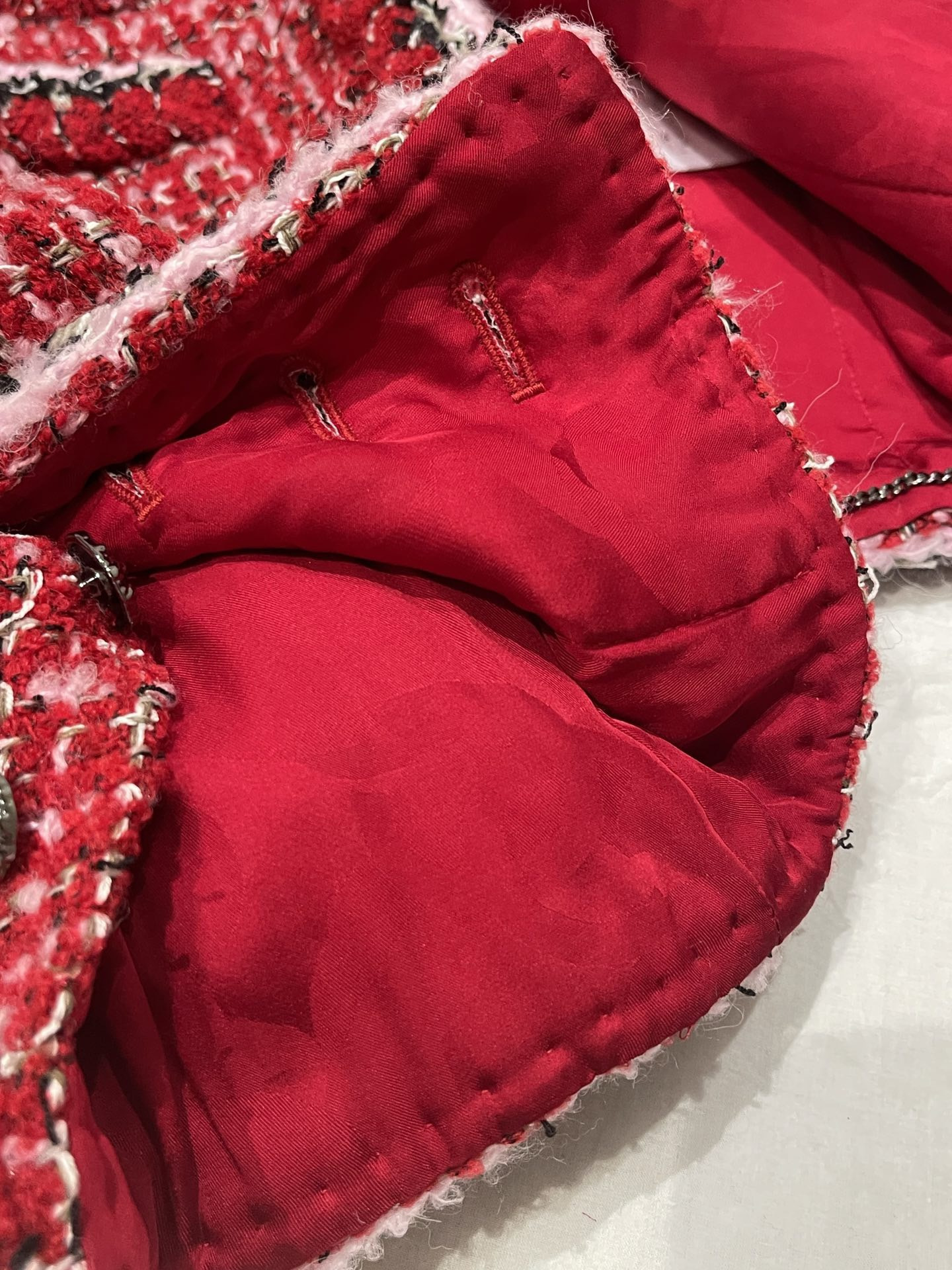 This Chanel clothing showcases the brand's exceptional craftsmanship and attention to detail. Crafted from premium tweed, in a stunning red colorway, this piece combines timeless luxury with modern style.