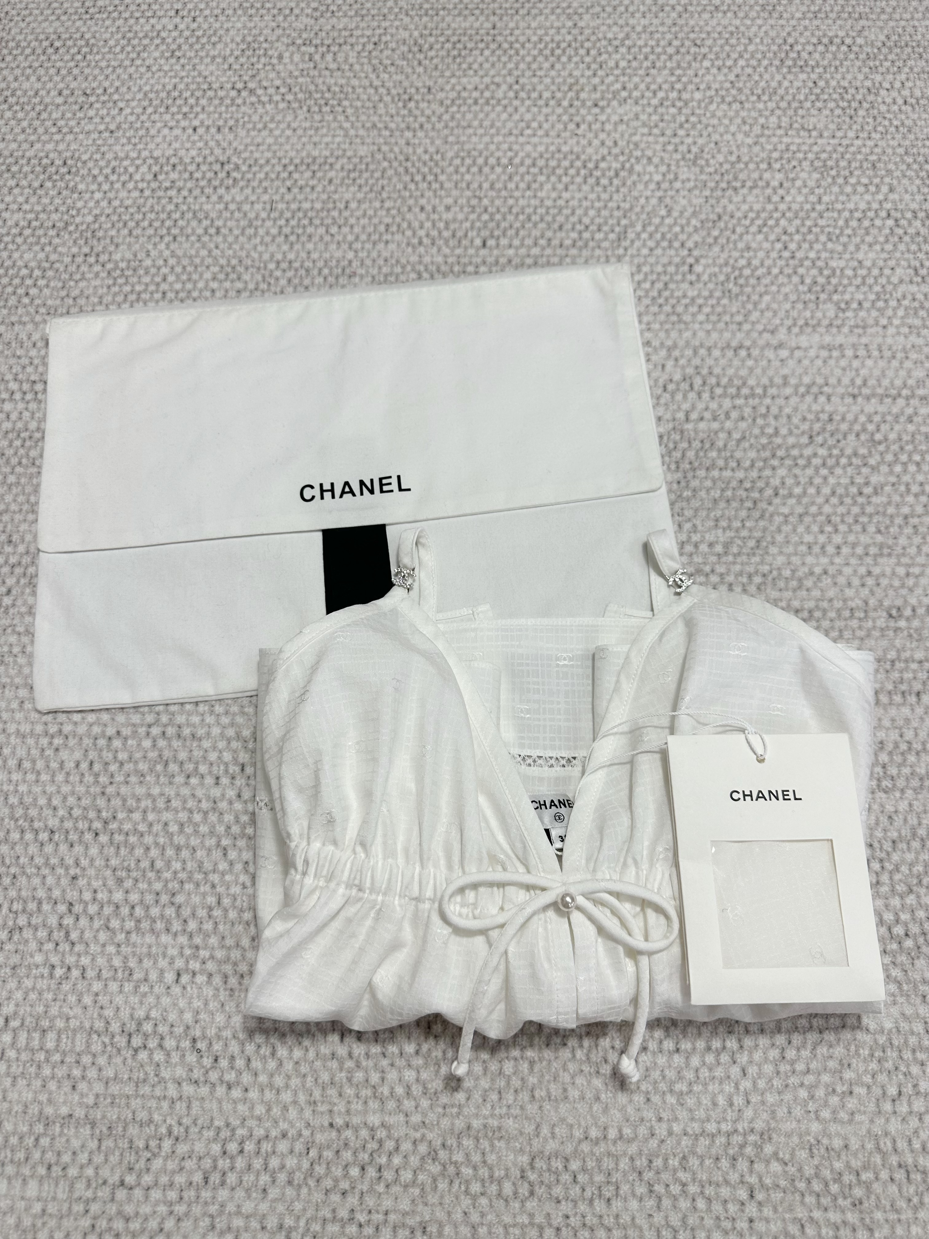 This Chanel clothing showcases the brand's exceptional craftsmanship and attention to detail. Crafted from premium silk, cotton, this piece combines timeless luxury with modern style.