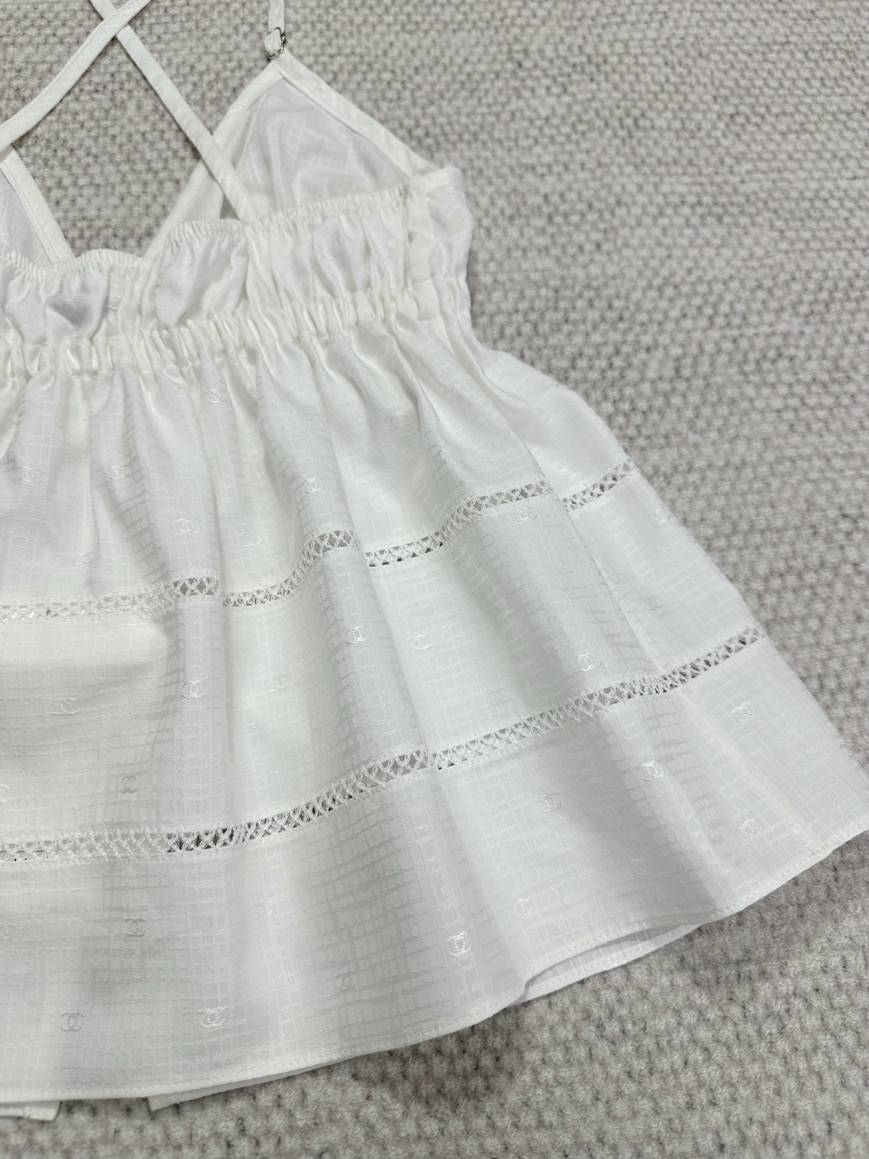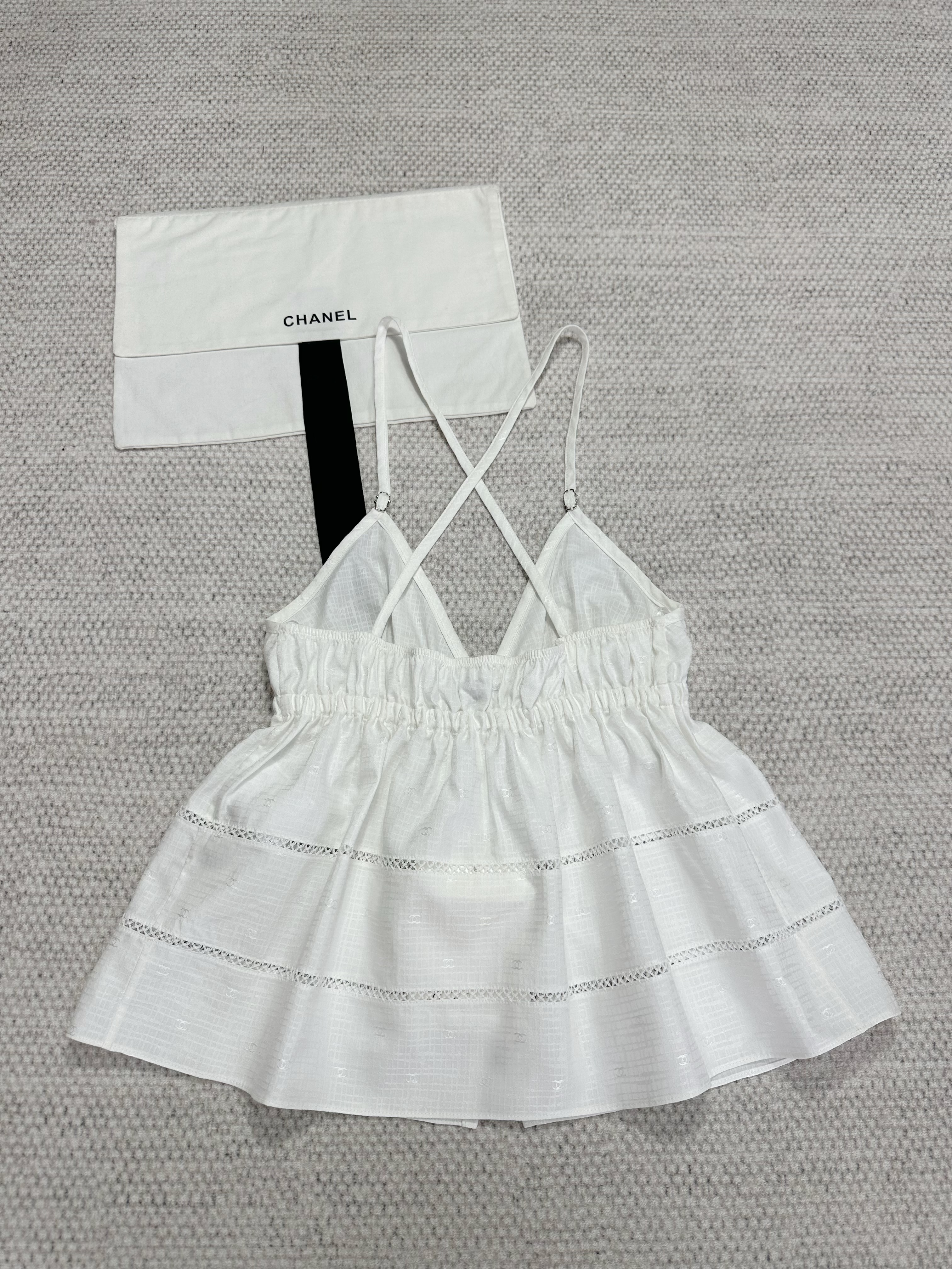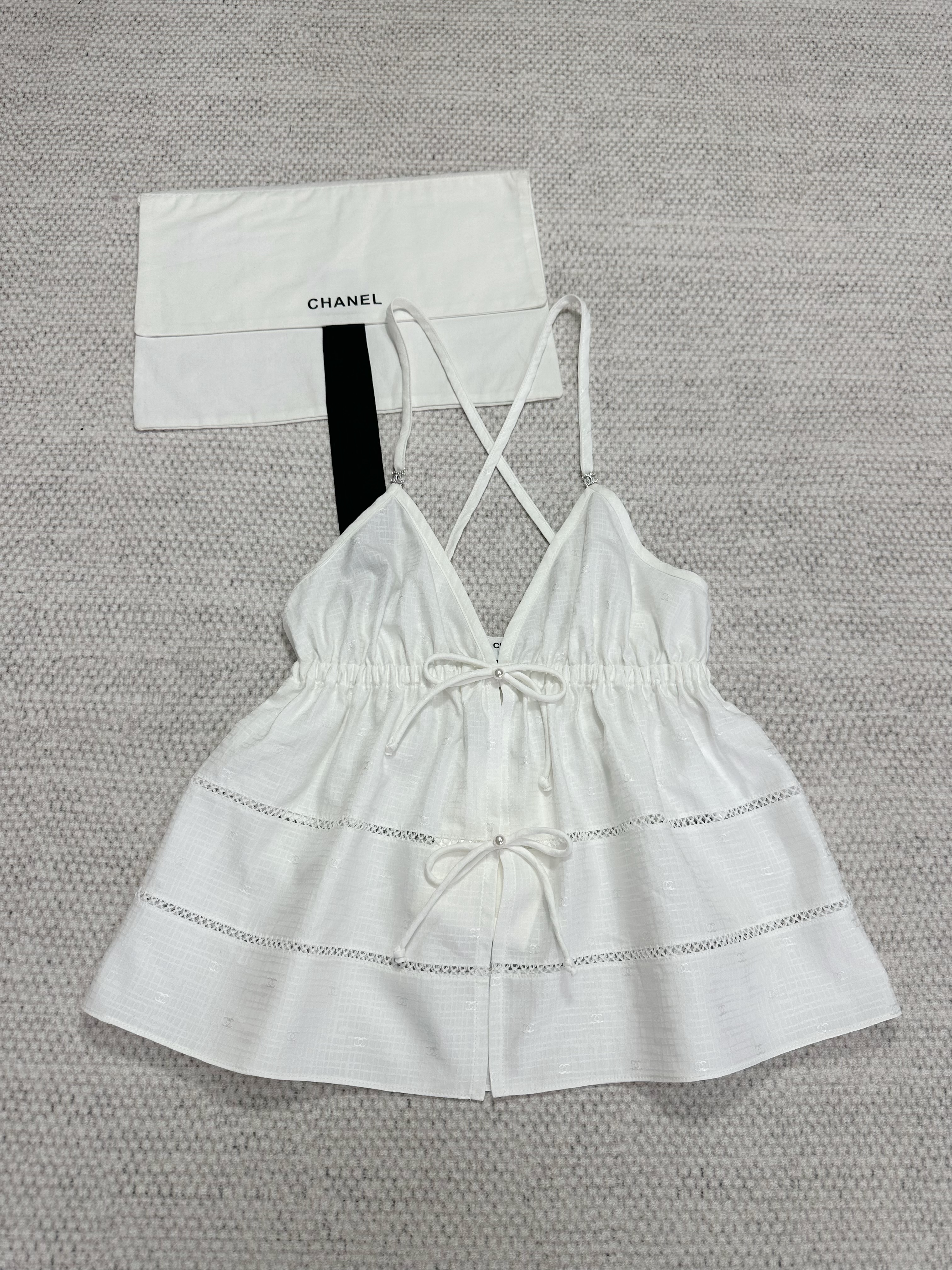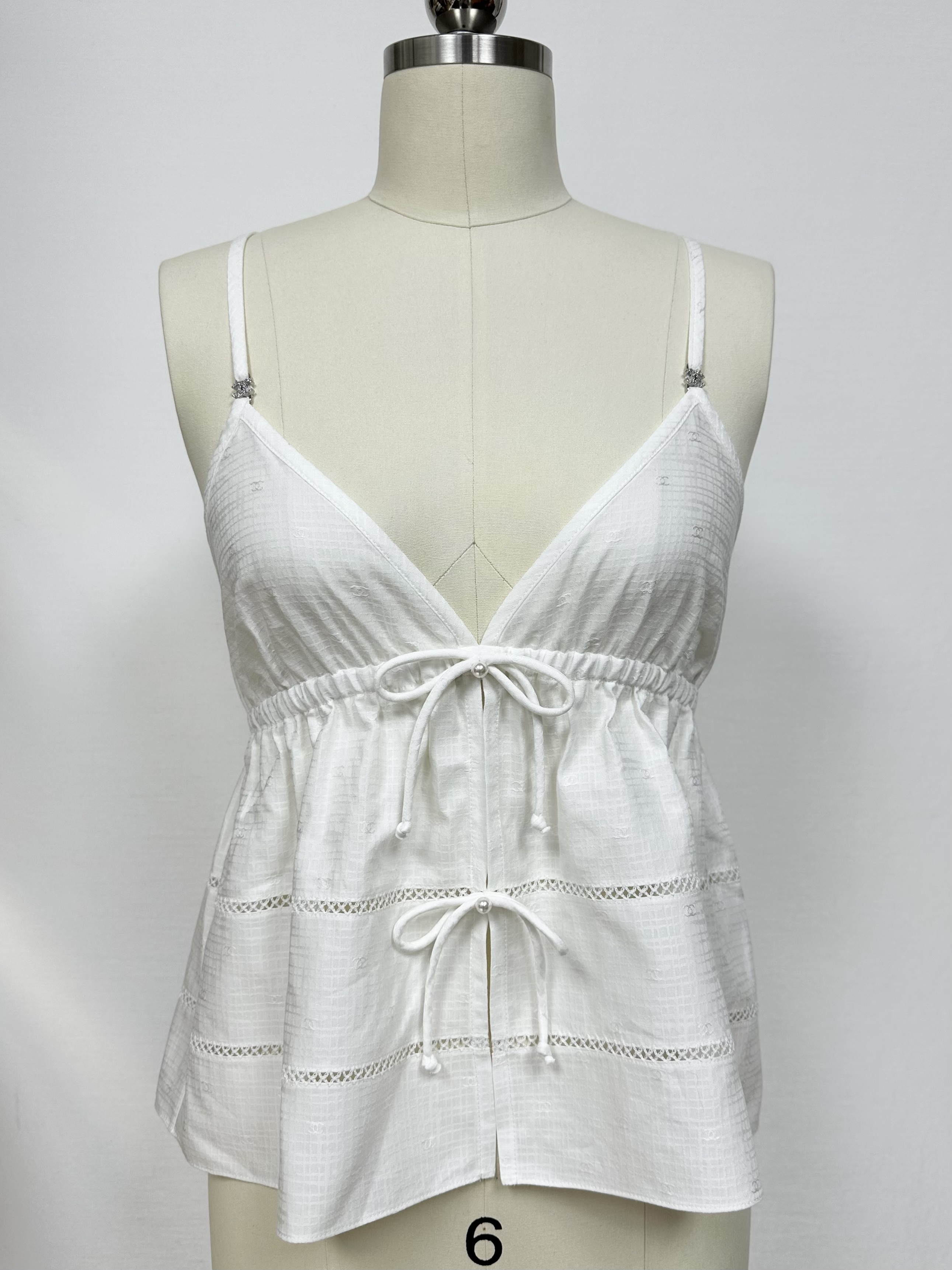NIGO Chanel Women's Logo Jacquard Hollowed Out Solid Color Silk Cotton Summer Sleeveless Lace-Up Camisole Top Vest Ngvp #nigo1359