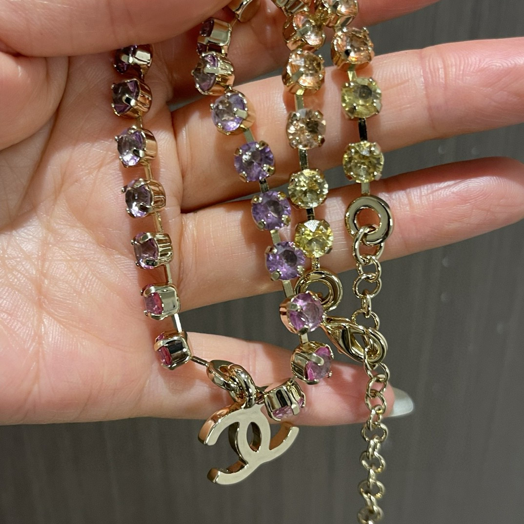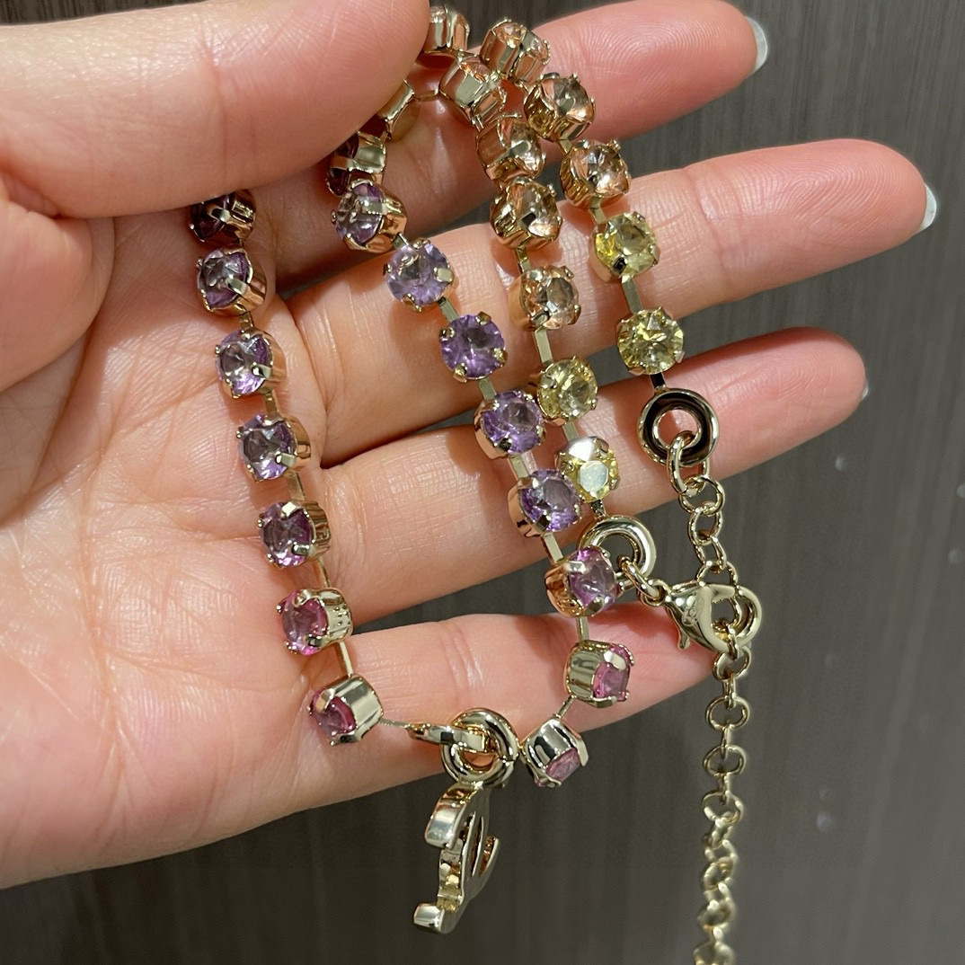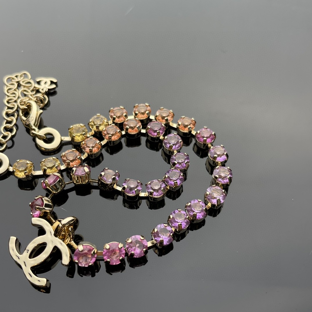 NIGO Chanel Women's Rainbow Gradient Color Double C Decoration Rhinestone Metal Necklace Ngvp #nigo1393