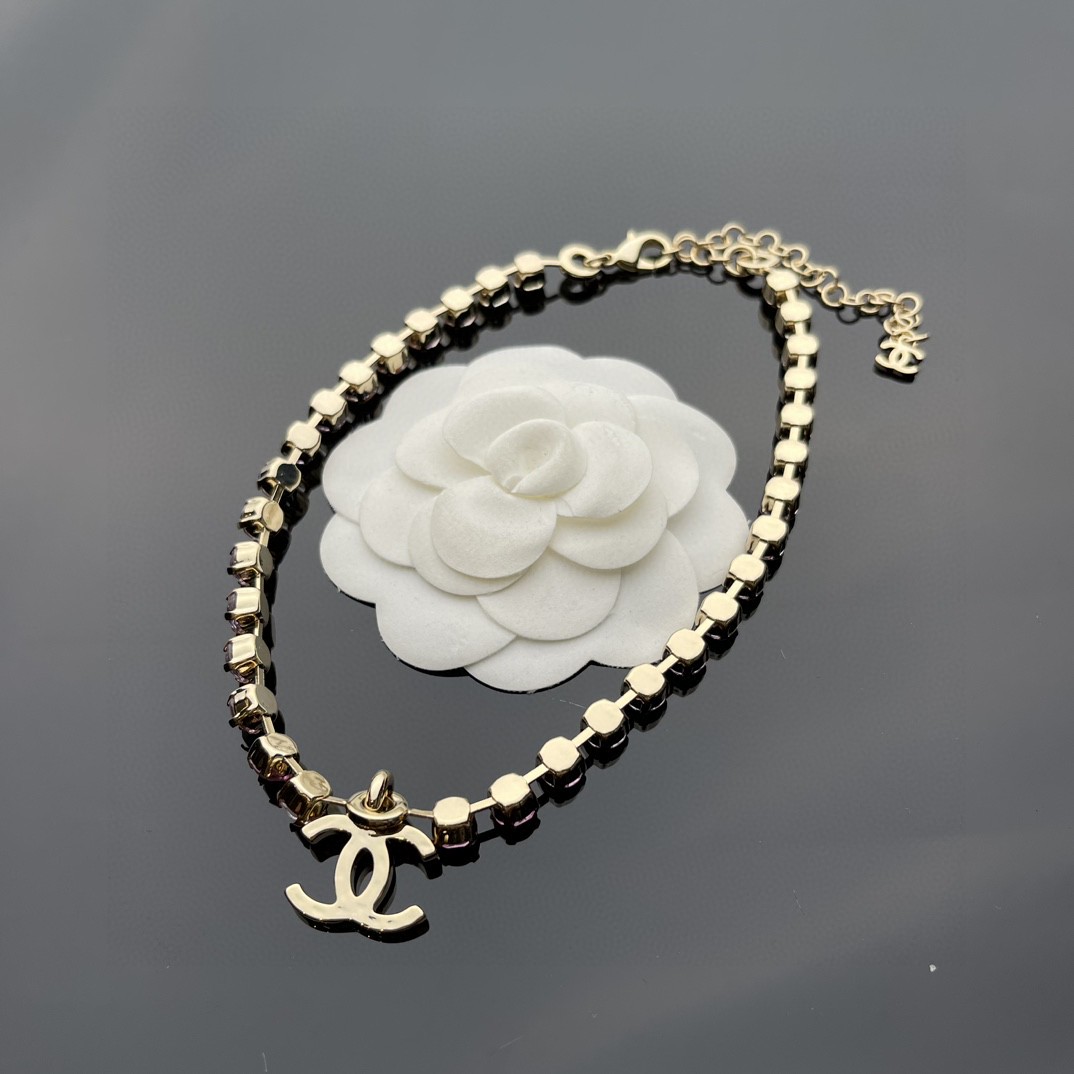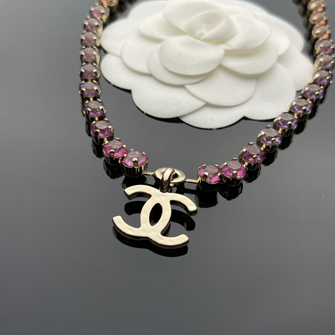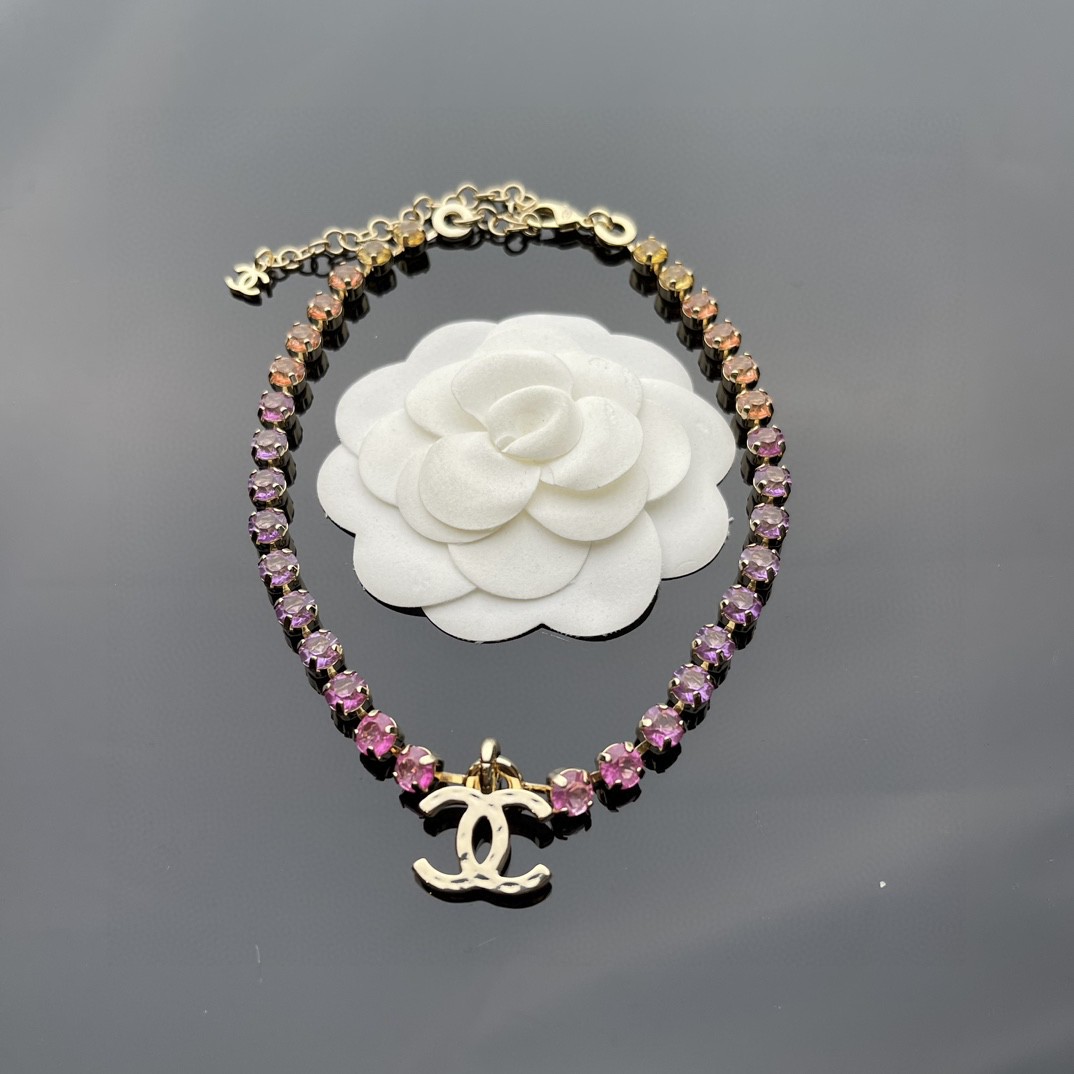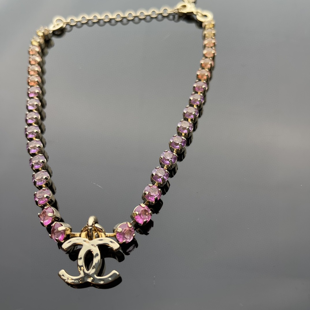 NIGO Chanel Women's Rainbow Gradient Color Double C Decoration Rhinestone Metal Necklace Ngvp #nigo1393
