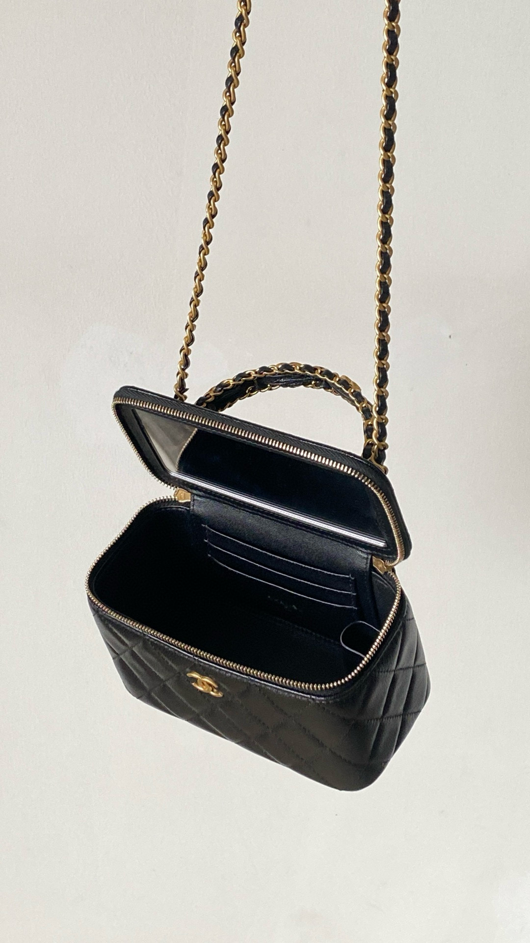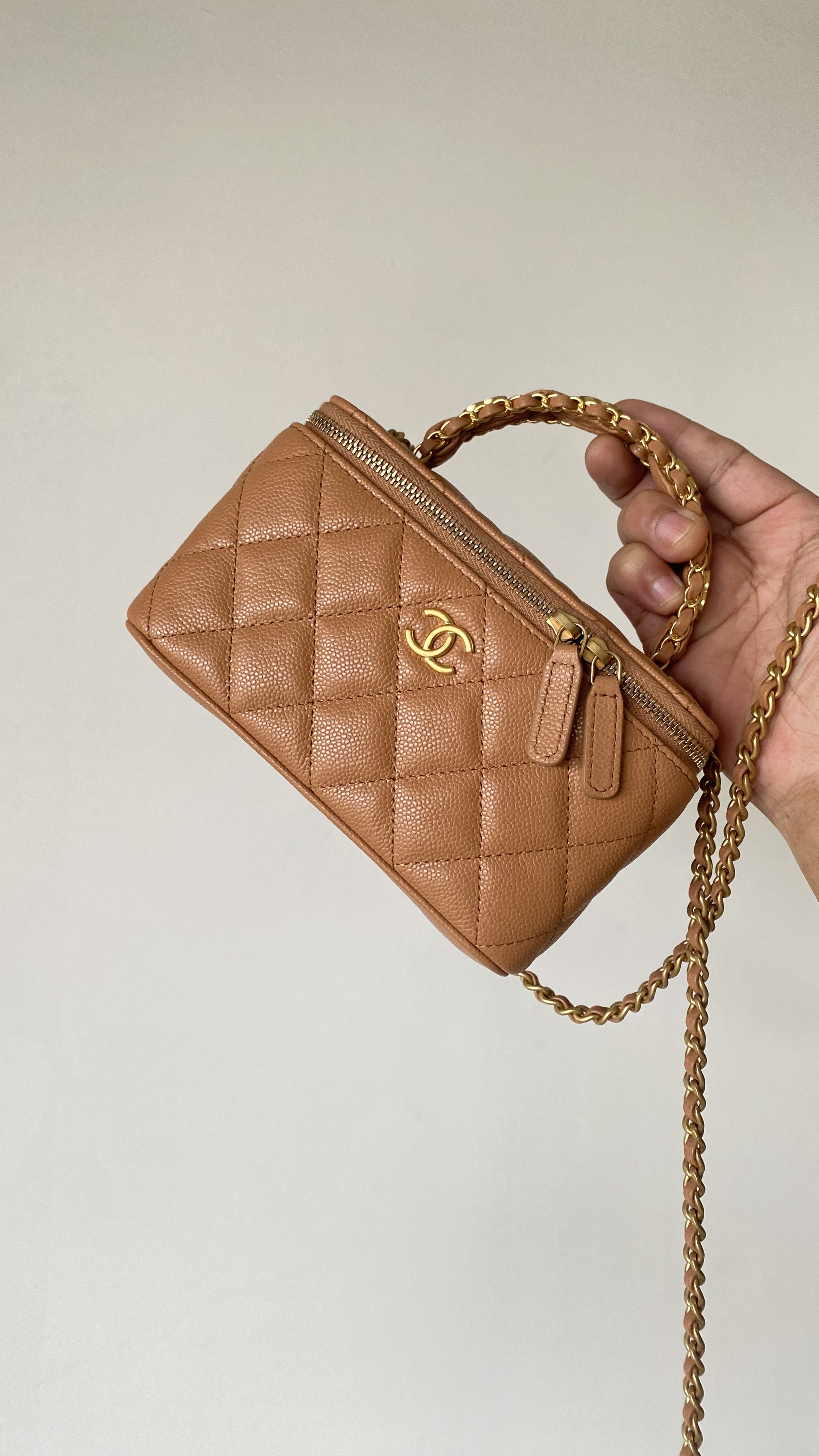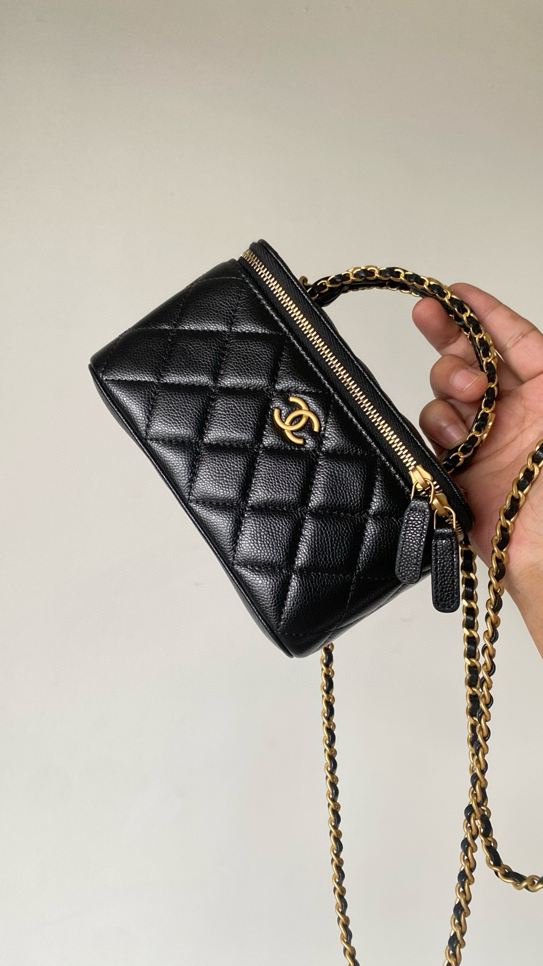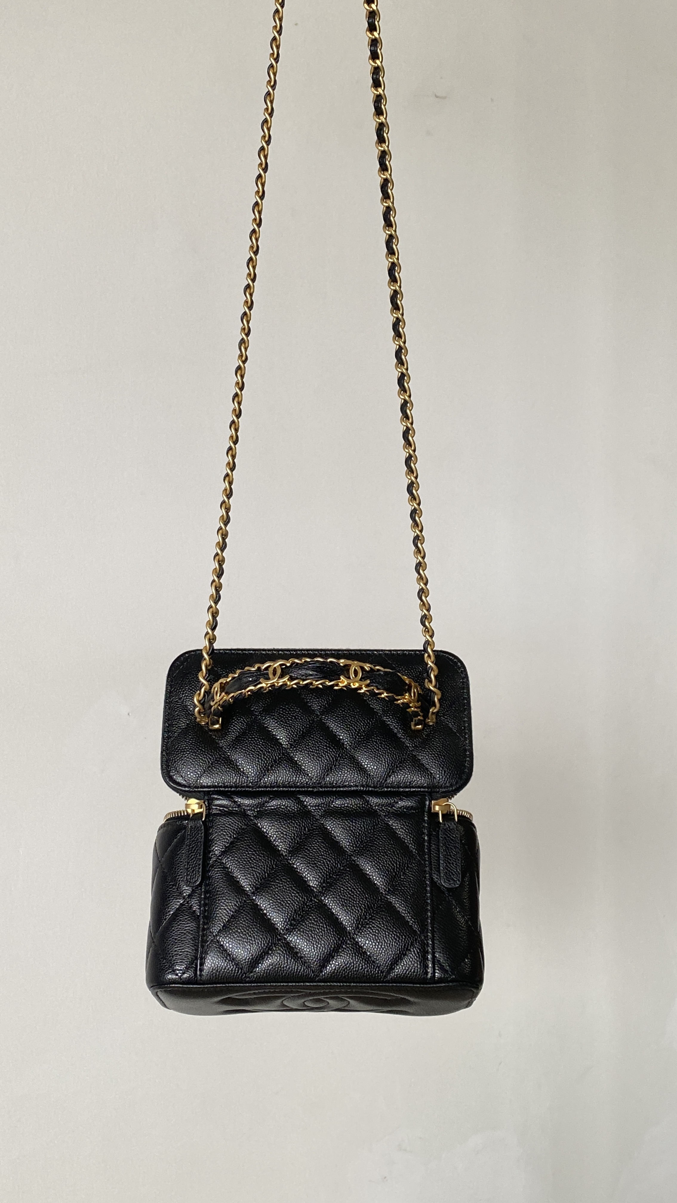 NIGO Chanel Women's Retro Vanity Series Solid Color Double C Adjustable Buckle Plaid Leather Shoulder Crossbody Casual Cosmetic Bag Bags #nigo77895