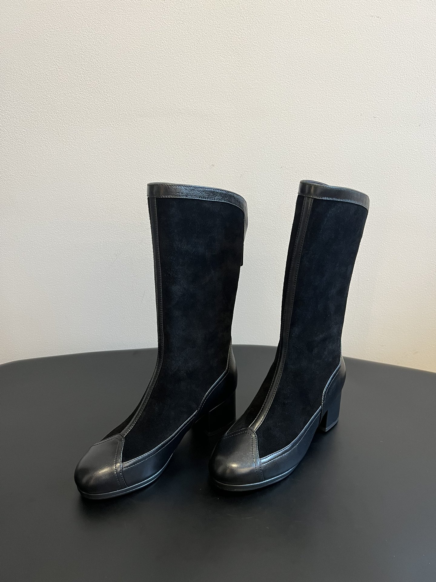 NIGO Chanel Women's Sheepskin Calfskin Round Toe Zipper High Top Boots Autumn and Winter Solid Color Chunky Heel Casual Shoes Ngvp #nigo2138