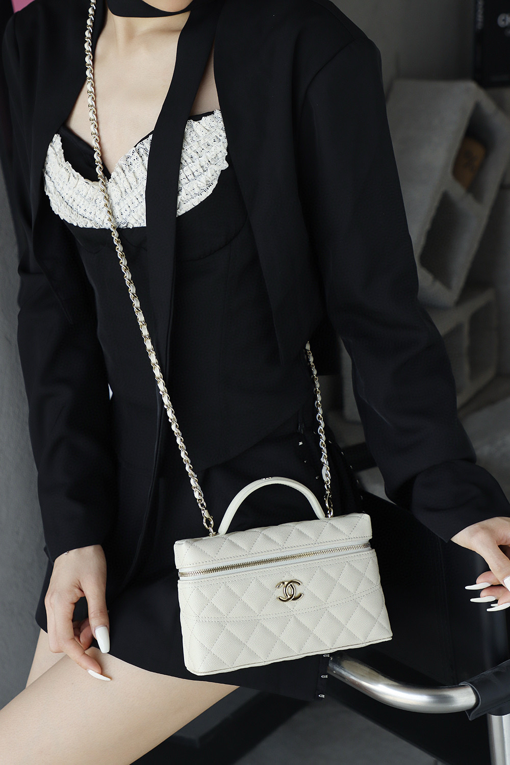 This Chanel handbag showcases the brand's exceptional craftsmanship and attention to detail. Crafted from premium lambskin, this piece combines timeless luxury with modern style.