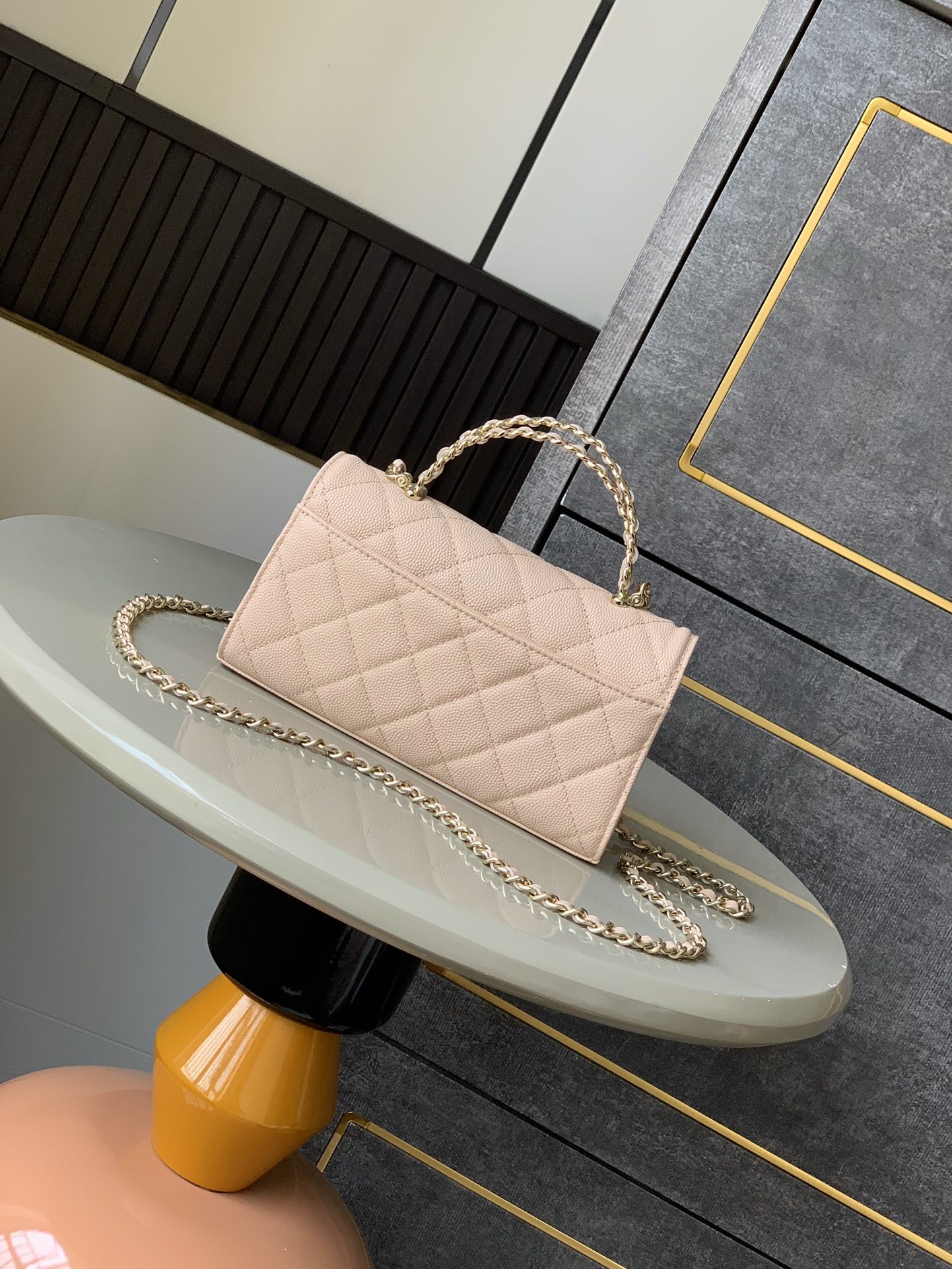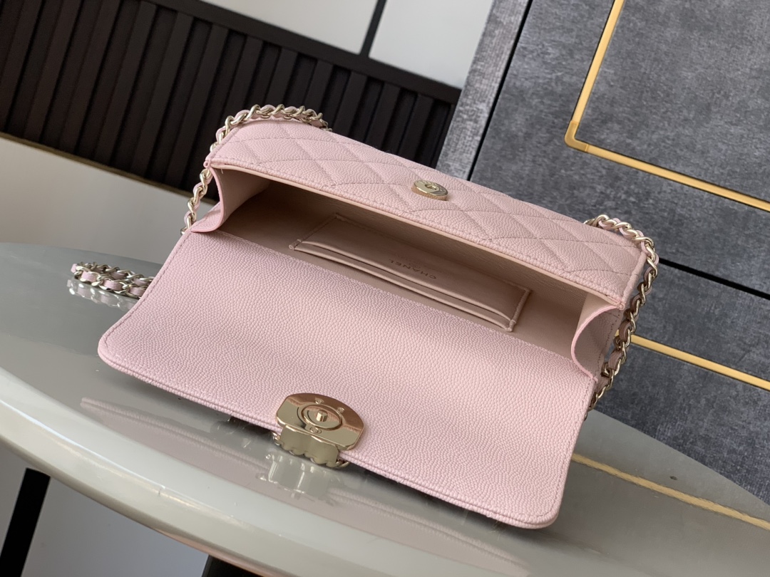 This Chanel handbag showcases the brand's exceptional craftsmanship and attention to detail. Crafted from premium leather, this piece combines timeless luxury with modern style.