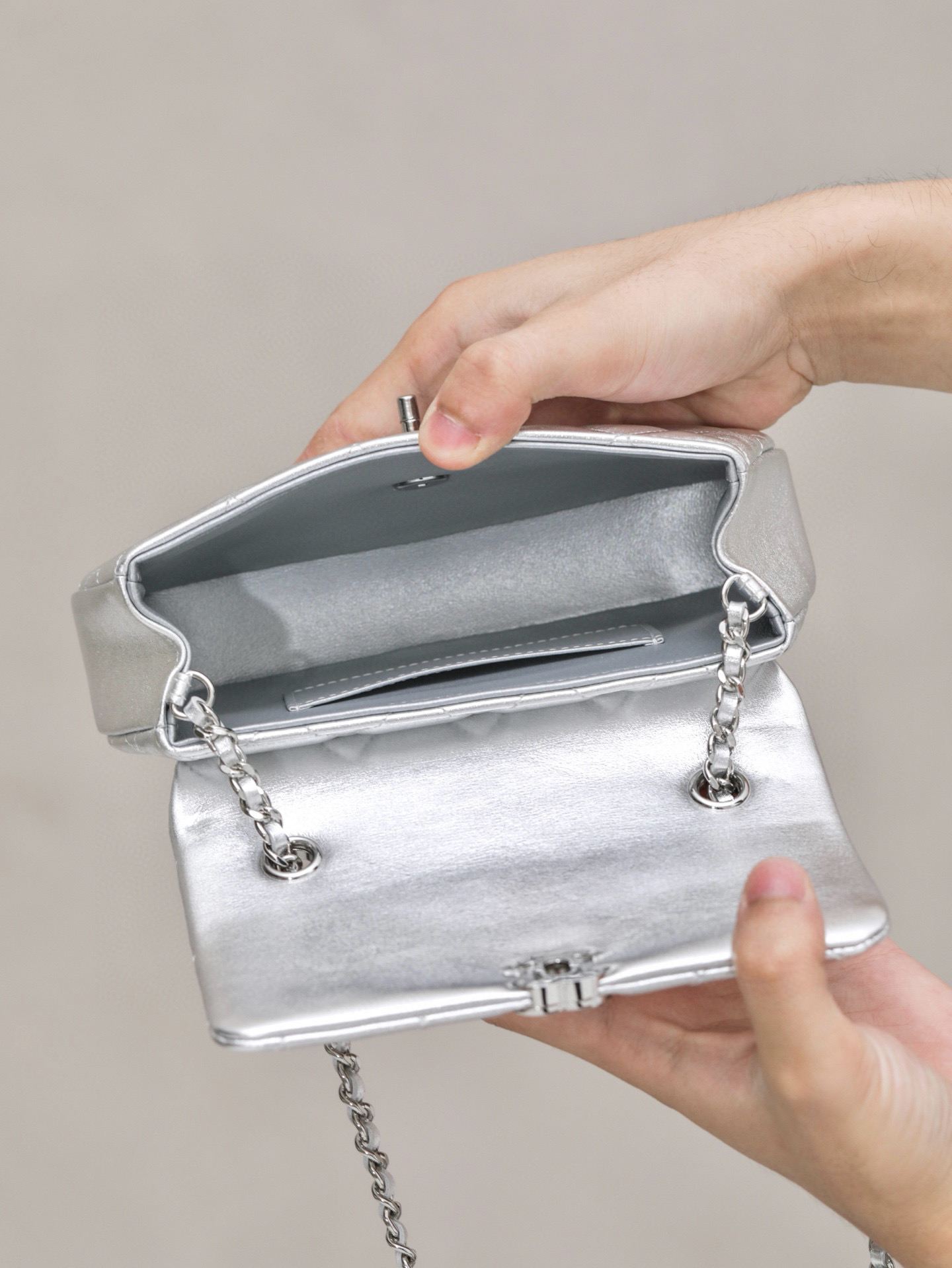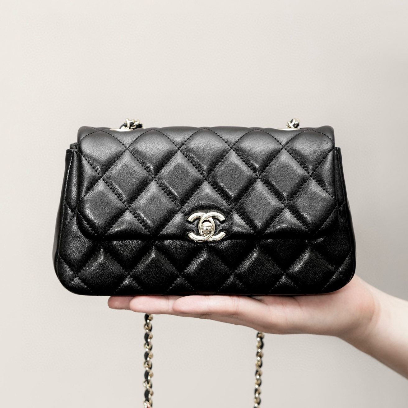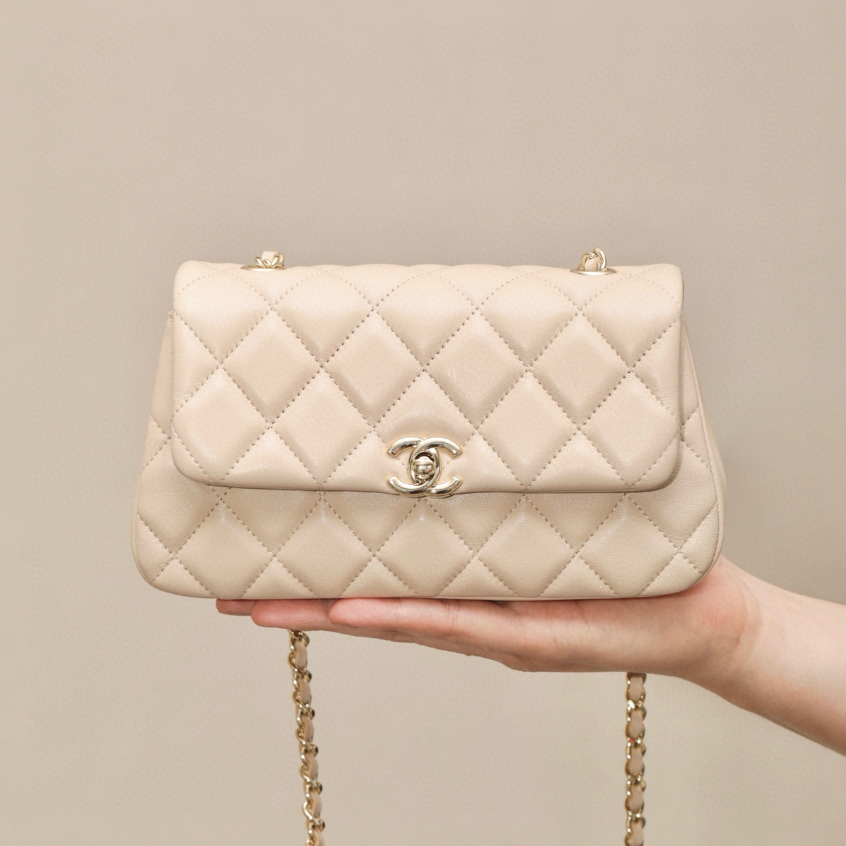 This Chanel handbag showcases the brand's exceptional craftsmanship and attention to detail. Crafted from premium sheepskin, this piece combines timeless luxury with modern style.