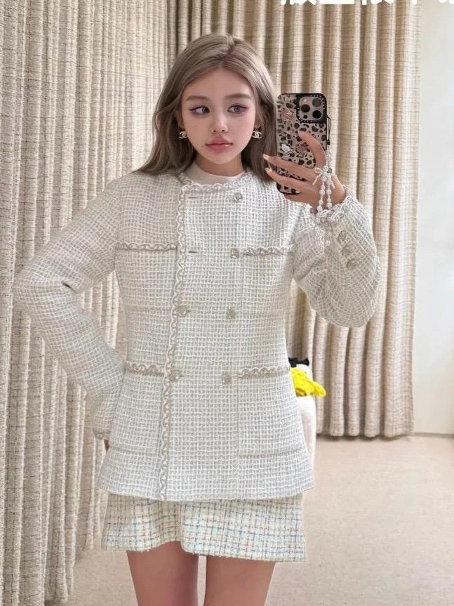 NIGO Chanel Women's Spring And Autumn Round Neck Cotton Double Breasted Multi-Pocket Long Sleeve Solid Color Tweed Jacket Ngvp #nigo9966