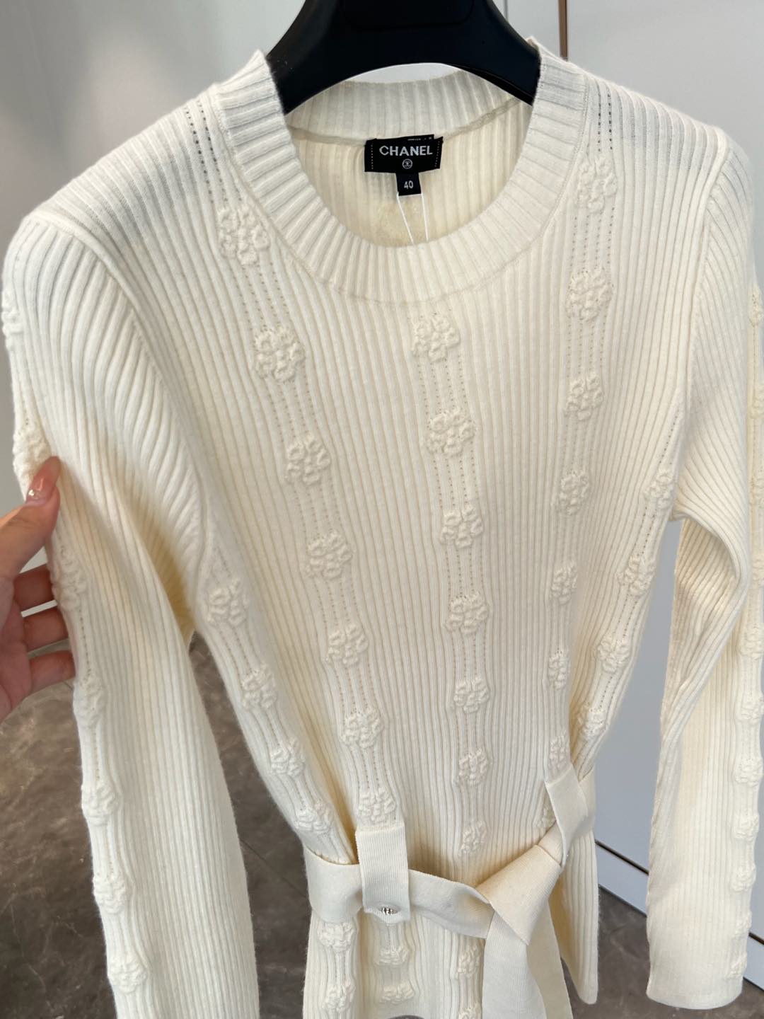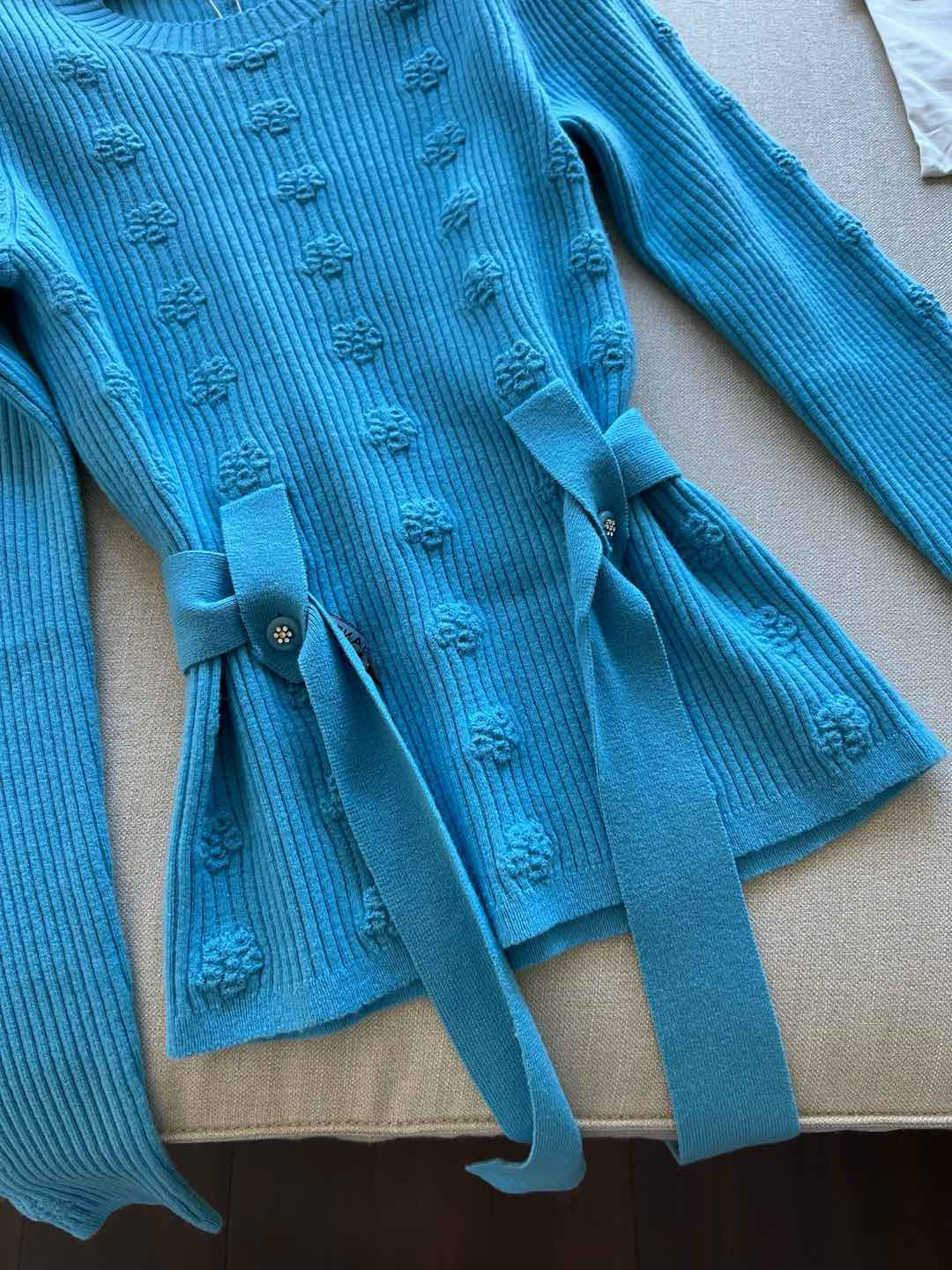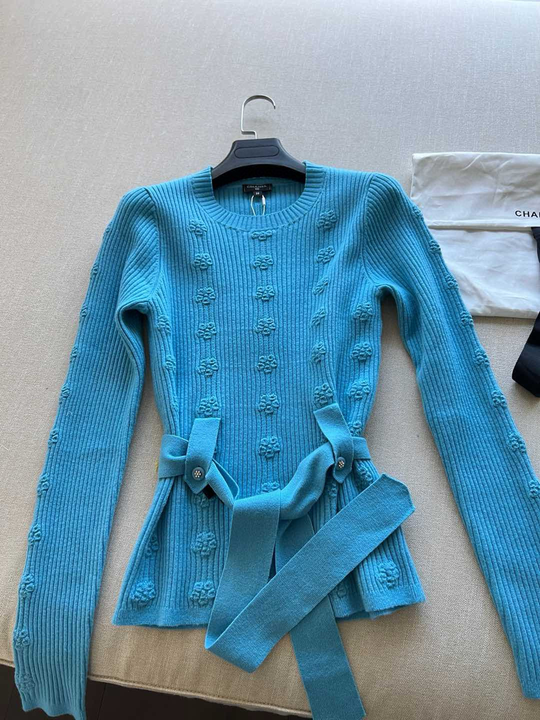 NIGO Chanel Women's Spring and Autumn Solid Color Double C Knitted Belt Sweater #nigo74816