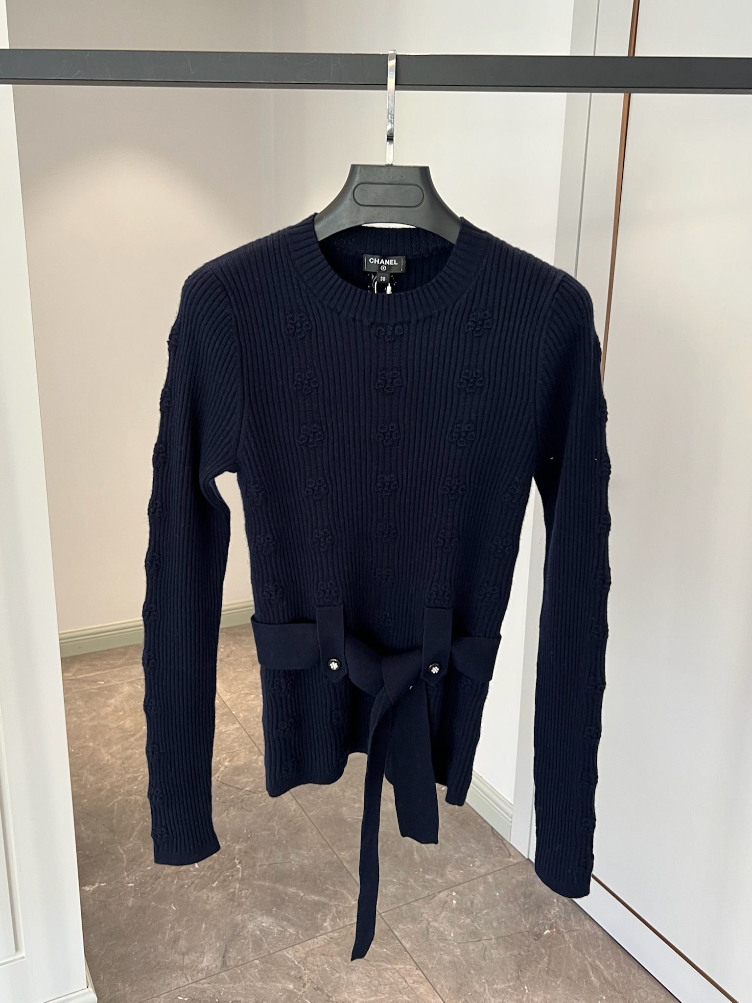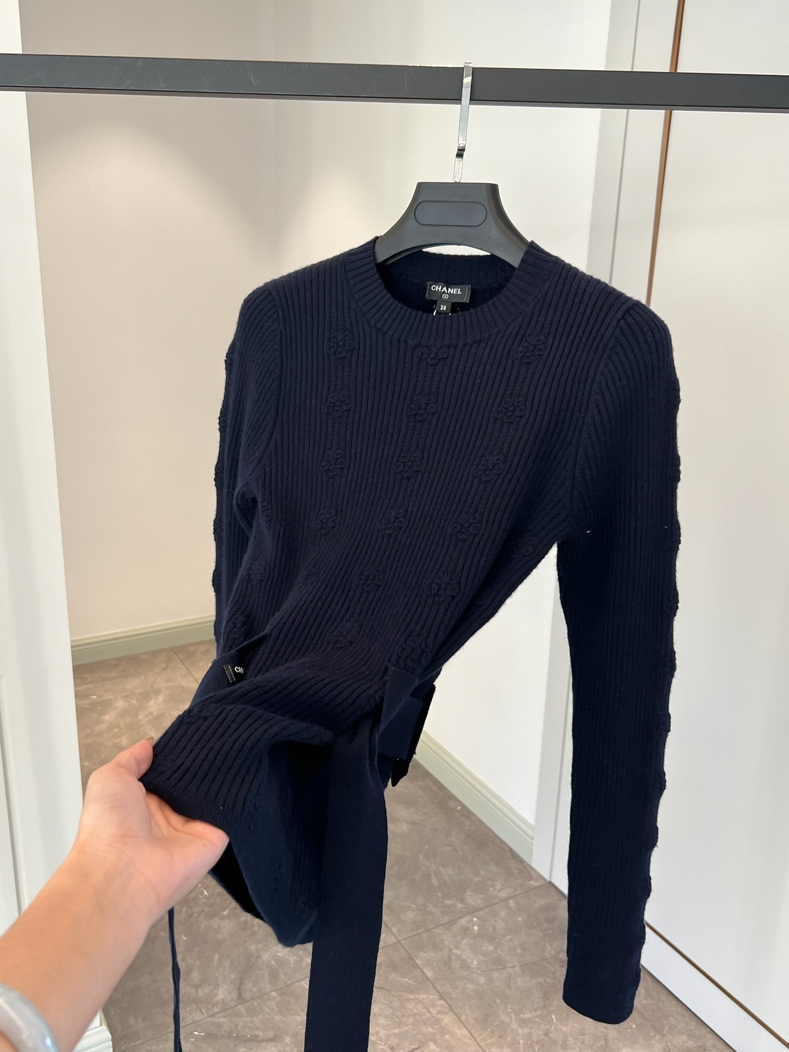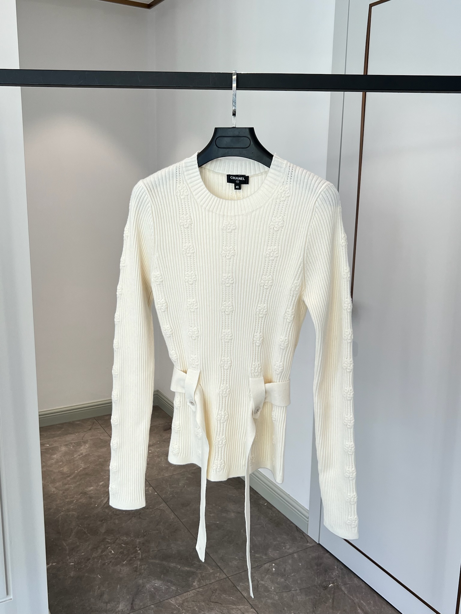 NIGO Chanel Women's Spring and Autumn Solid Color Double C Knitted Belt Sweater #nigo74816
