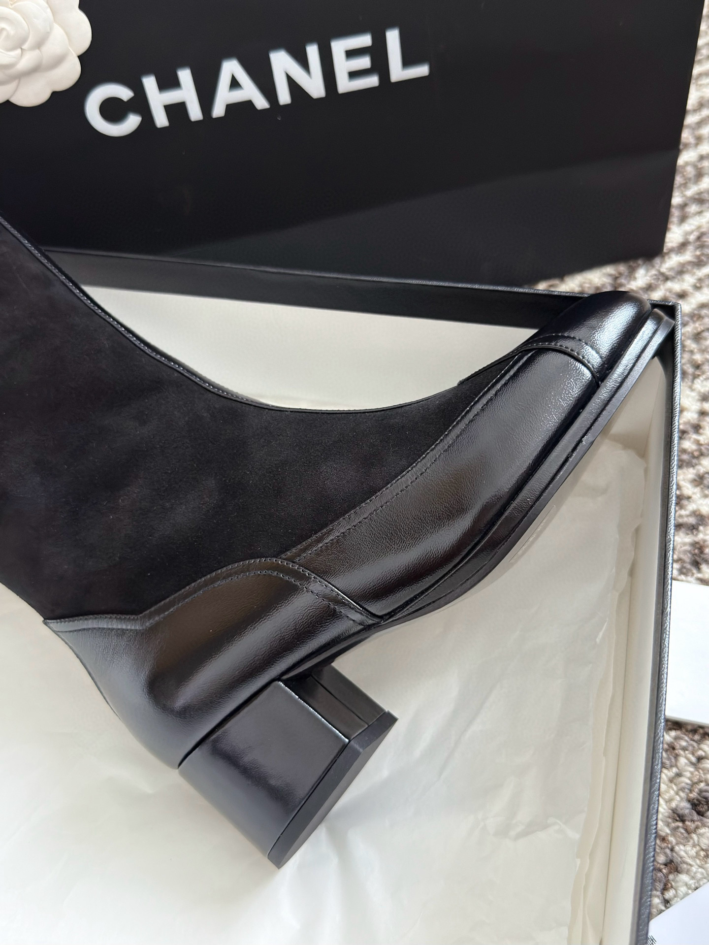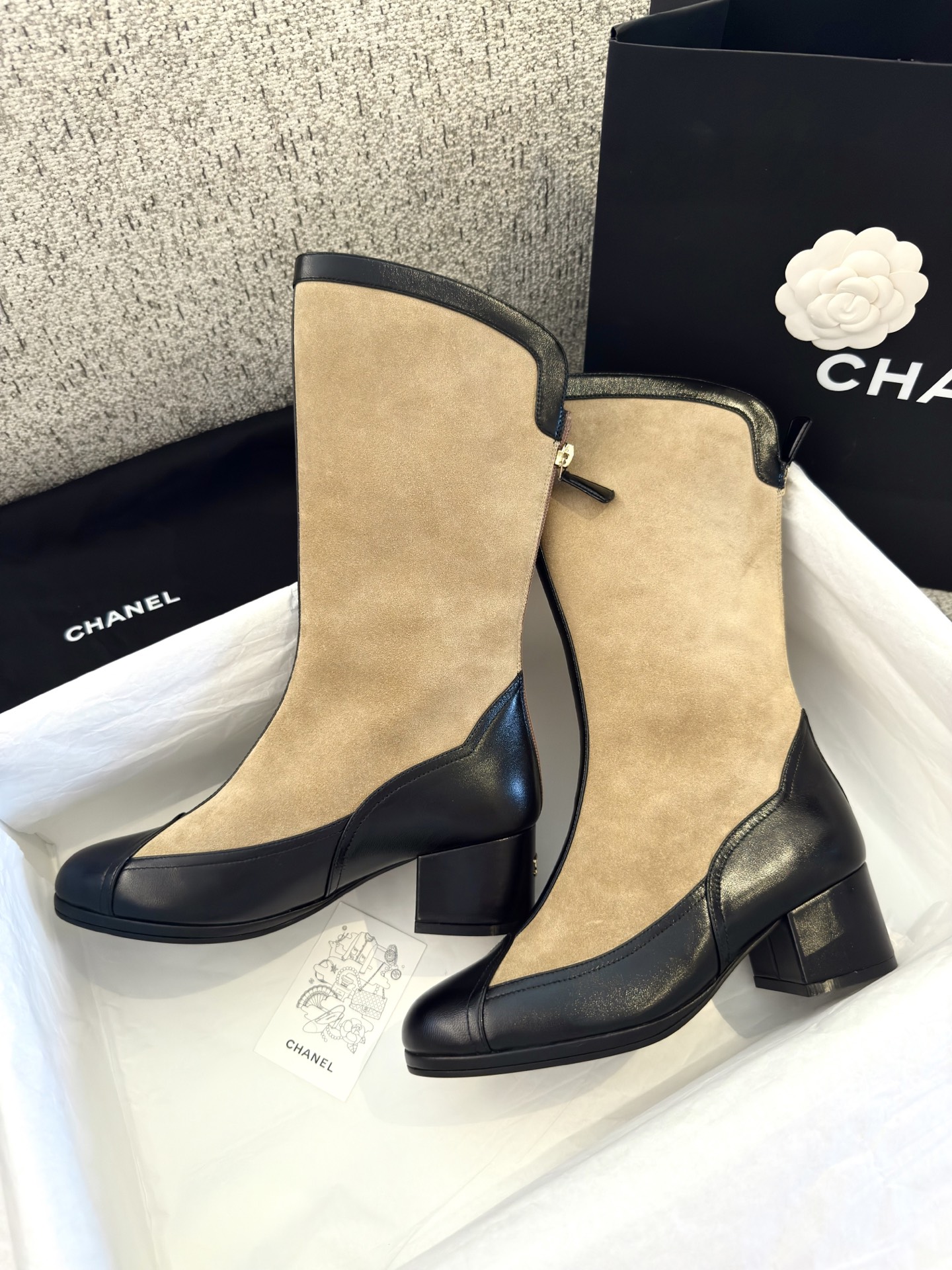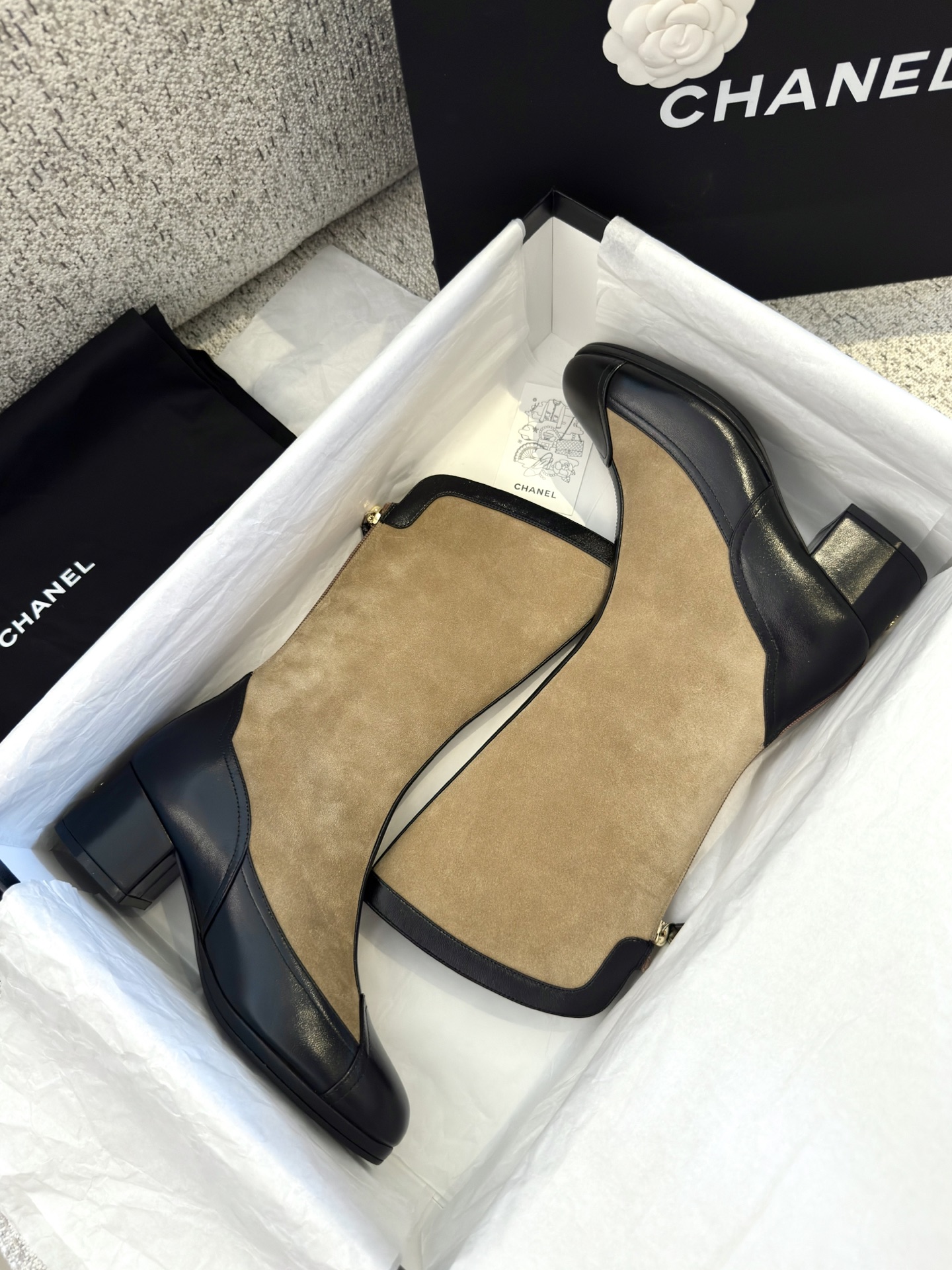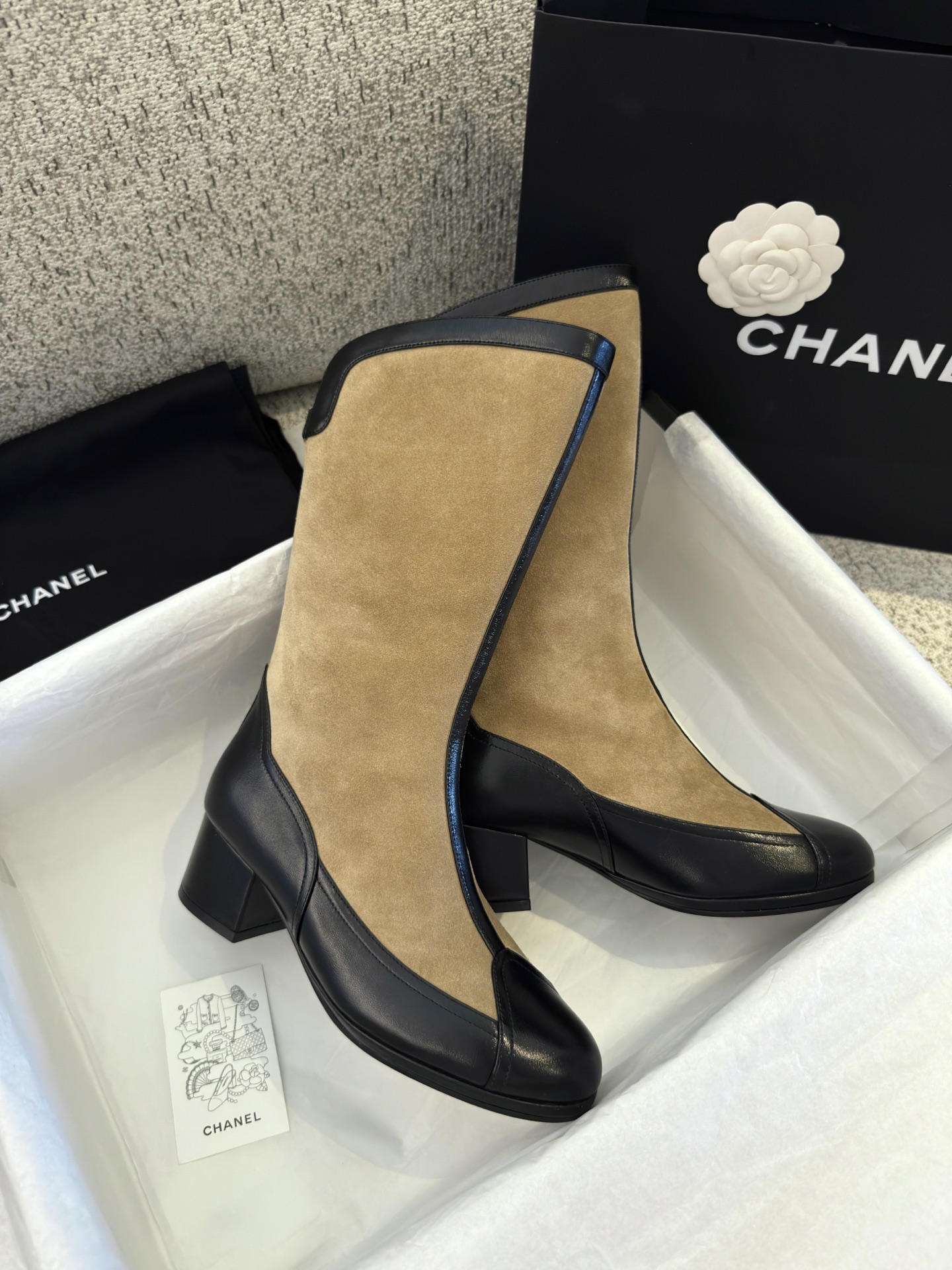 NIGO Chanel Women's Spring And Summer High Luxury Colorblocking Suede Short Boots Fashion Exquisite Black Temperament With Heels Shoes Ngvp #nigo2476