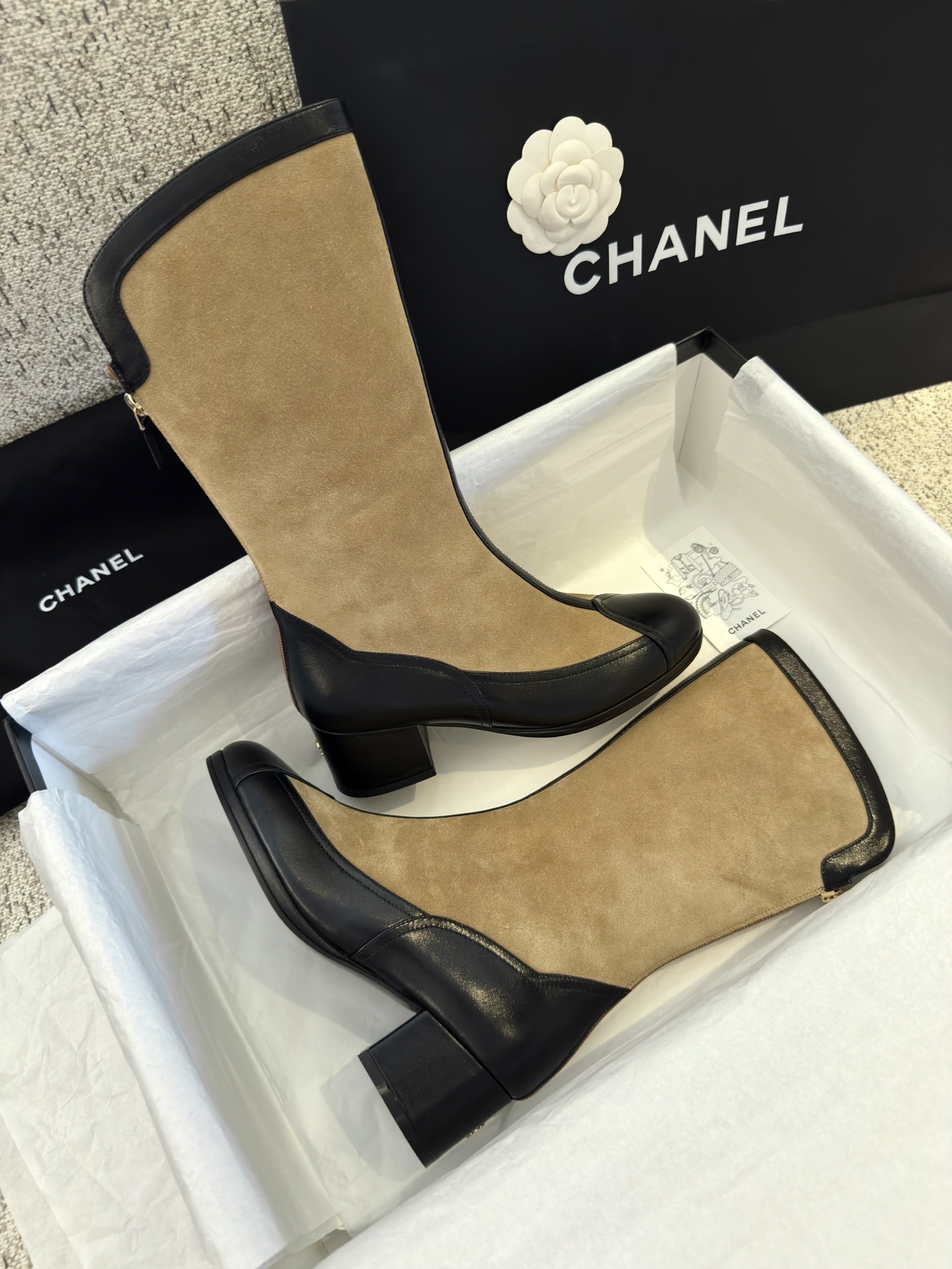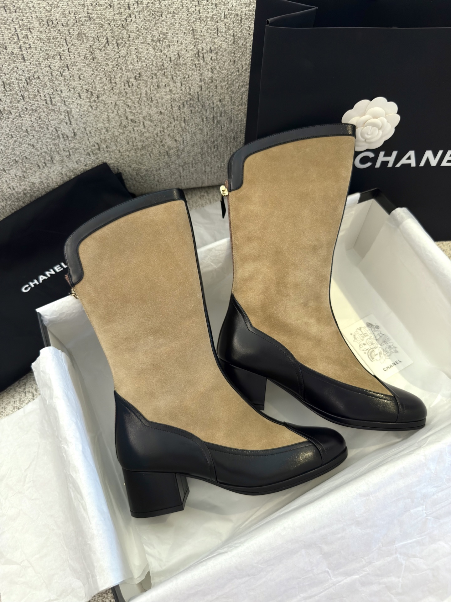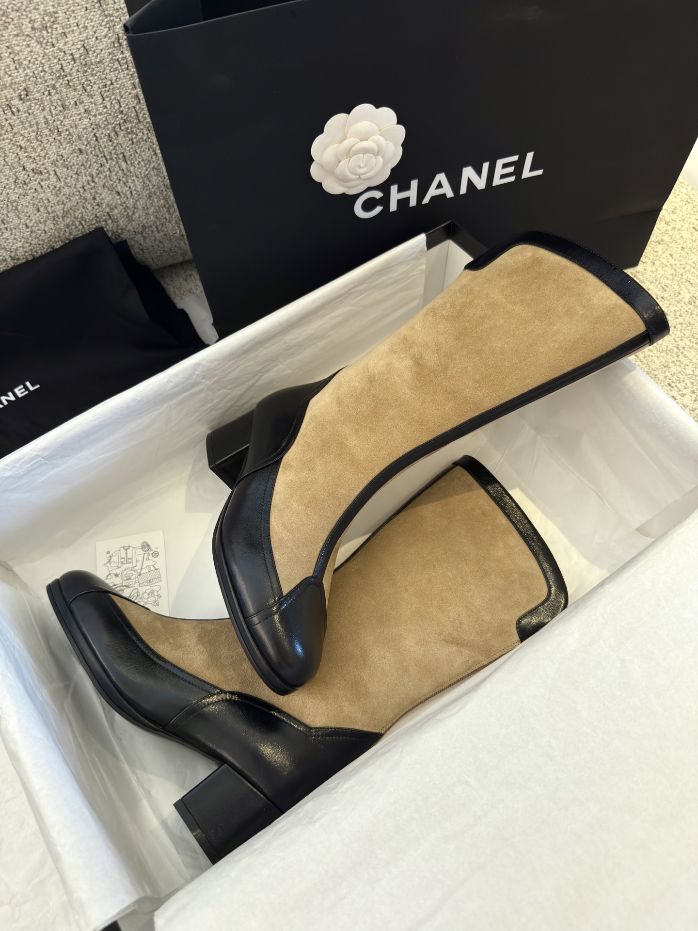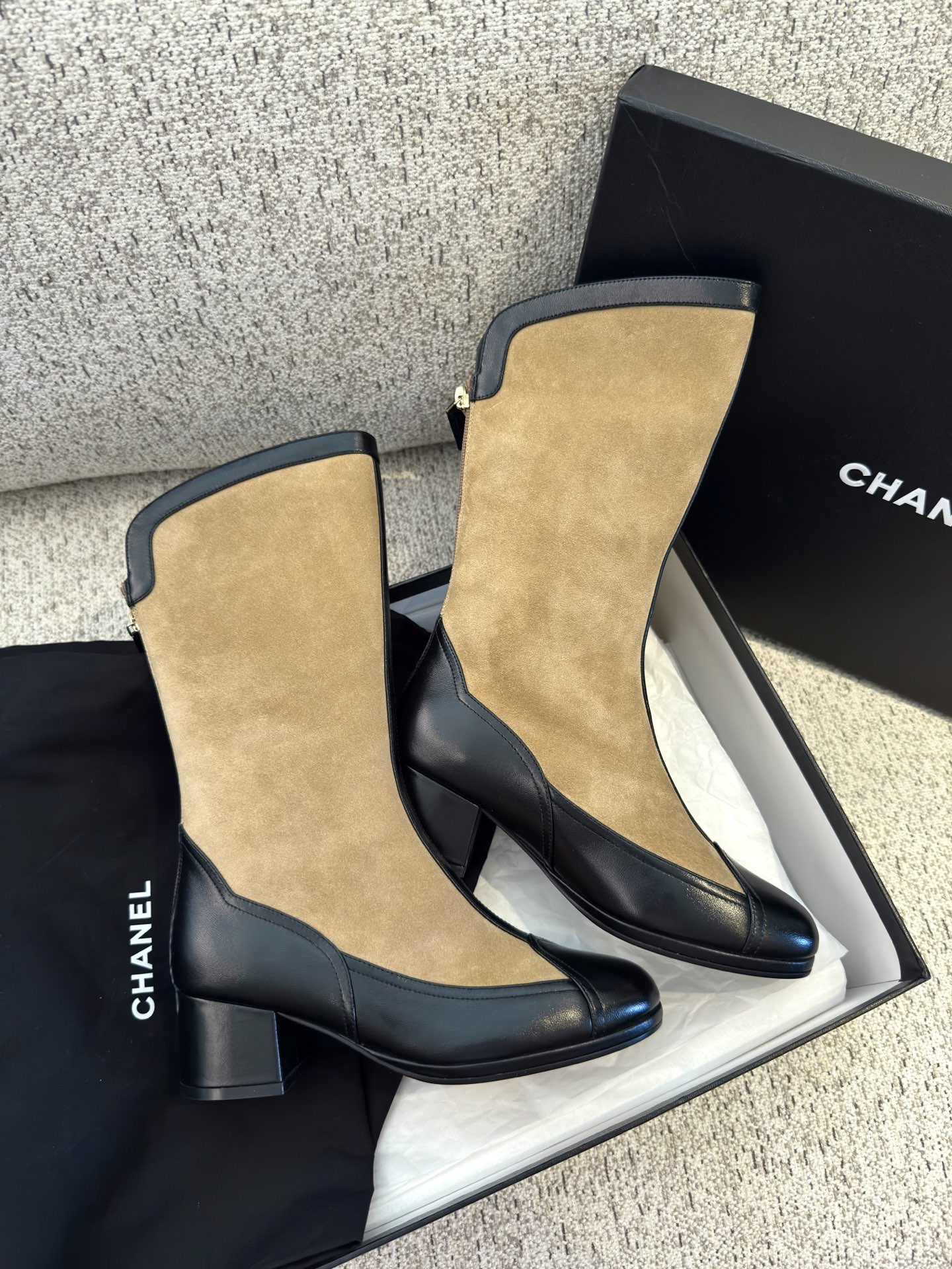 NIGO Chanel Women's Spring And Summer High Luxury Colorblocking Suede Short Boots Fashion Exquisite Black Temperament With Heels Shoes Ngvp #nigo2476