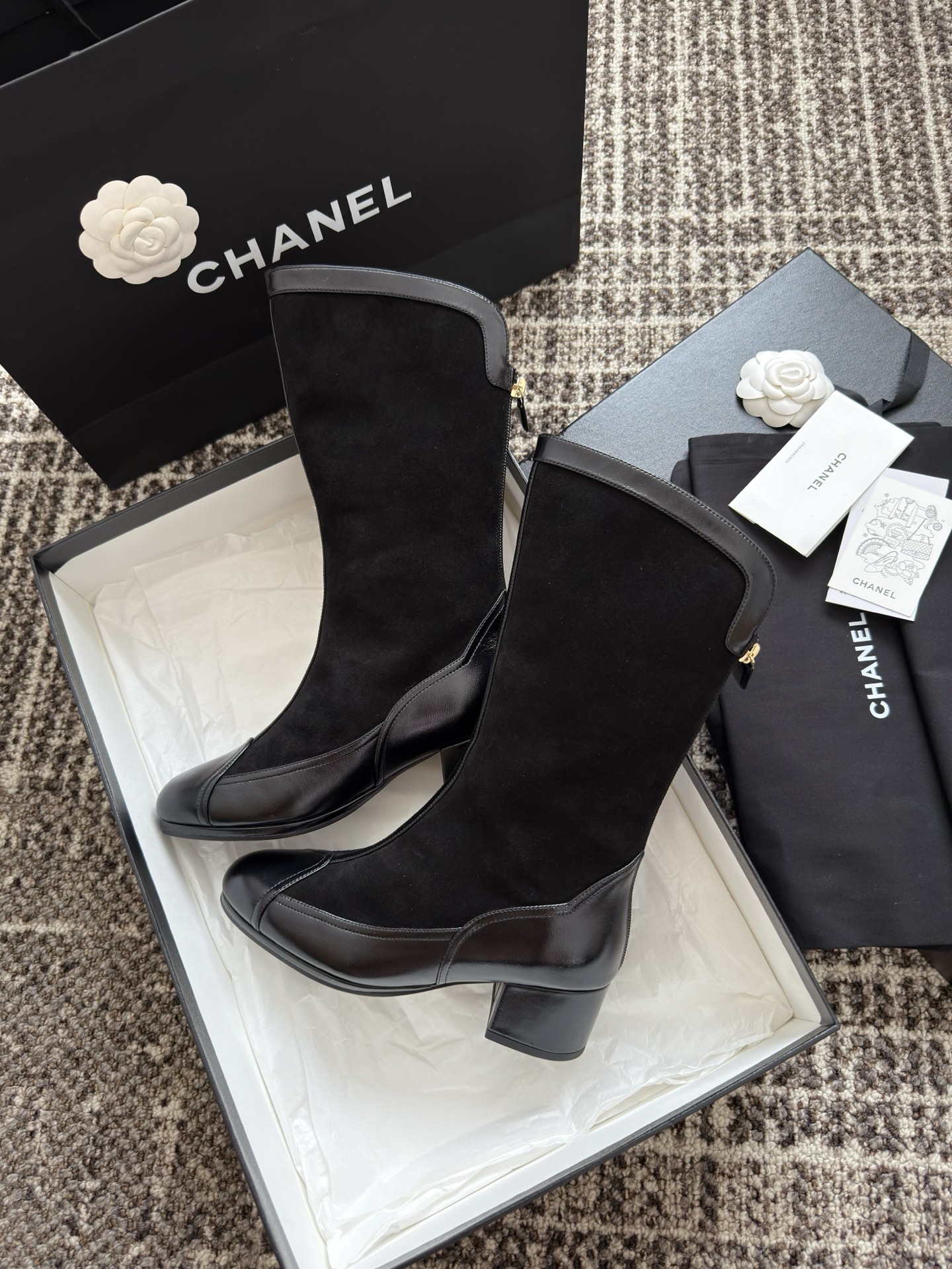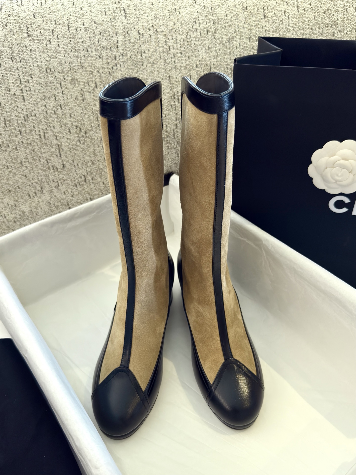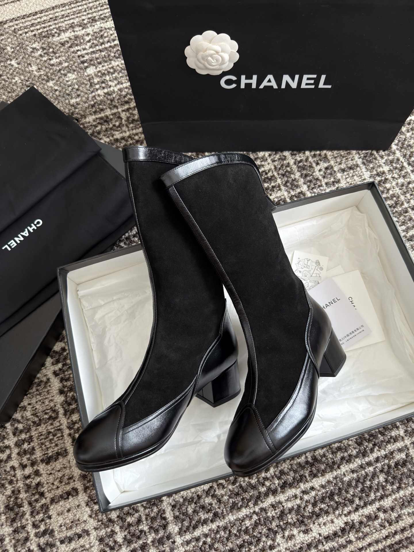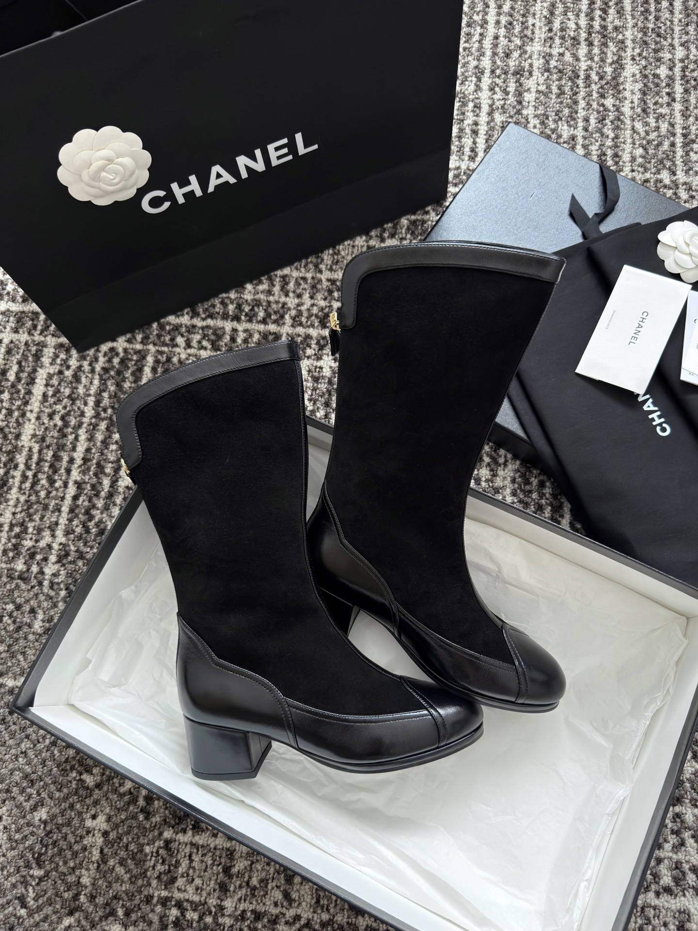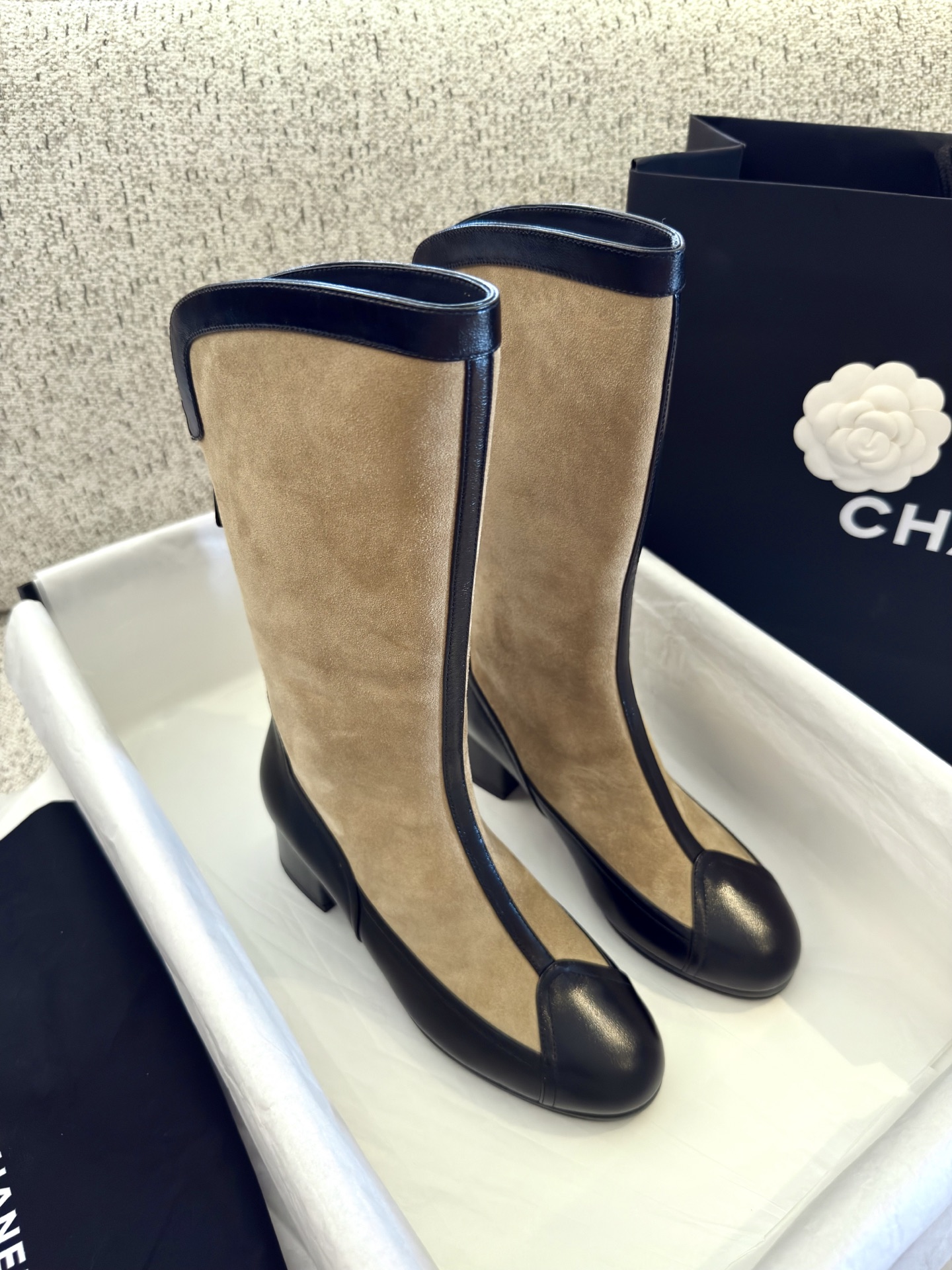 NIGO Chanel Women's Spring And Summer High Luxury Colorblocking Suede Short Boots Fashion Exquisite Black Temperament With Heels Shoes Ngvp #nigo2476
