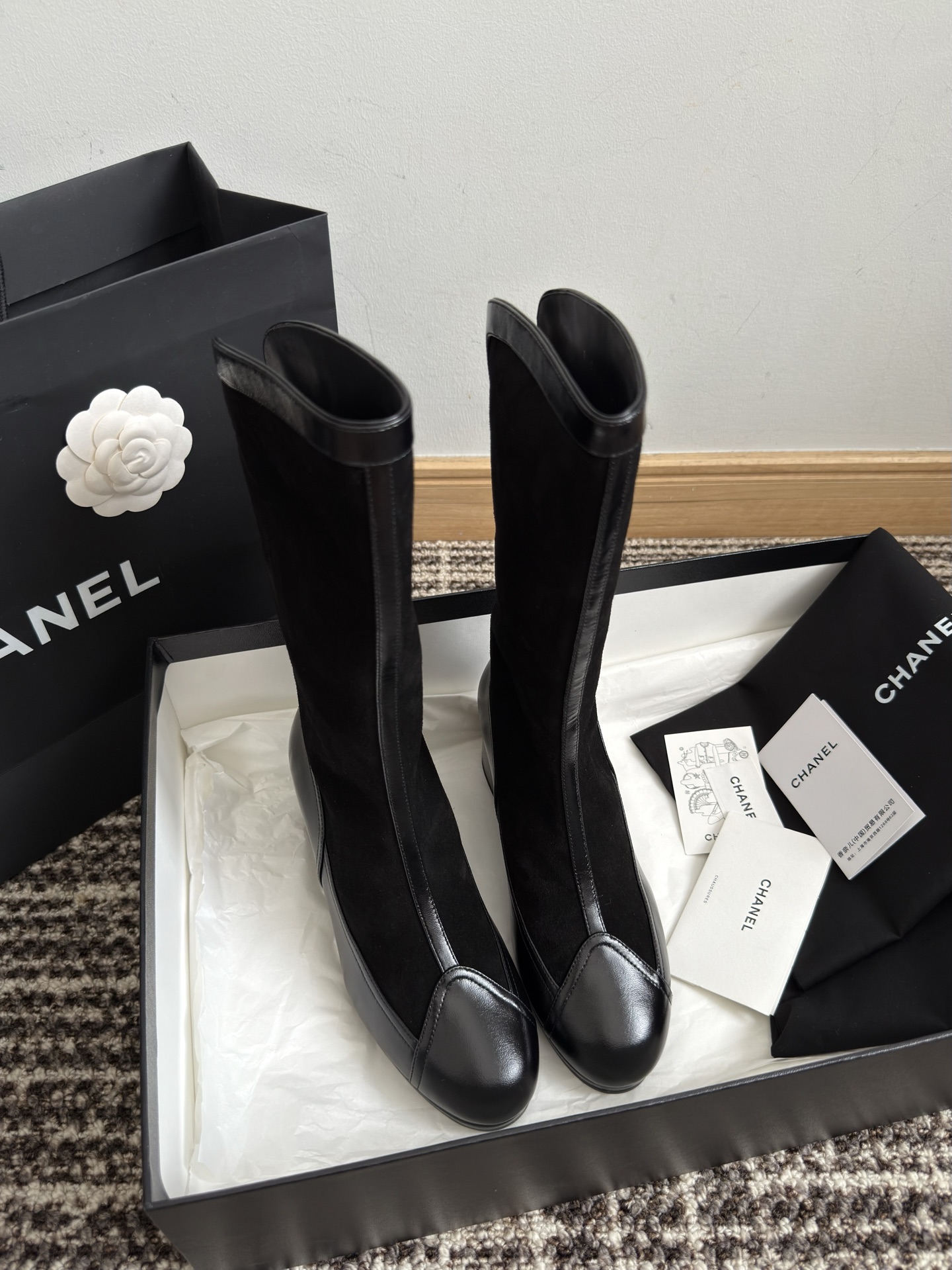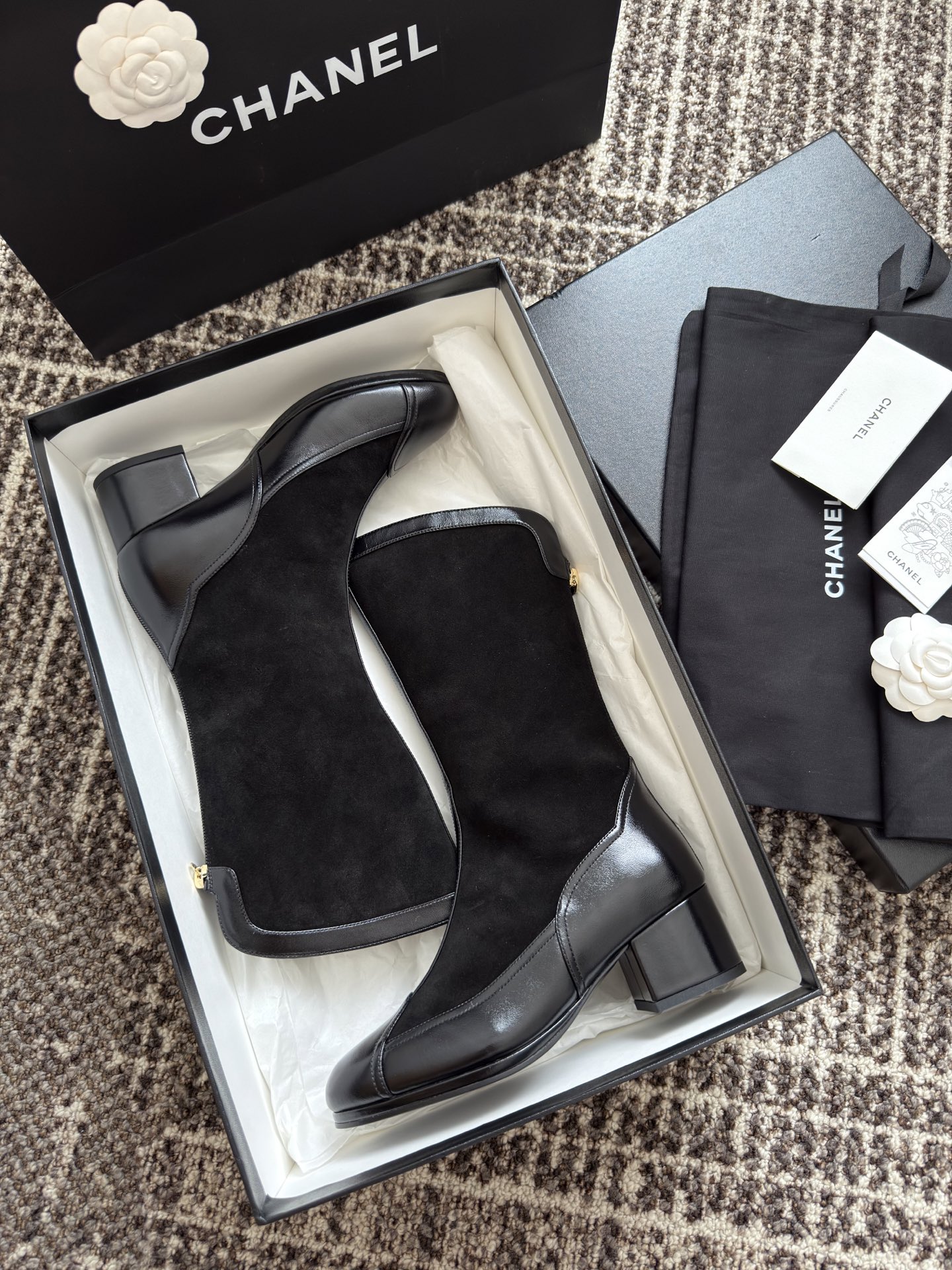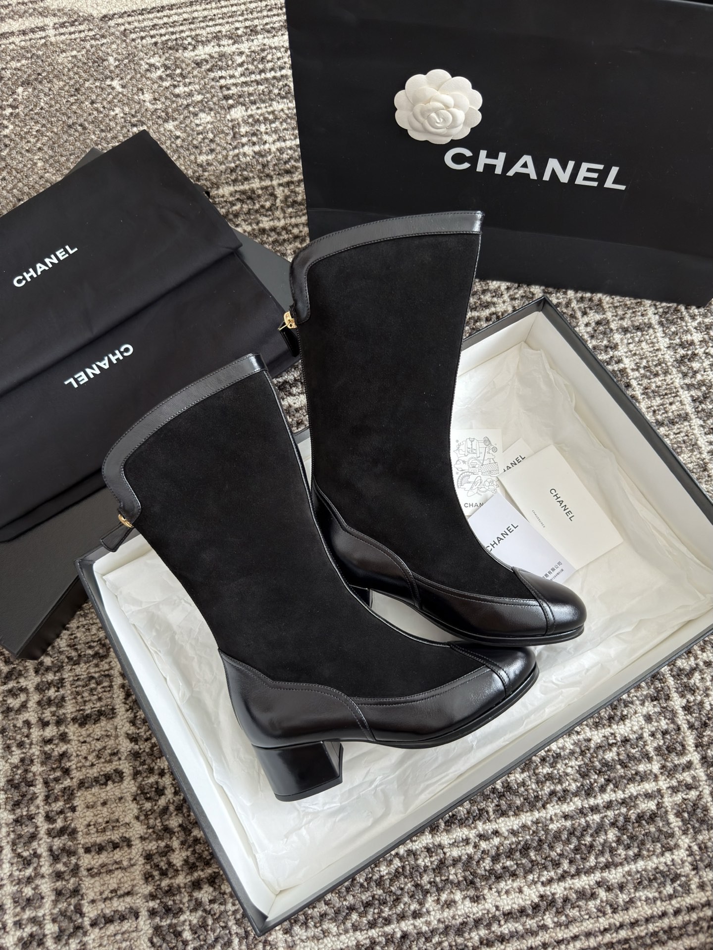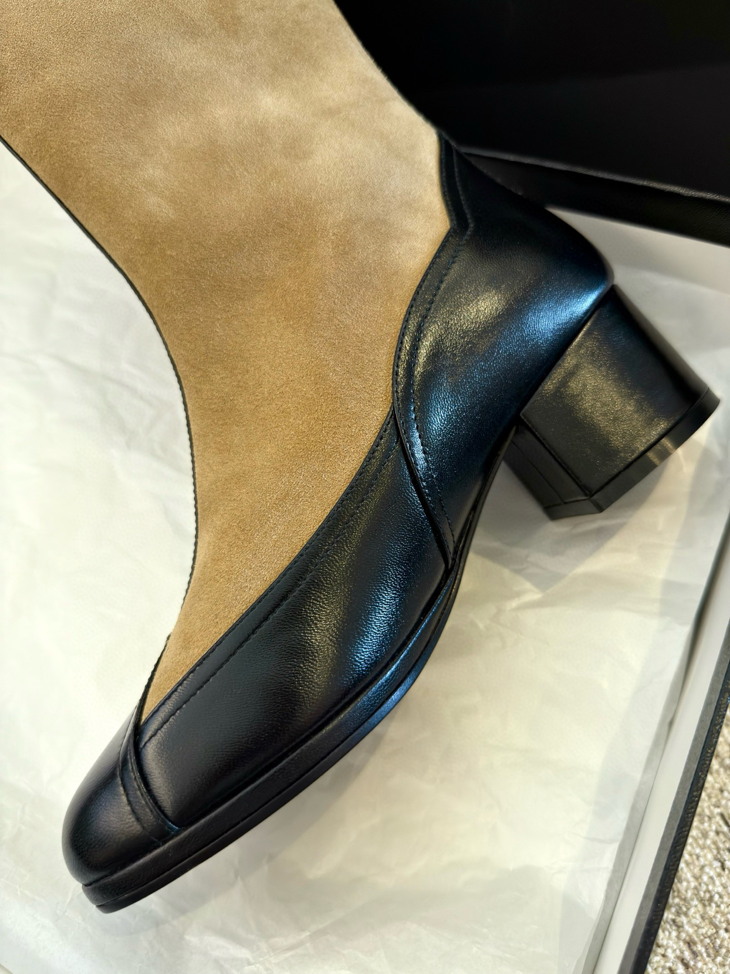 NIGO Chanel Women's Spring And Summer High Luxury Colorblocking Suede Short Boots Fashion Exquisite Black Temperament With Heels Shoes Ngvp #nigo2476