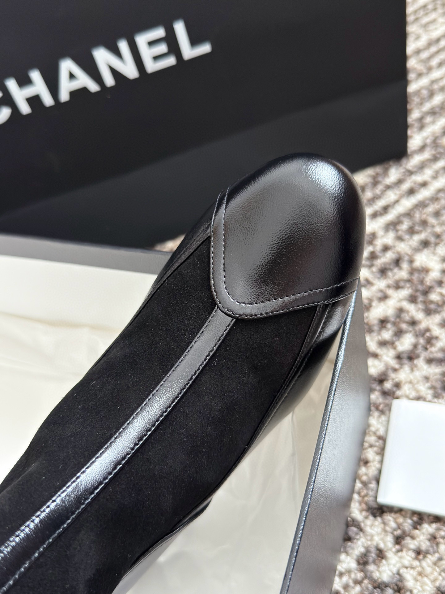 This Chanel shoes showcases the brand's exceptional craftsmanship and attention to detail. Crafted from premium suede, in a stunning black colorway, this piece combines timeless luxury with modern style.
