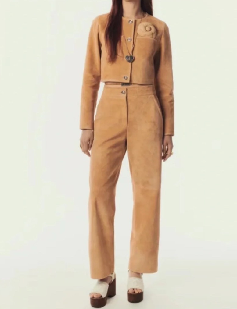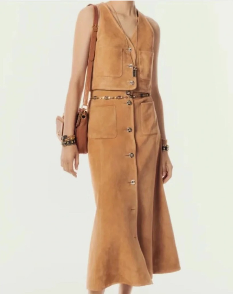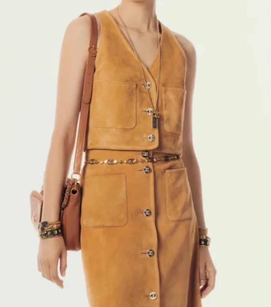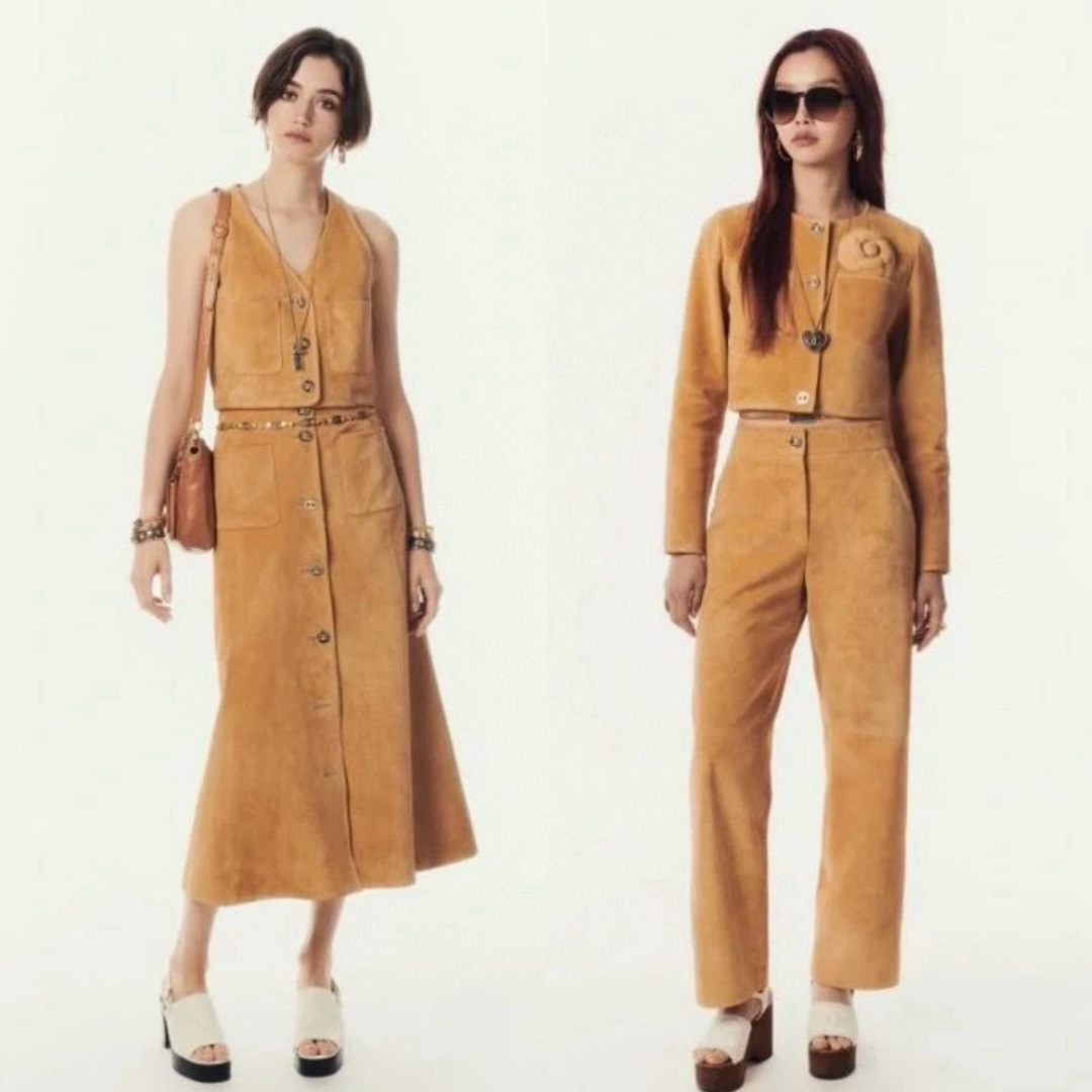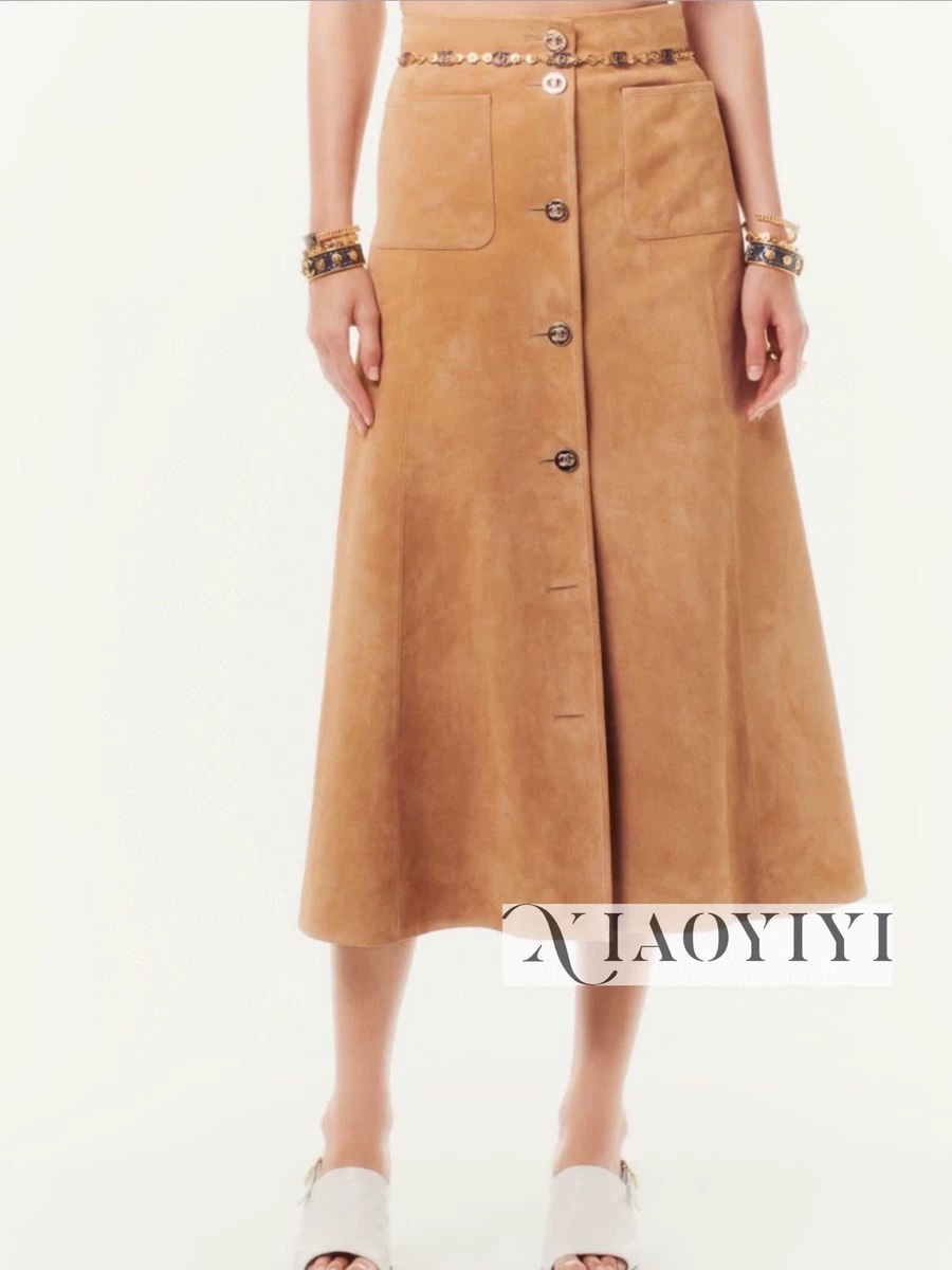 NIGO Chanel Women's Spring, Autumn And Winter Single-breasted Floral Long Sleeve Short Leather Jacket Casual V-neck Leather Vest Pure Color High Street Style Leather Long Half Skirt #nigo71636