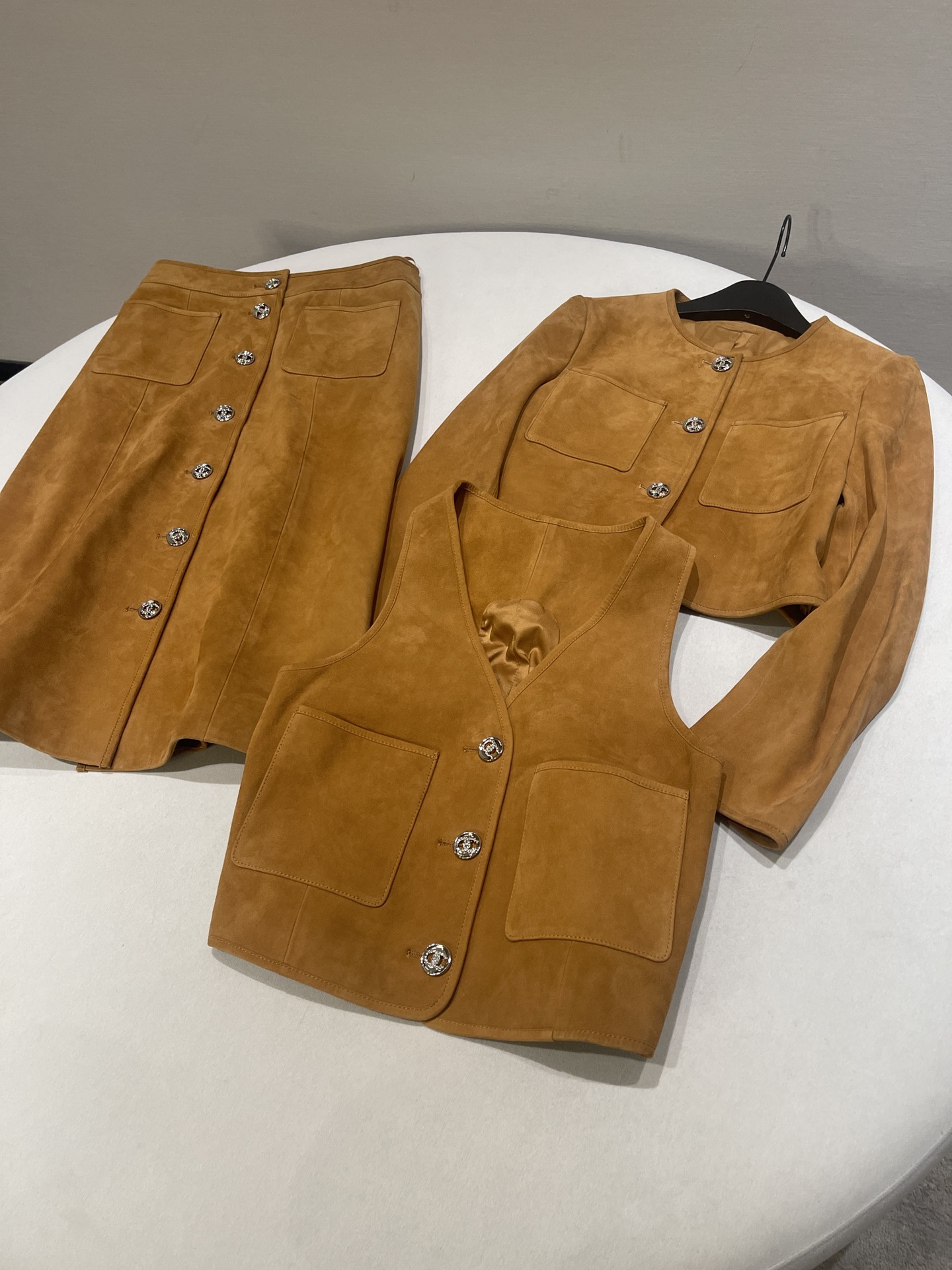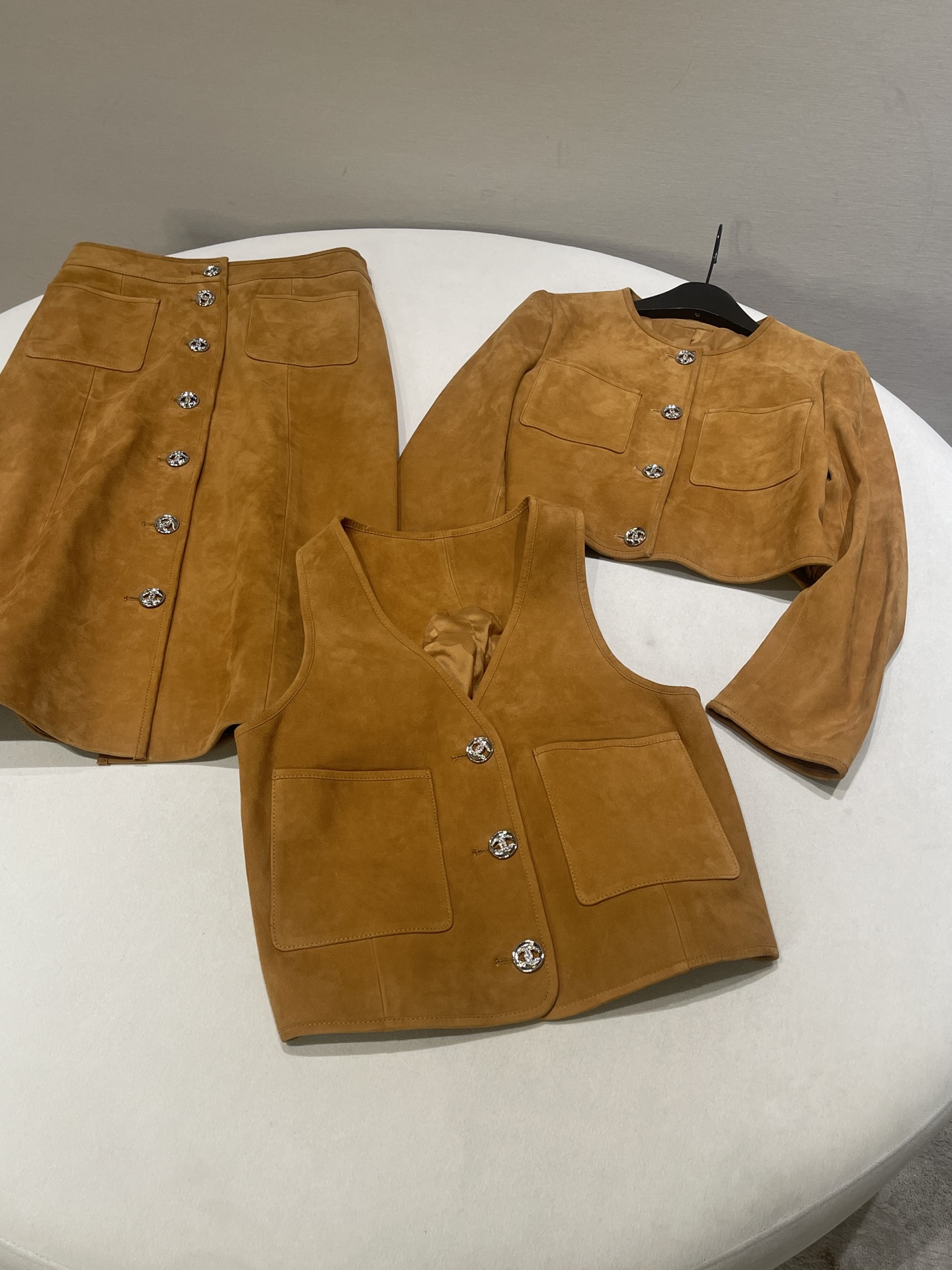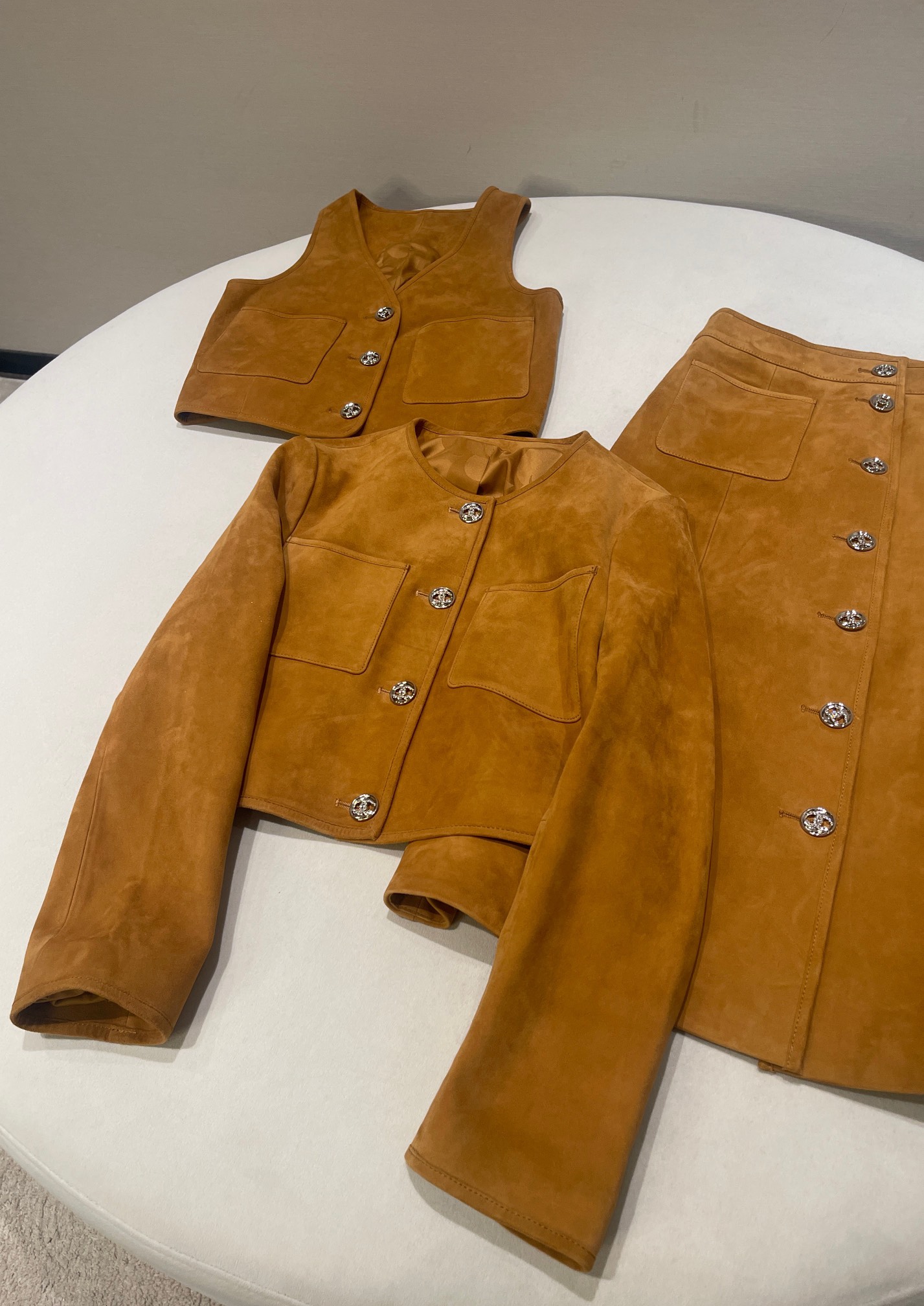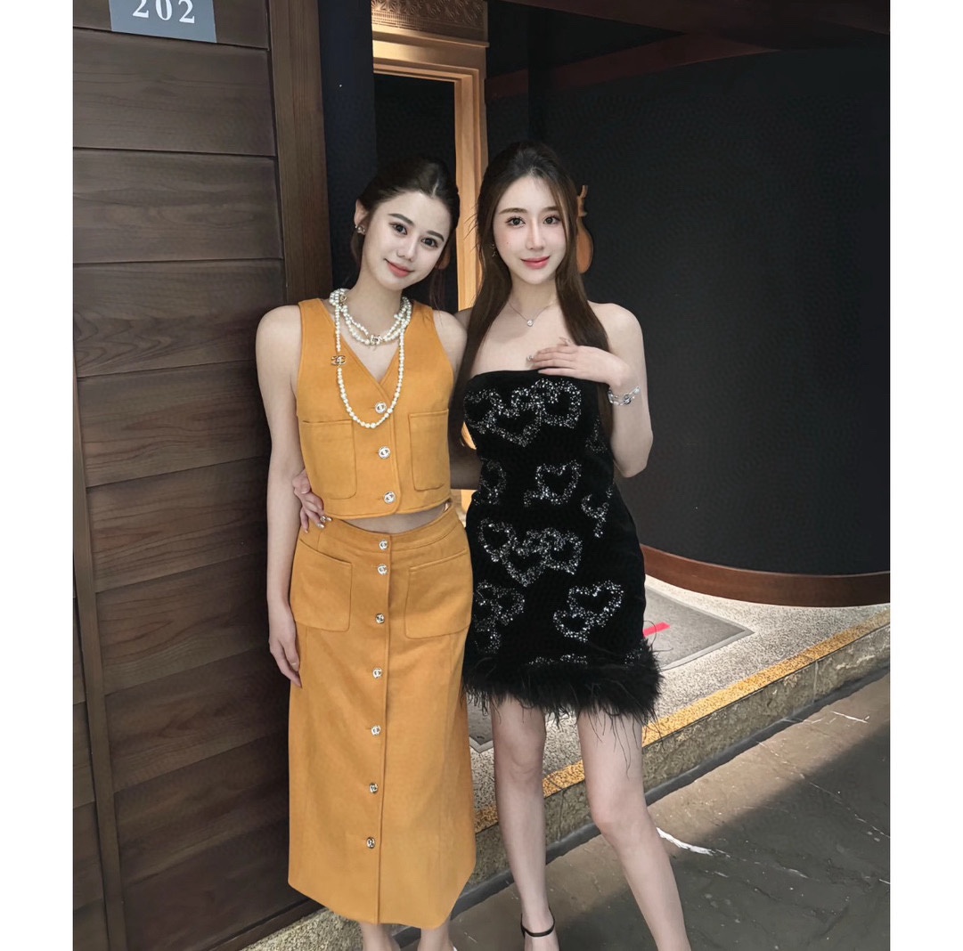 NIGO Chanel Women's Spring, Autumn And Winter Single-breasted Floral Long Sleeve Short Leather Jacket Casual V-neck Leather Vest Pure Color High Street Style Leather Long Half Skirt #nigo71636