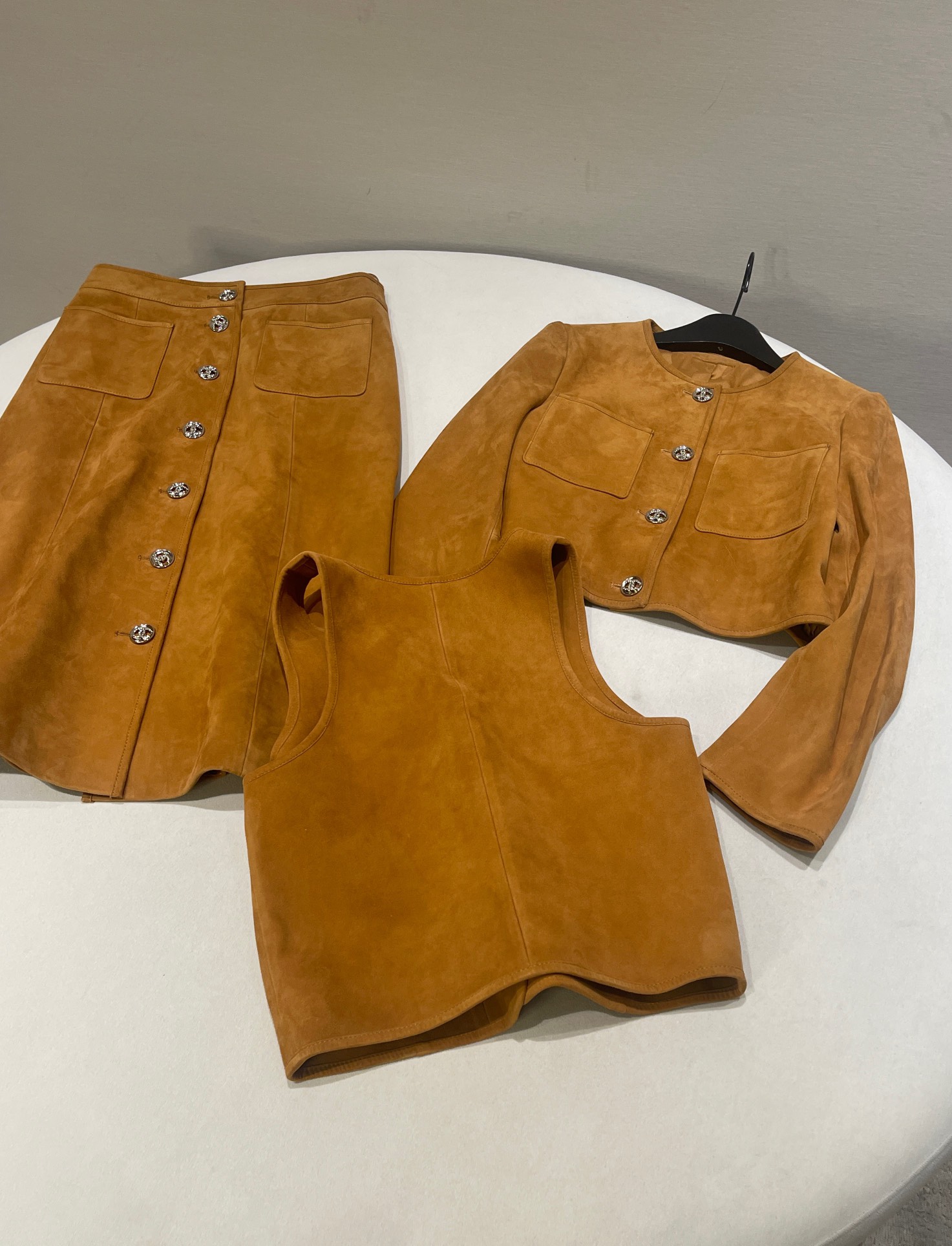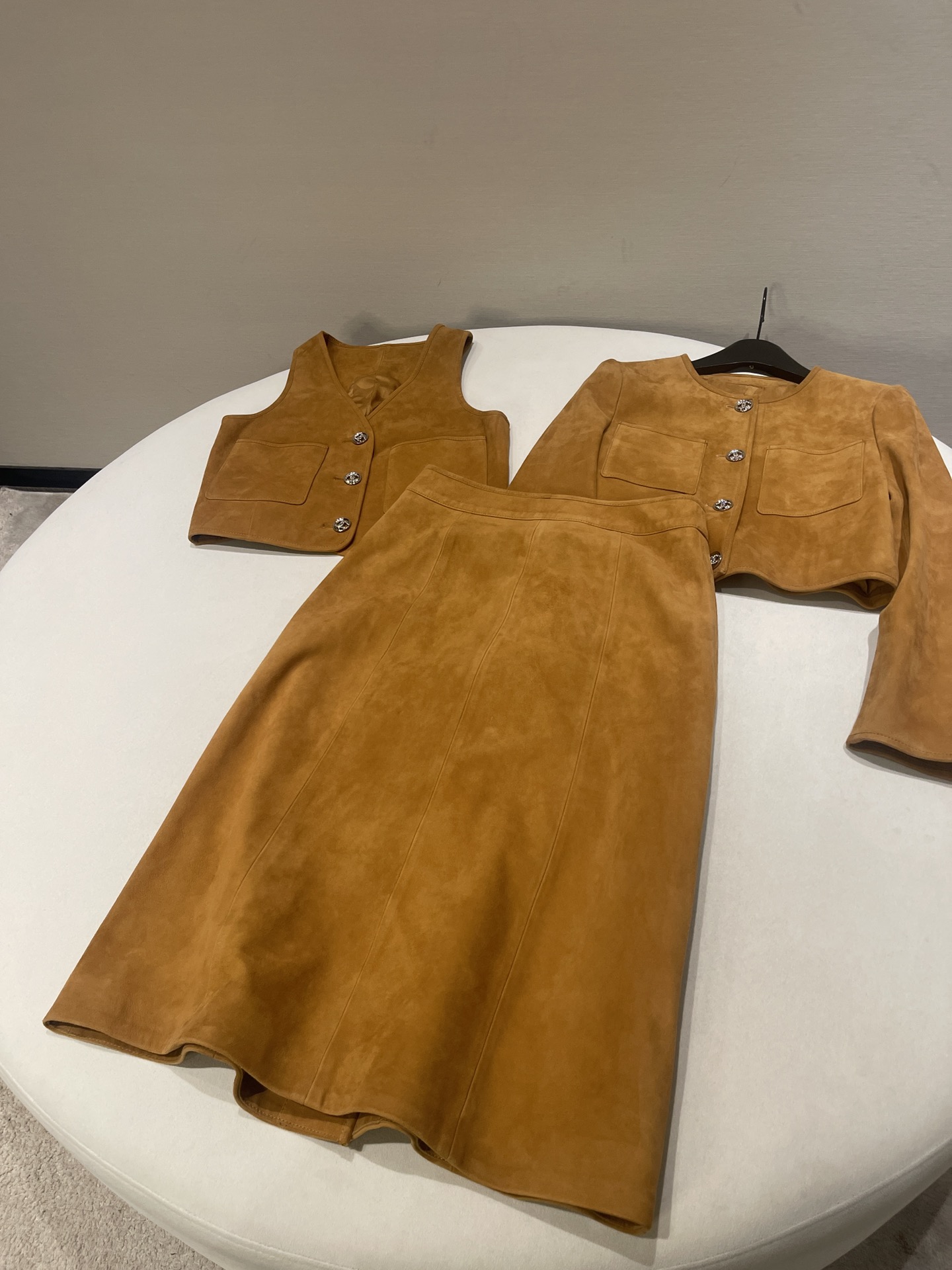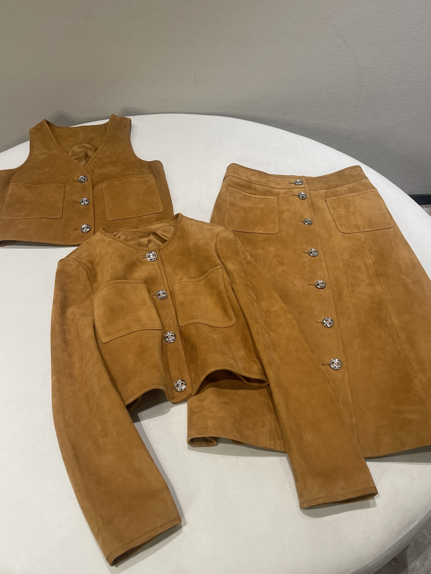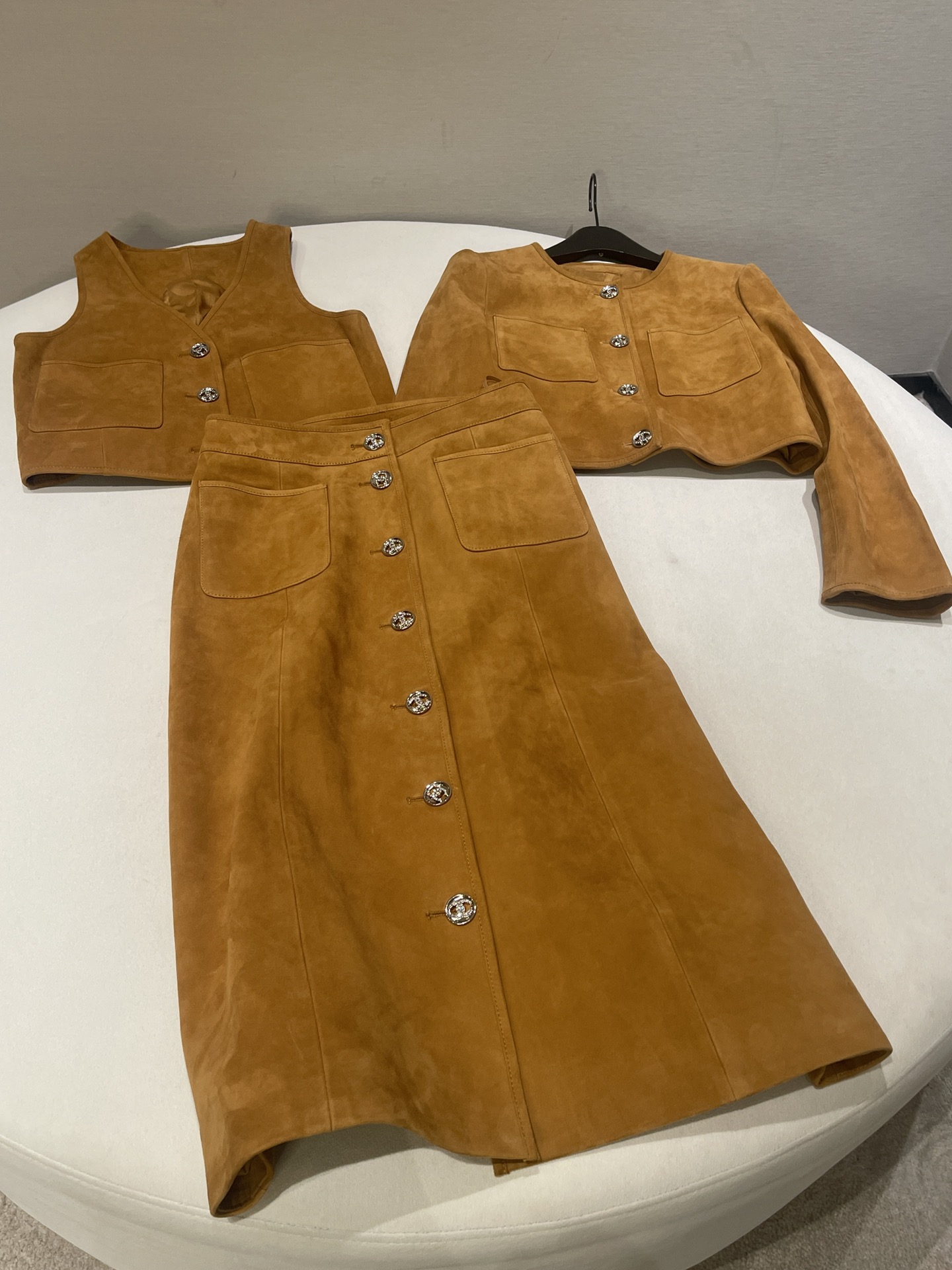 NIGO Chanel Women's Spring, Autumn And Winter Single-breasted Floral Long Sleeve Short Leather Jacket Casual V-neck Leather Vest Pure Color High Street Style Leather Long Half Skirt #nigo71636