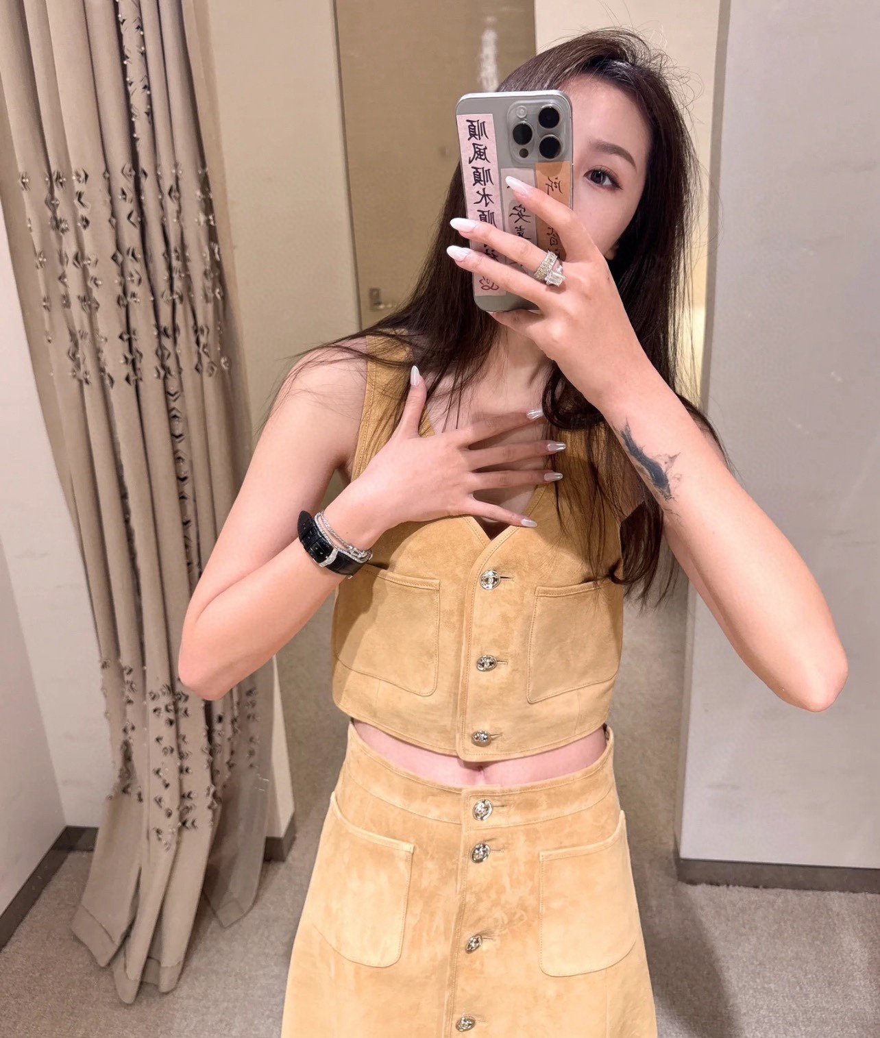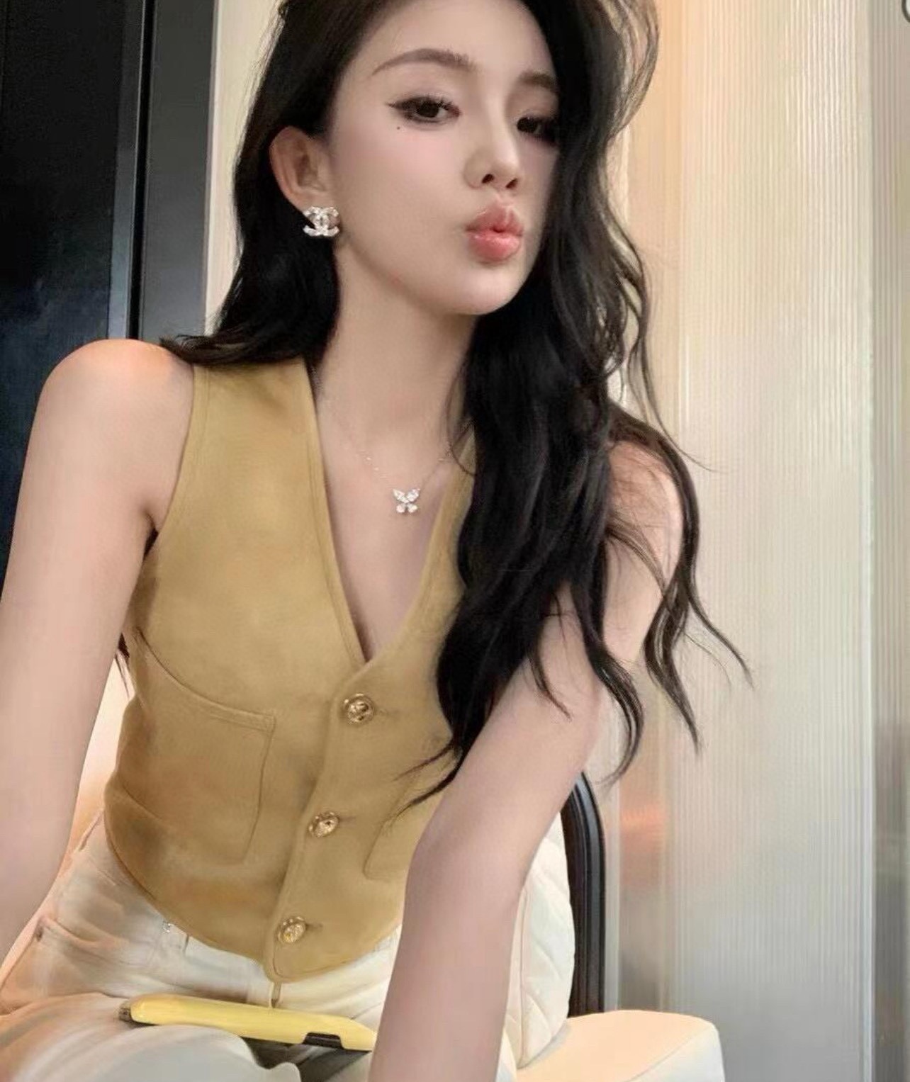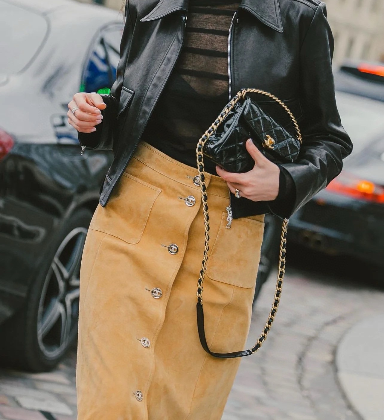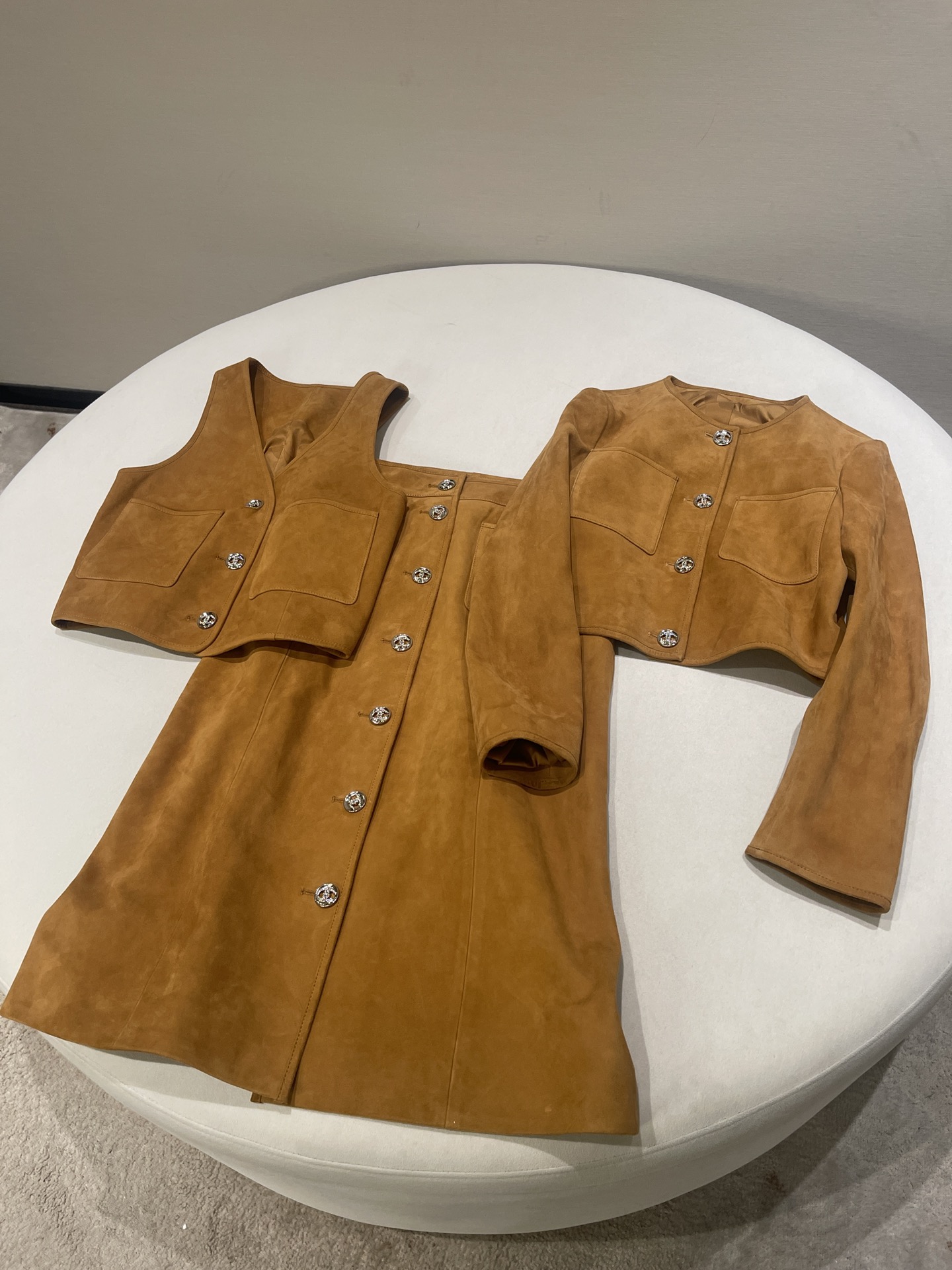 NIGO Chanel Women's Spring, Autumn And Winter Single-breasted Floral Long Sleeve Short Leather Jacket Casual V-neck Leather Vest Pure Color High Street Style Leather Long Half Skirt #nigo71636