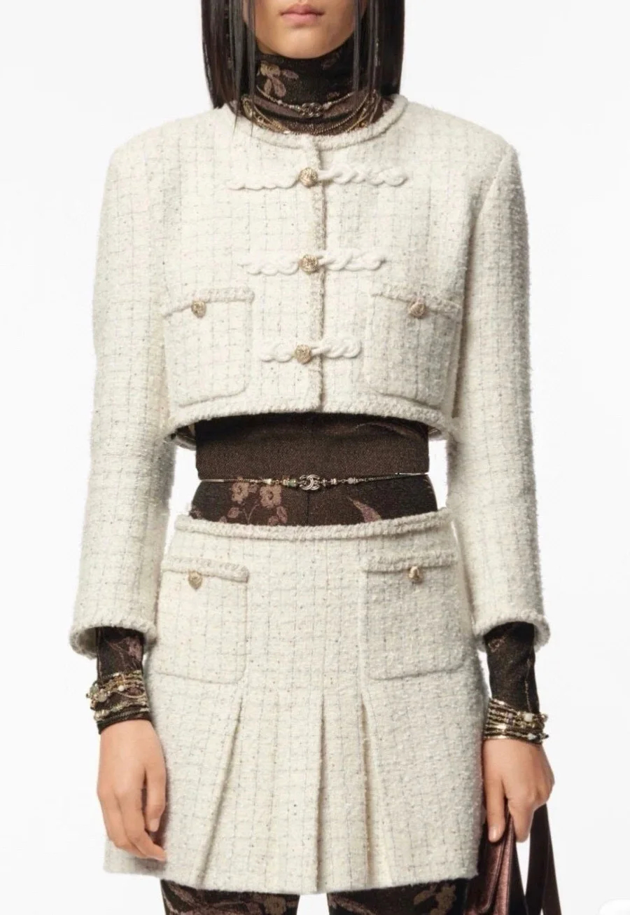 NIGO Chanel Women's Spring/Autumn Embroidered Linen and Wool Twill Single-Breasted Long-Sleeved Round Neck Coat Casual Solid Color Half-Skirt Suit Set Ngvp #nigo329346