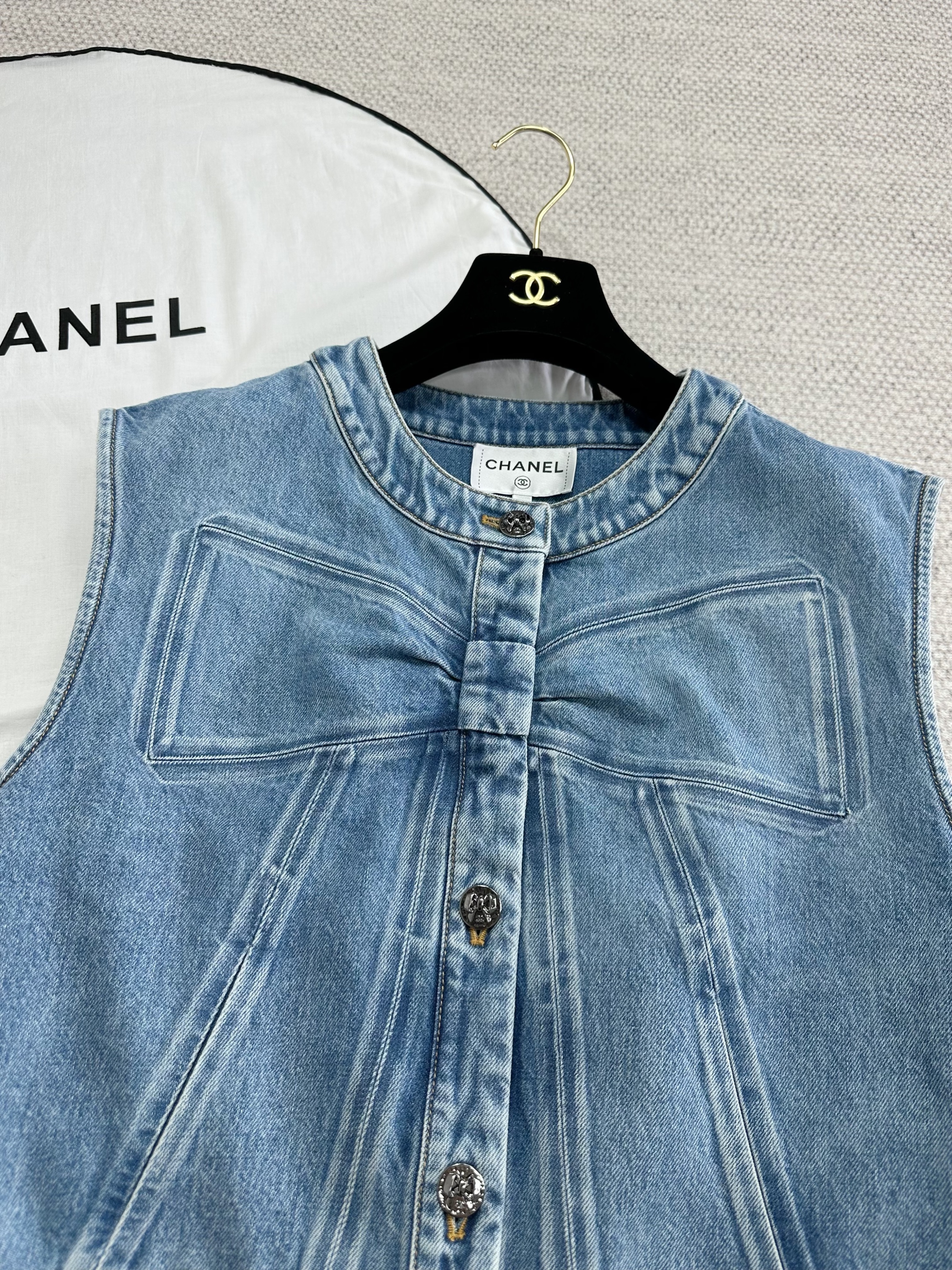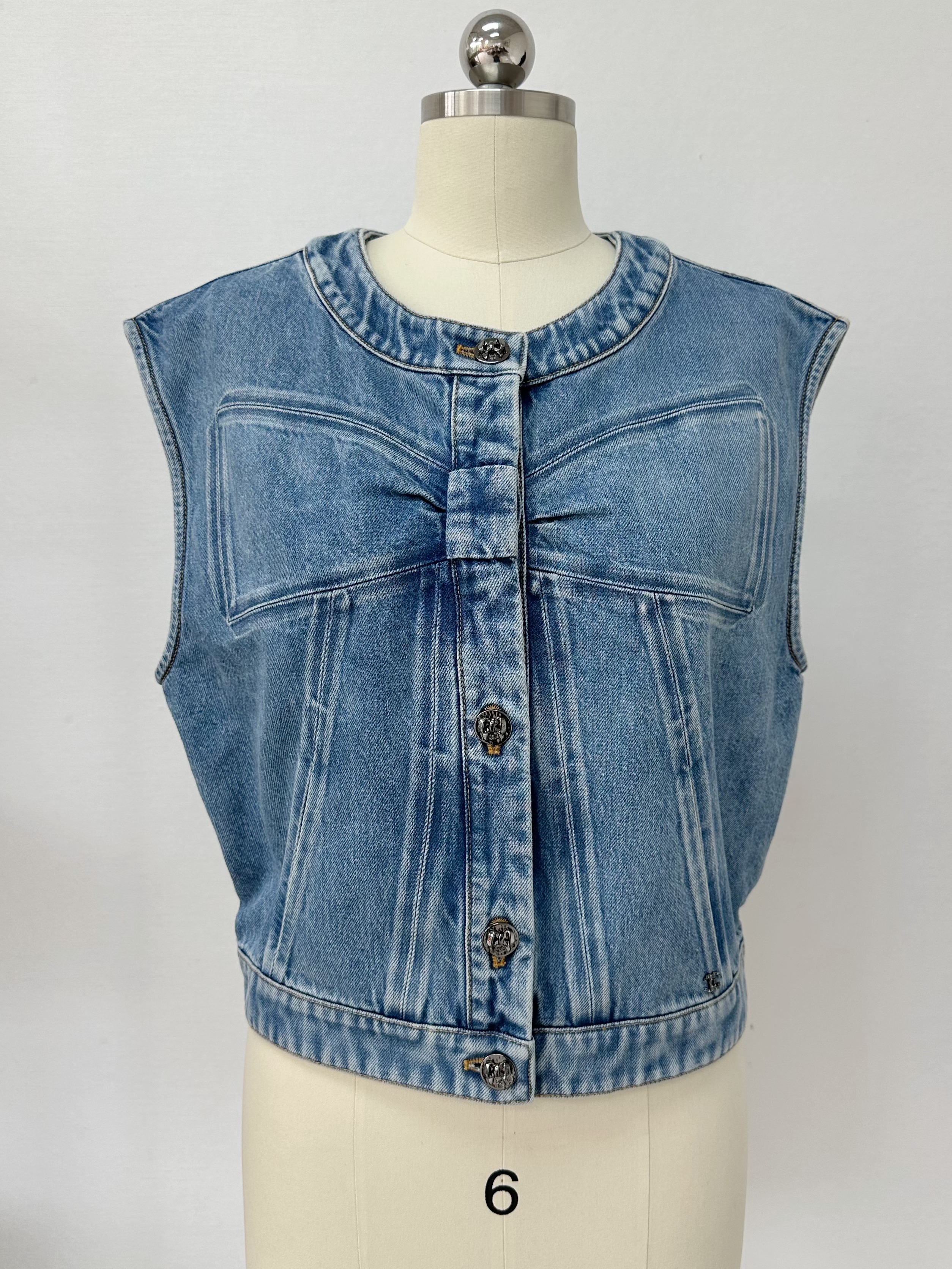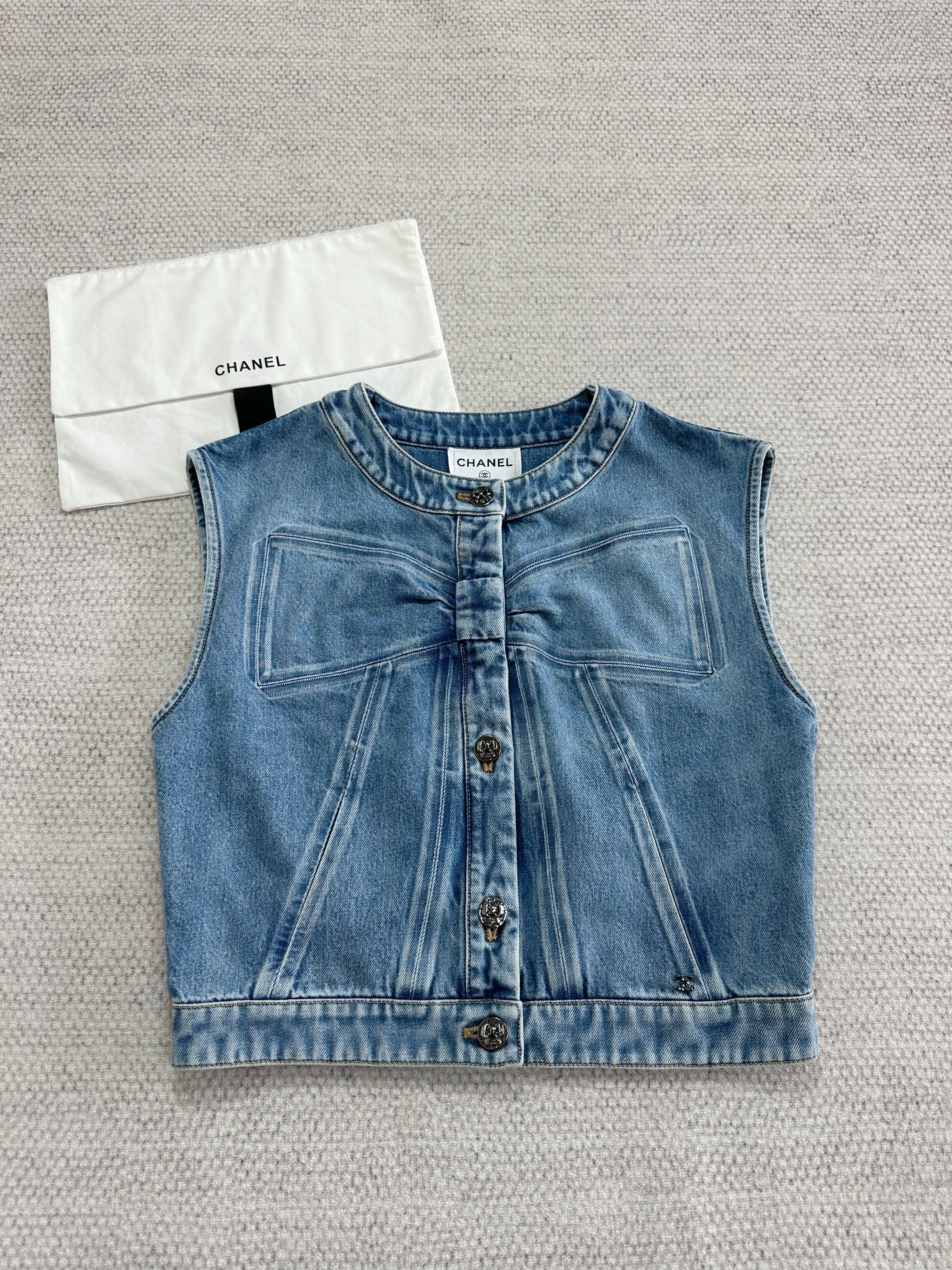 NIGO Chanel Women's Spring/Fall Casual Solid-Color Cotton Crew Neck Bow-Detail Denim Sleeveless Vest Ngvp #nigo2591